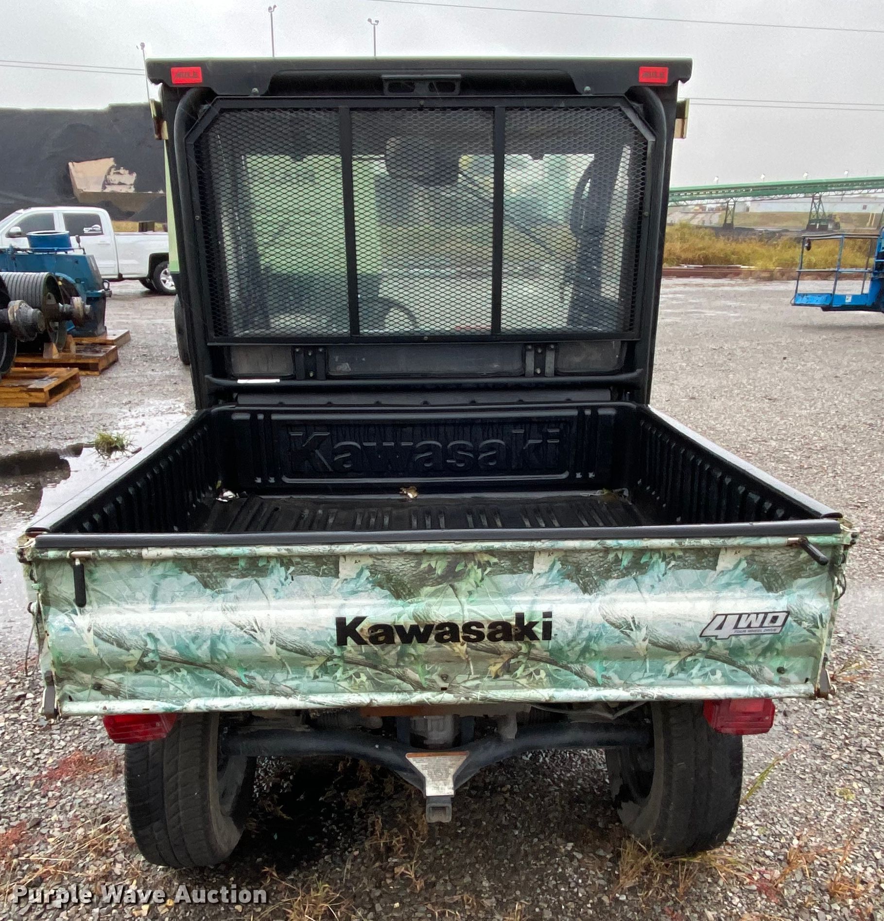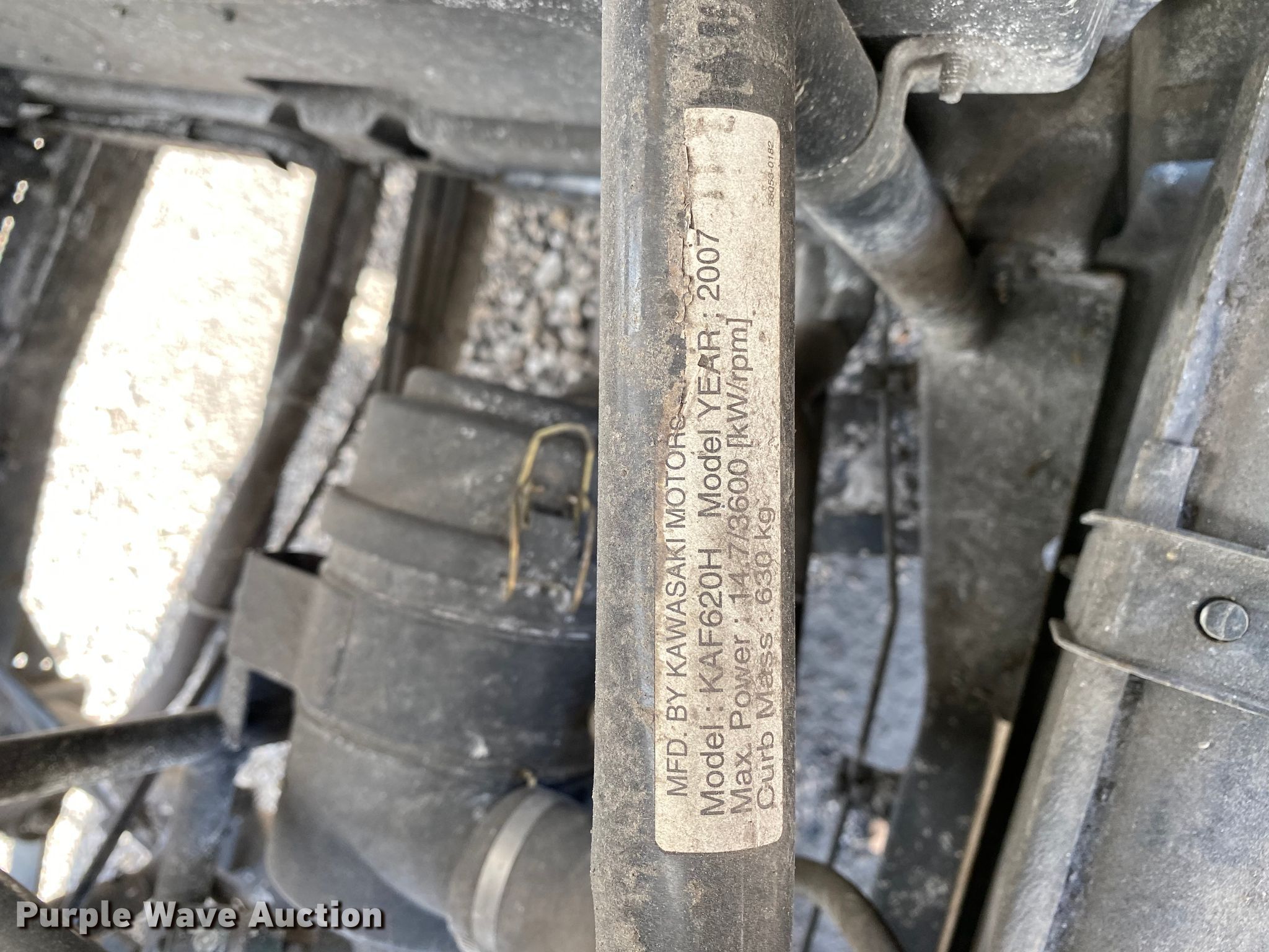 2007 Kawasaki Mule utility vehicle. 1,427 hours on meter. Engine Model: FD620D, Cylinders: 2, Fuel type: Gas, Electric start. Transmission Automatic. Chassis Four wheel drive. Operators station Enclosed cab, Heat, Passengers: 3. Operational Receiver hitch, Dump bed type: Manual. Tires Size: 195/70R14. Notes Shifting issue Possible transmission linkage issue, Possible exhaust issue. Transfer of ownership documentation will be a manufacturer's certificate of origin and a bill of sale. Distribution of ownership documentation may be delayed up to 30 days from verification of funds. JK1AFCH197B506811. Associated Electric Cooperative. 41 Saint Jude Industrial. Conran, MO 63873