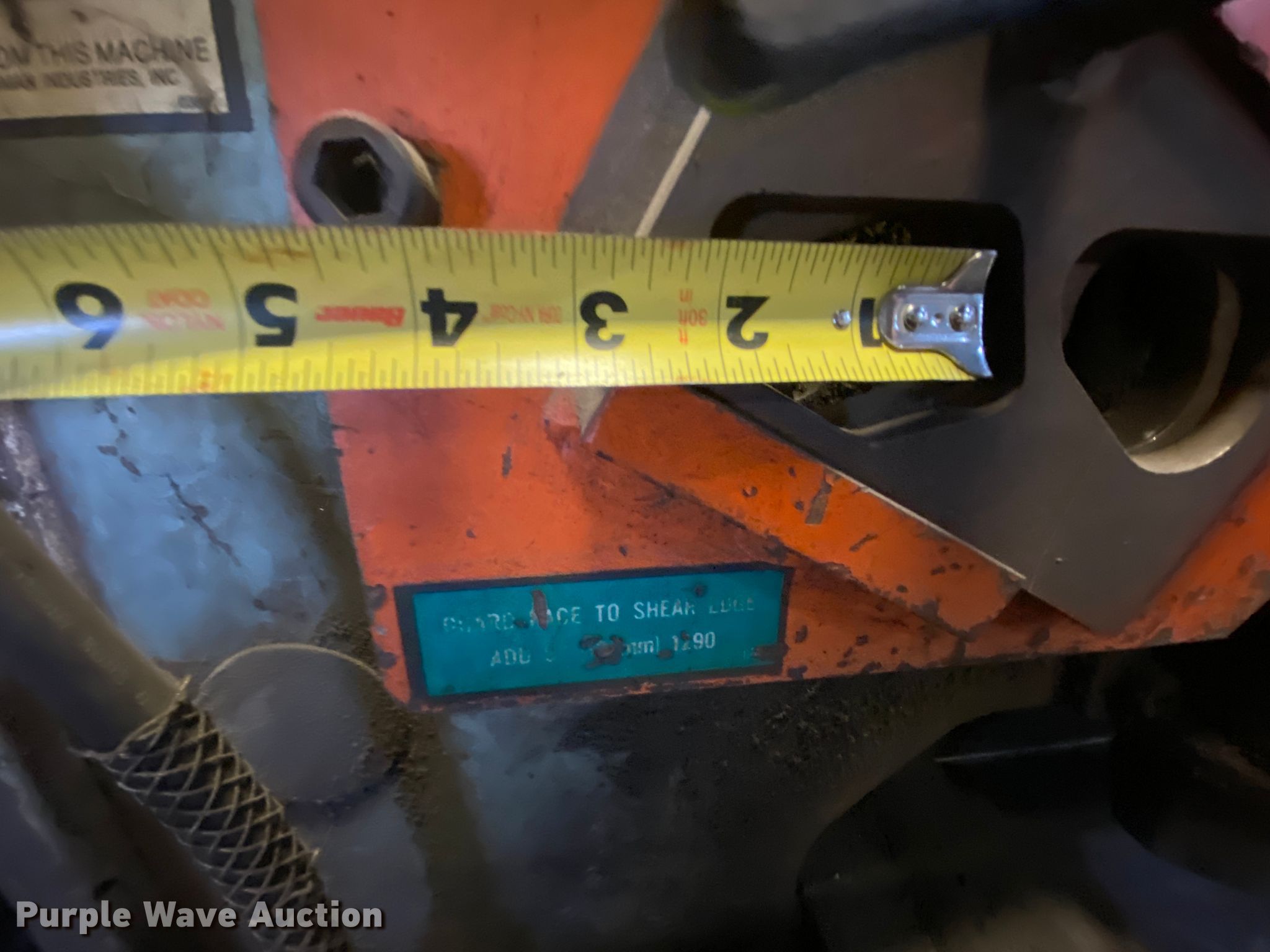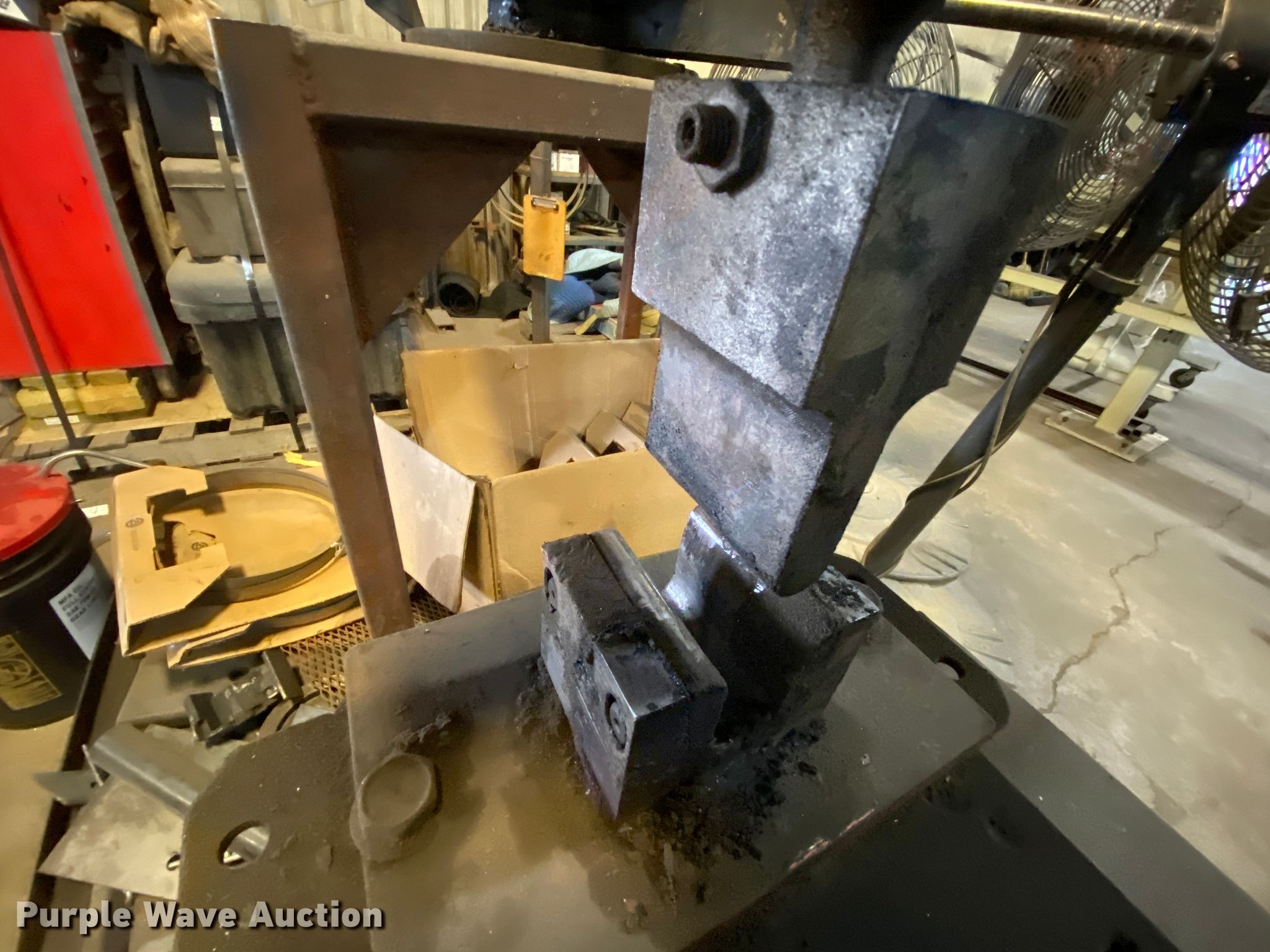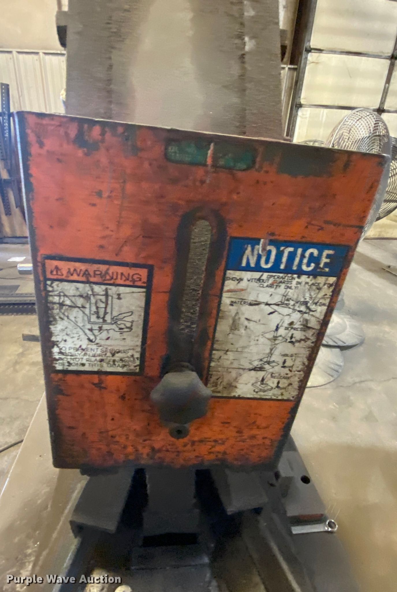 Purple Wave is selling a used Machine Shop Tools and Equip. in Missouri. This item is a Scotchman FI-60 iron worker with the following: 60 ton punching capacity, Punch dies, Punch round holes, Square tube cutter, 1 1/4" diameter max capacity, Round tube cutter, 1 1/4" diameter max capacity, Flat blade for shearing, 14" max cutting width, 3/4" max thickness capacity, Bender dies, 4 x 4 x 1/2" angle iron capacity, Notcher and crop