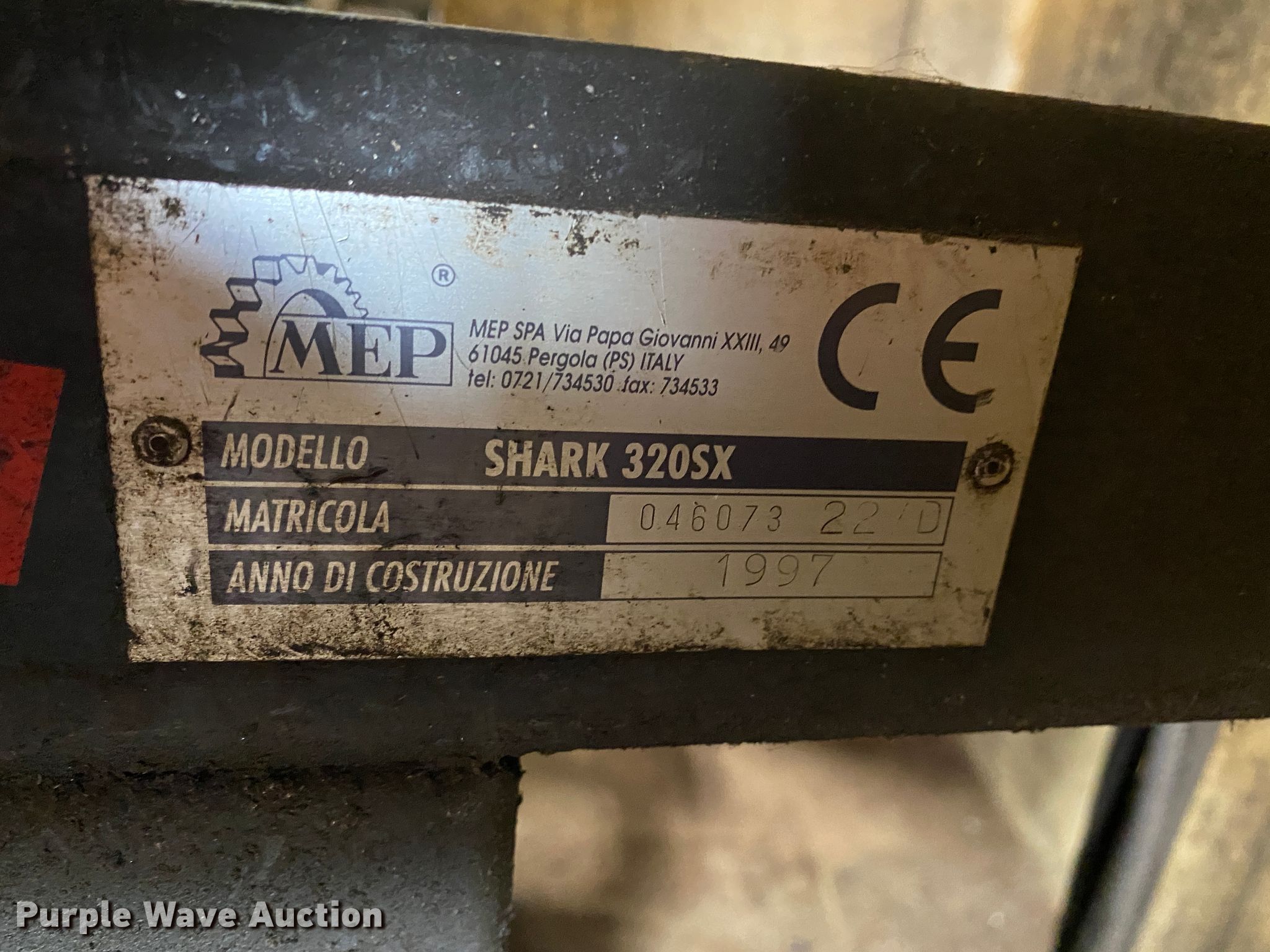 Purple Wave is selling a used Tools in Missouri. This item is a Shark 320SX horizontal bandsaw with the following: 13"W, Manual vise, (6) additional unused blades, Non-operational pedal, Serial 046073-22-D