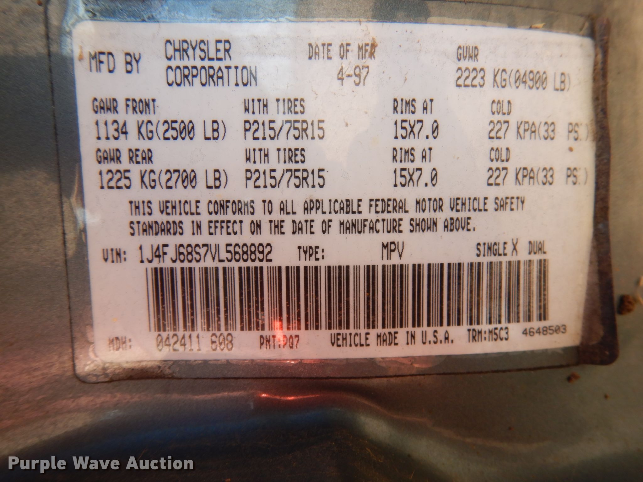 1997 Jeep Cherokee Sport SUV. 200,688 miles on odometer. Engine Displacement: 4.0L L6 OHV 12V, Cylinders: 6, Fuel type: Gas. Transmission Automatic, Four wheel drive. Interior AC, Heat, Power locks, Cruise control. Tires Size: 235/75R15. Notes Possible wiring issues, Dash warning indicator: Brake. Wisconsin title. 1J4FJ68S7VL568892. Adams Farms Inc.. 6545 2nd St. Stevens Point, WI 54482