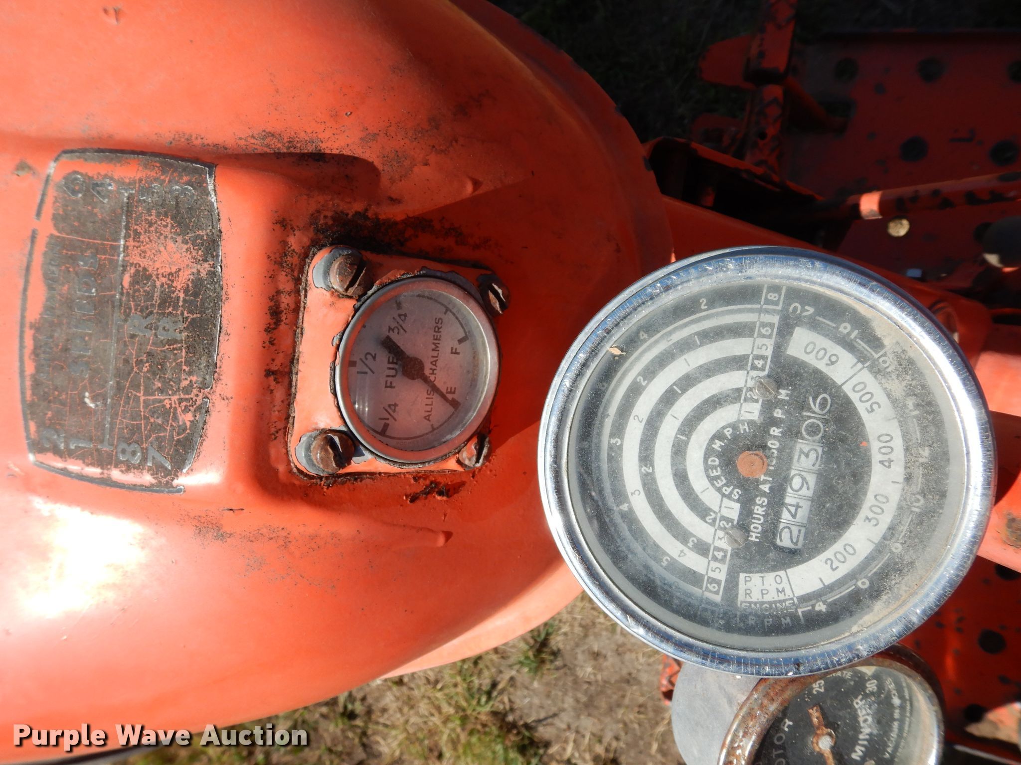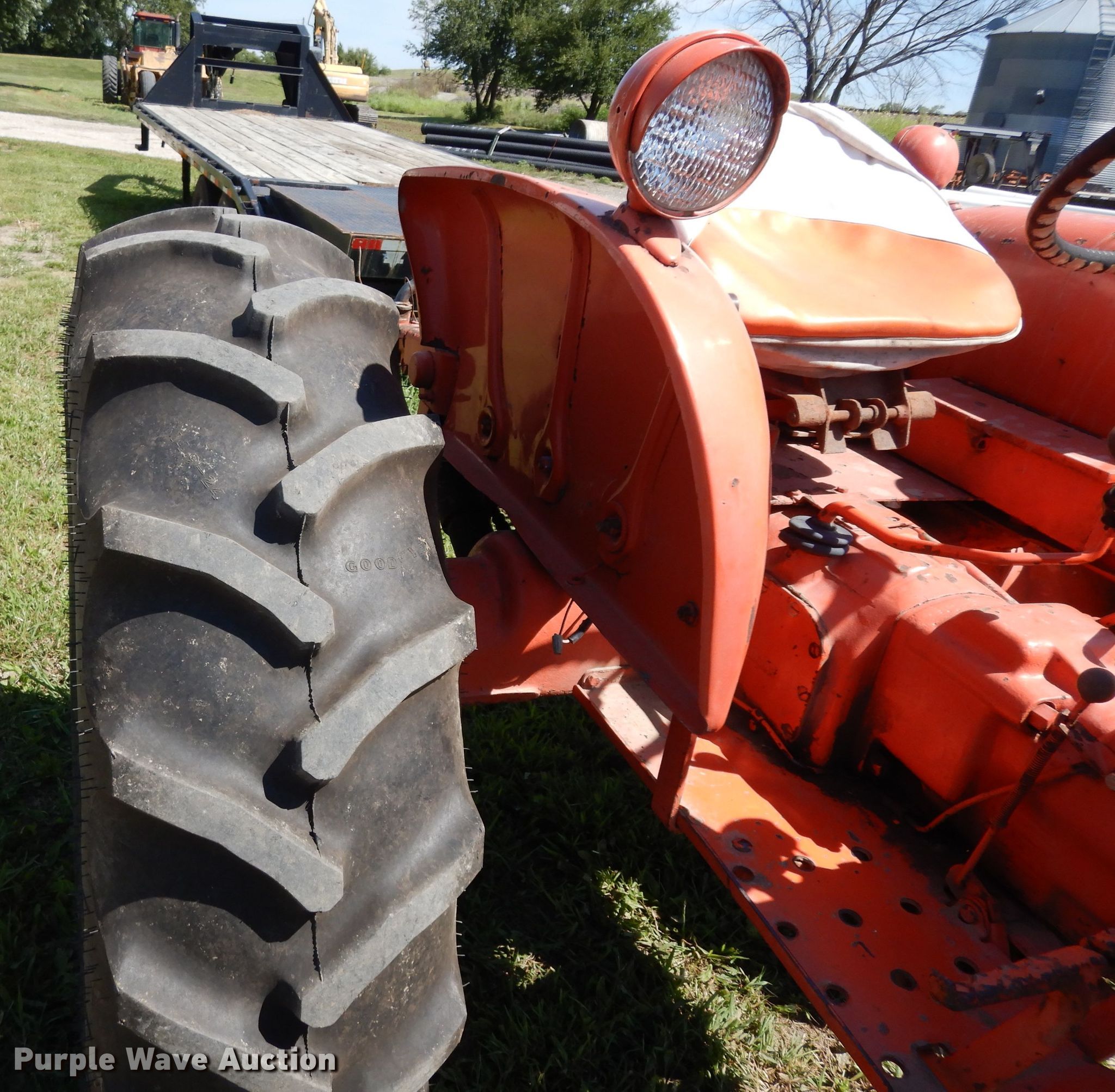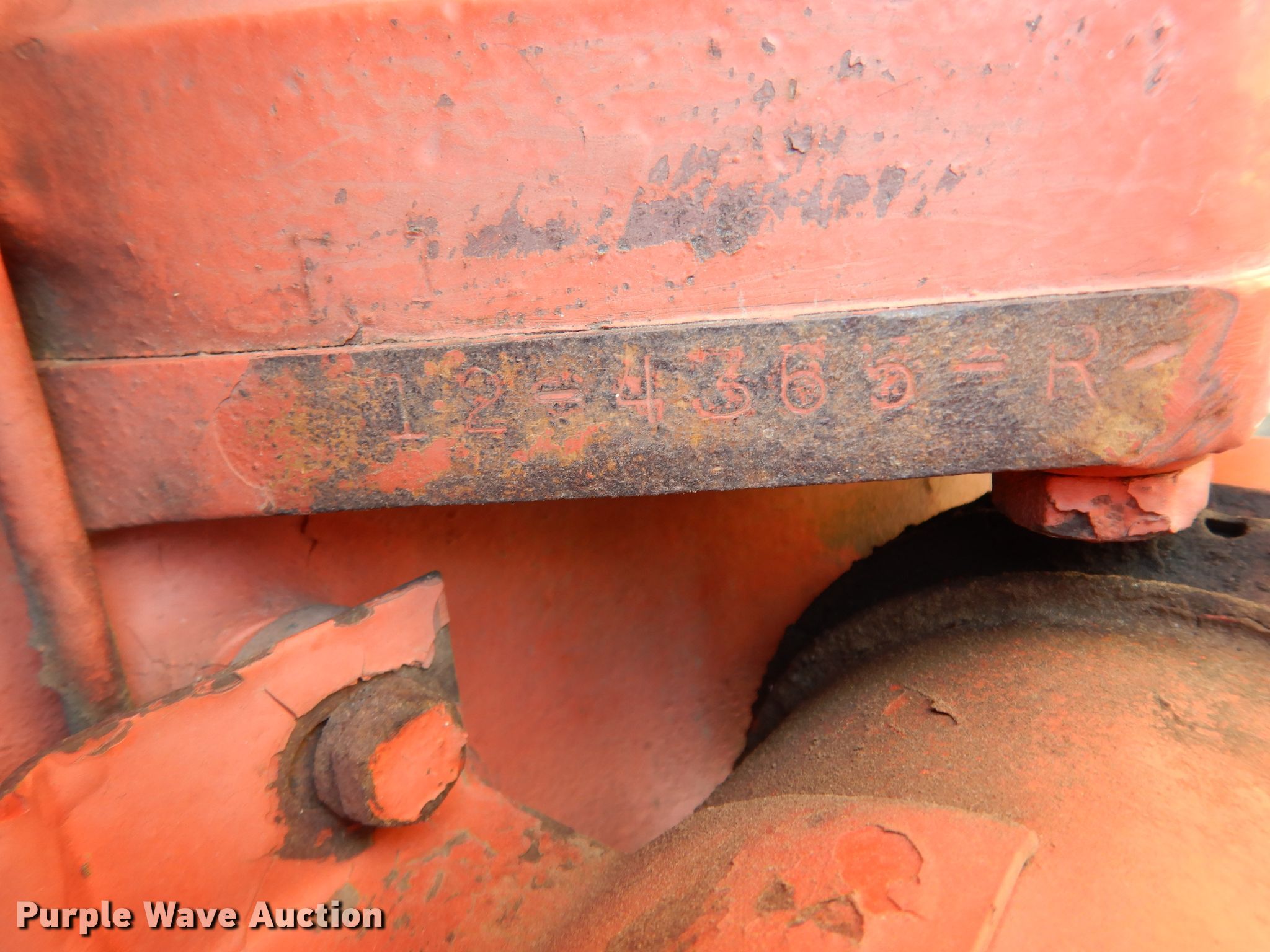 1962 Allis Chalmers D12 tractor. Serial: 4365. Engine Allis Chalmers , Displacement: 2.3L, Cylinders: 4, Fuel type: Gas. Transmission Manual, 4F - 1R. Operational PTO: 540, Three point Top link. Tires Front: 6.00-16, Rear: 14.9-24. 23375 Golden Belt Rd. Onaga, KS 66521