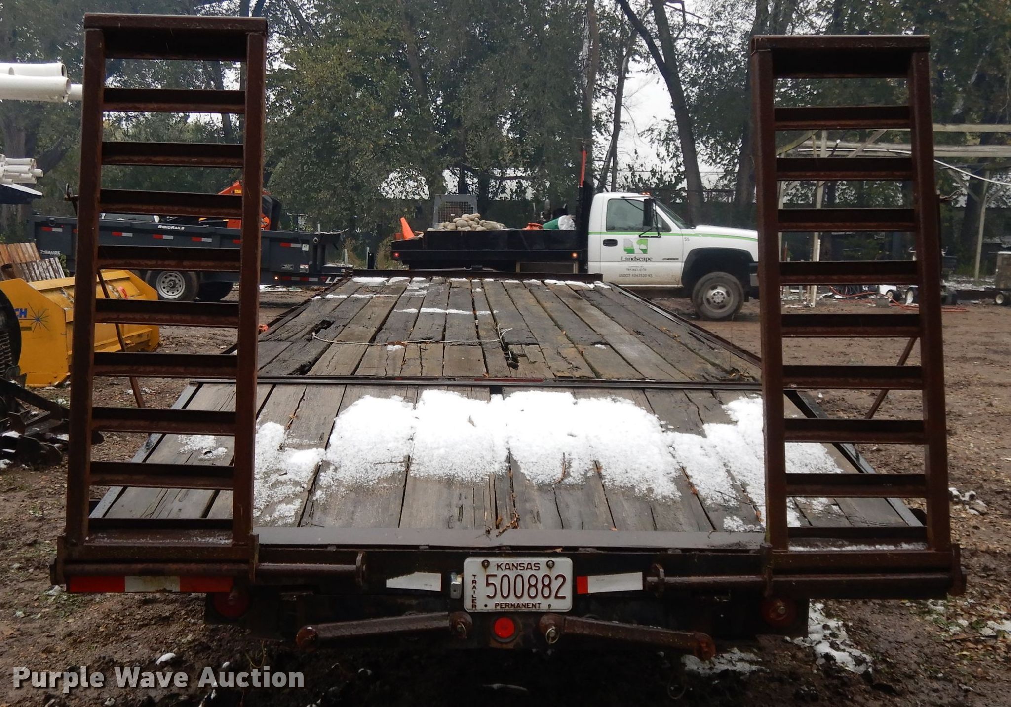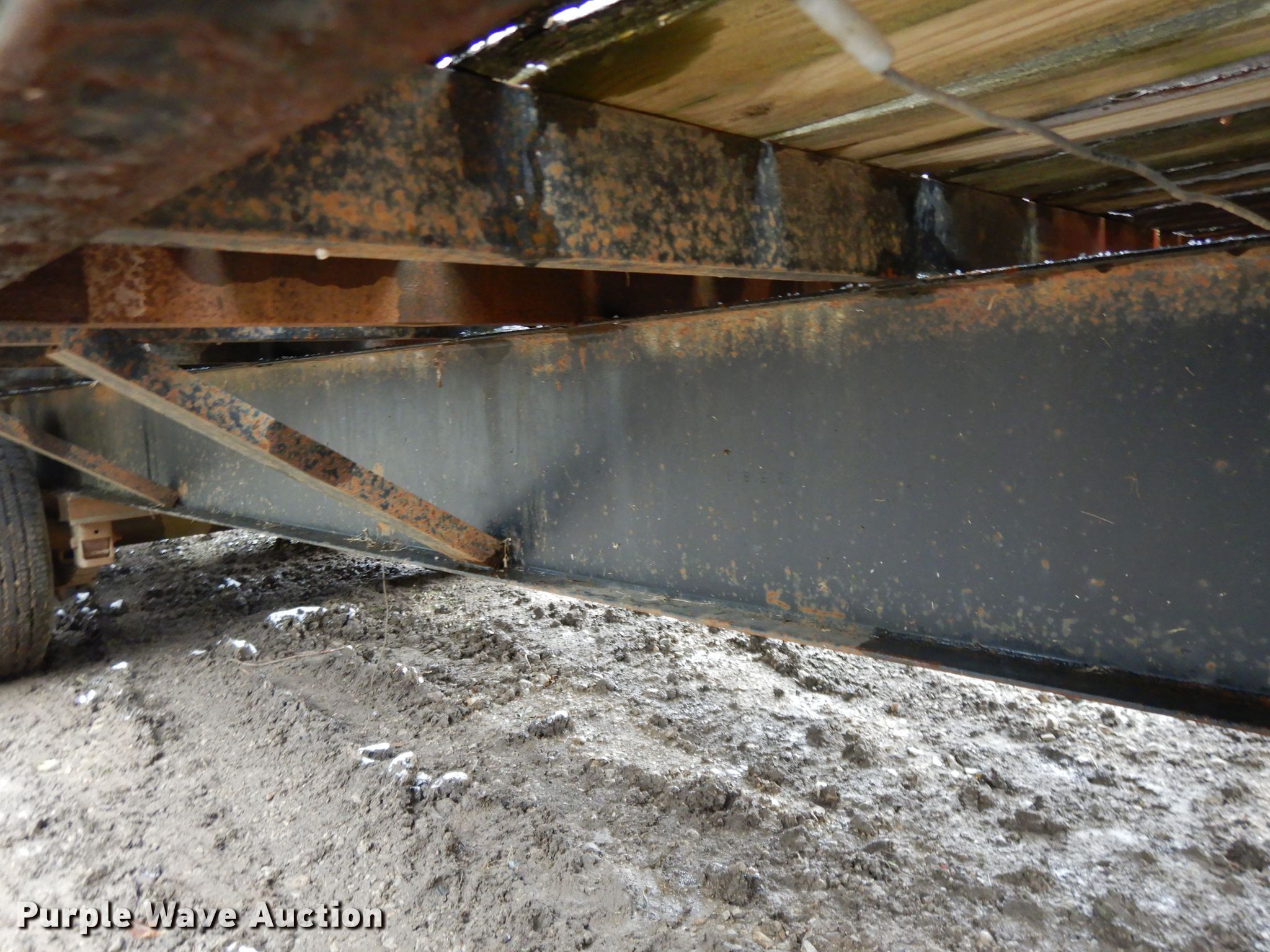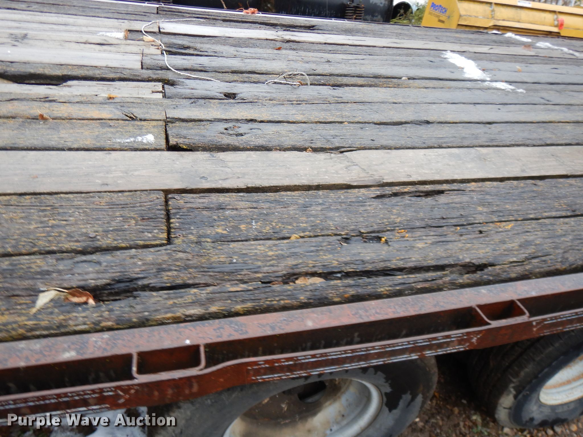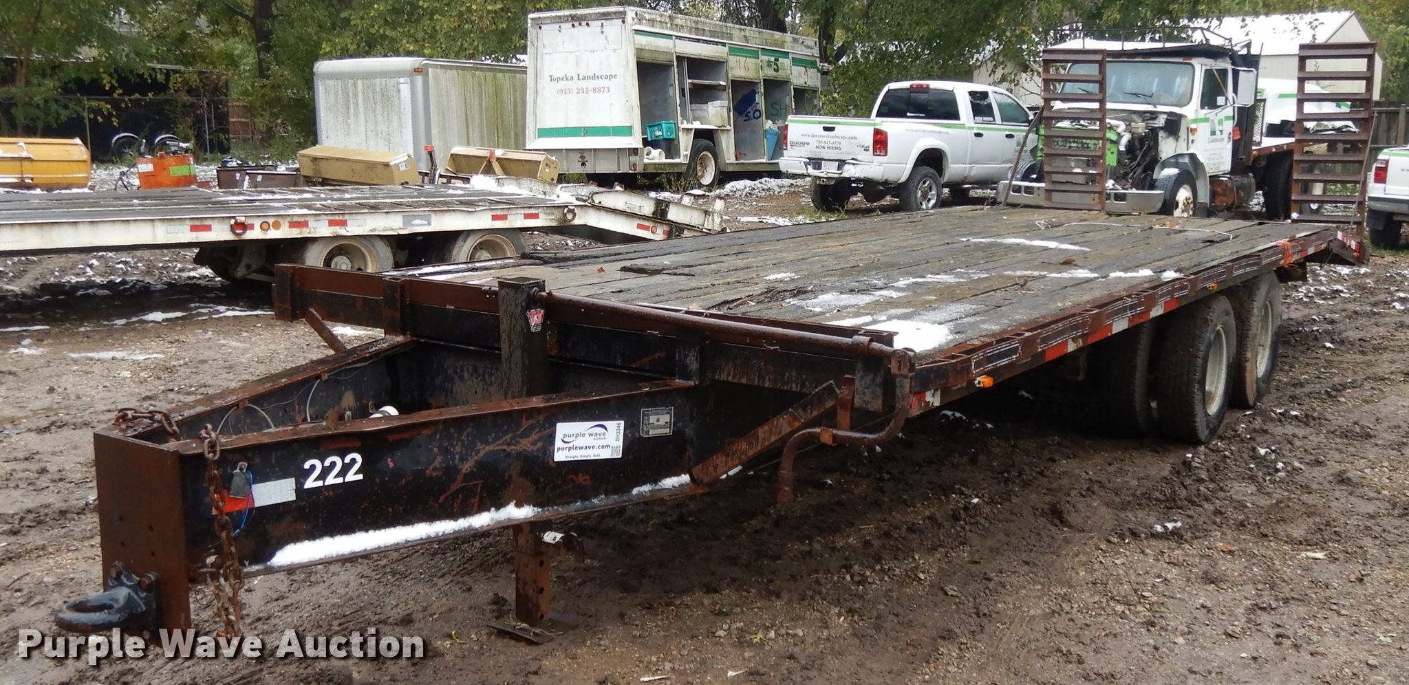 Purple Wave is selling a used Equip. Trailer in Kansas. This item is a 1996 Oklahoma Trailer equipment trailer with the following: 30'L x 102"W overall, 20'L x 96"W wood deck, 5' tail length, 5'L ramps, Single leg landing gear, Spring suspension, Tandem axle, Steel wheels, 235/85R16 tires, GVWR 20,000 lbs, Unit# 222