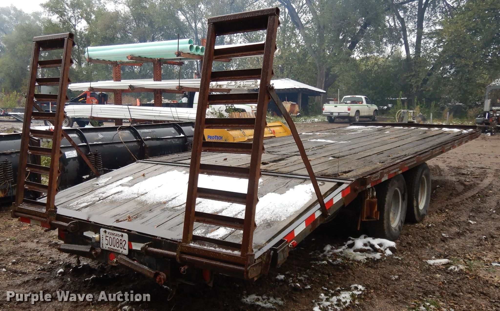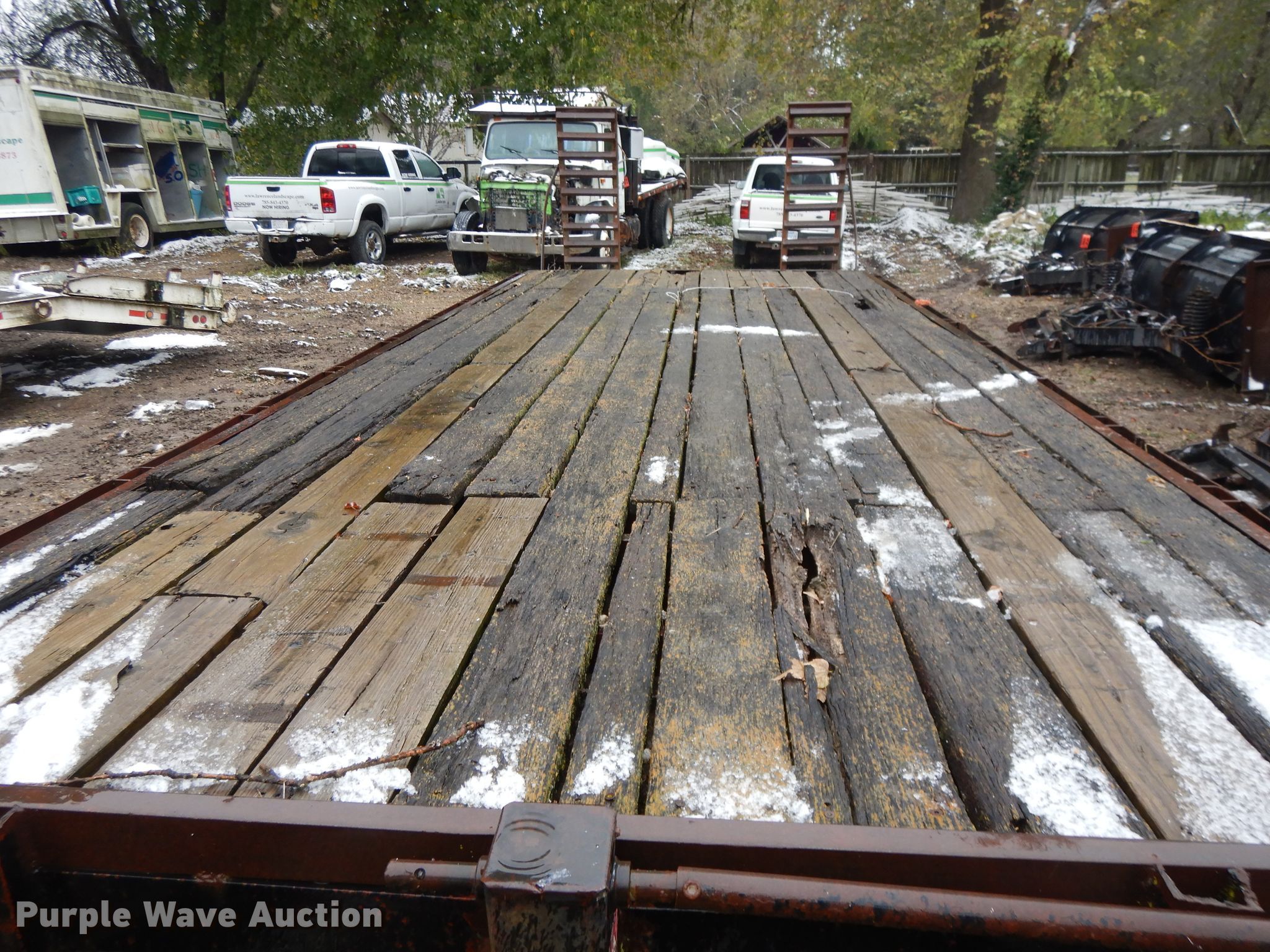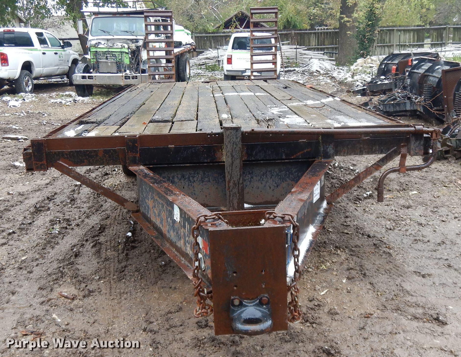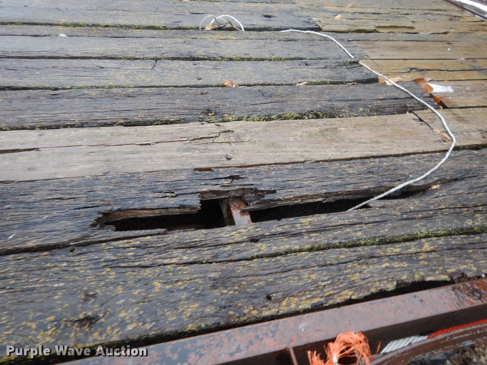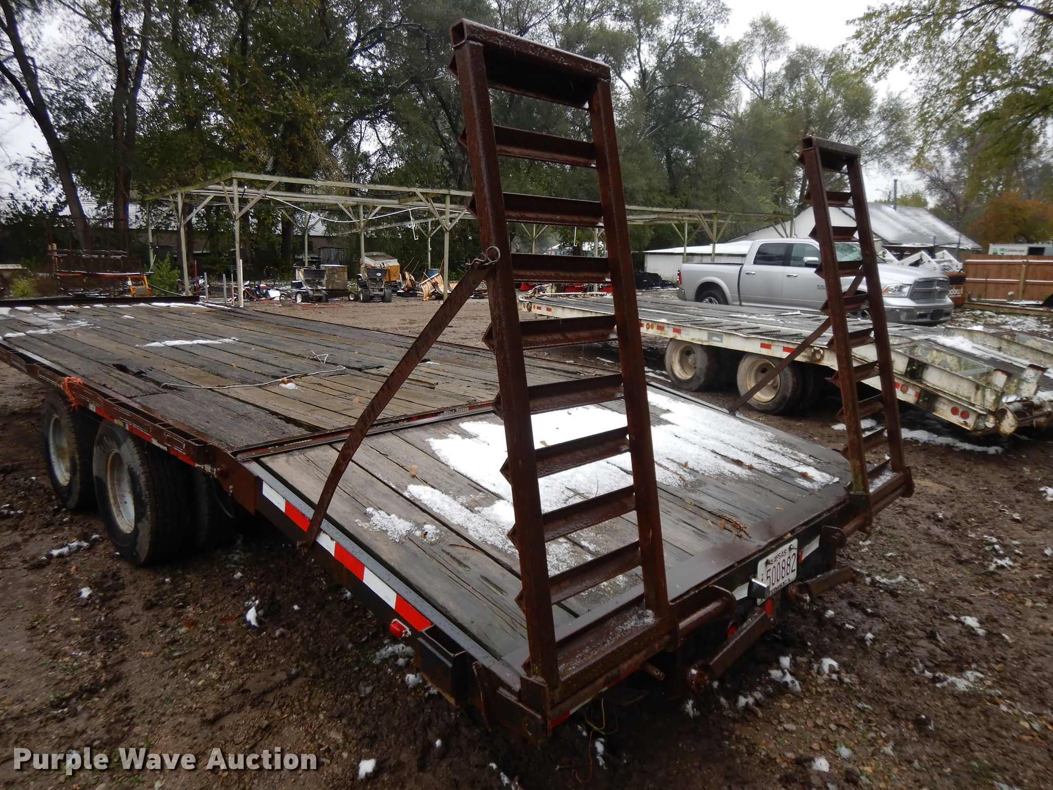Purple Wave is selling a used Equip. Trailer in Kansas. This item is a 1996 Oklahoma Trailer equipment trailer with the following: 30'L x 102"W overall, 20'L x 96"W wood deck, 5' tail length, 5'L ramps, Single leg landing gear, Spring suspension, Tandem axle, Steel wheels, 235/85R16 tires, GVWR 20,000 lbs, Unit# 222