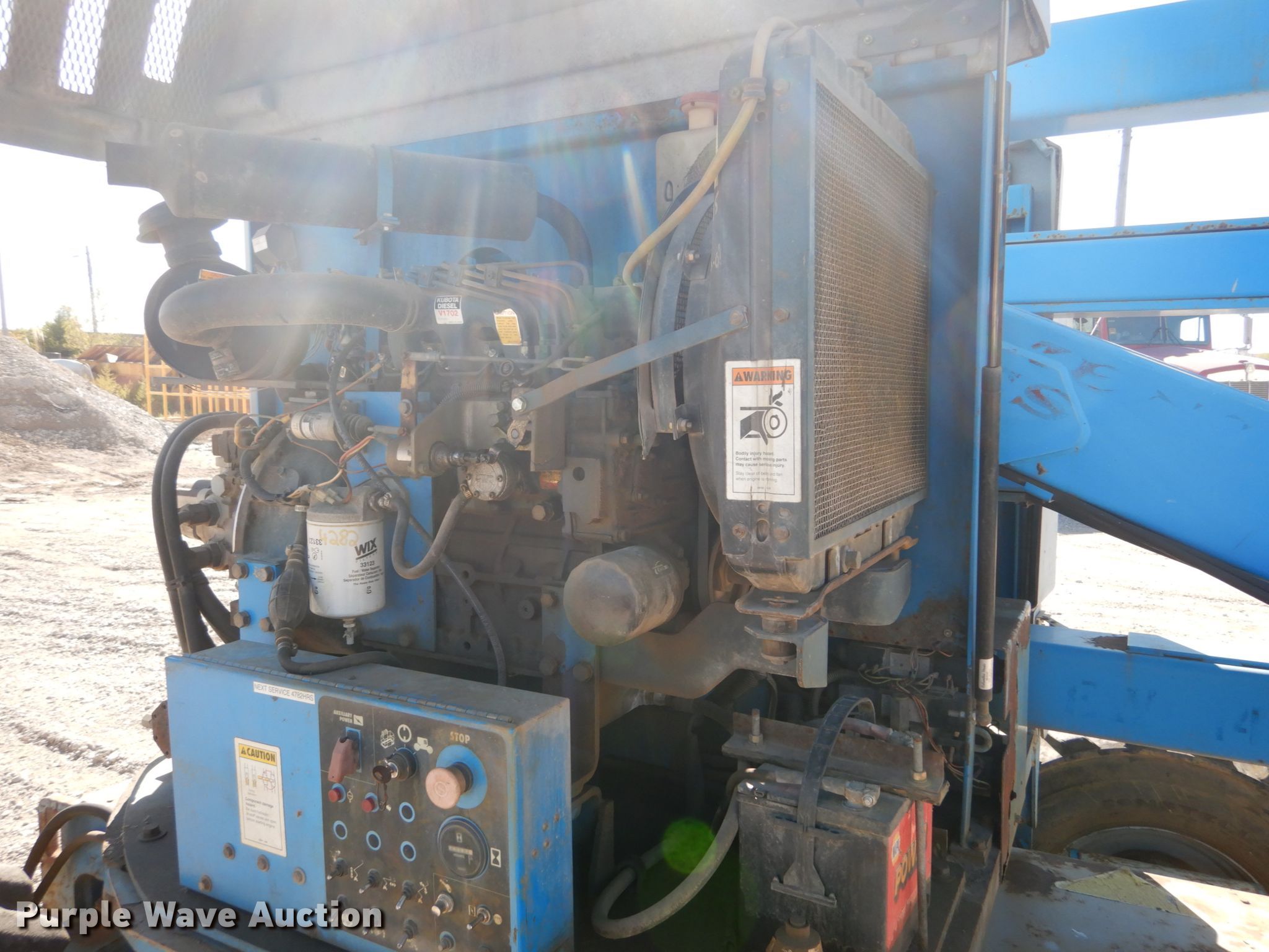 1994 Genie Z-45/22 boom lift. 4,486 hours on meter, Serial: Z-45-001466. Engine Kubota V1702, Cylinders: 4, Fuel type: Diesel. Chassis Four wheel drive. Operational Articulating boom, Maximum lift capacity: 500 lbs, Maximum reach length: 23', Maximum lift height: 45', Platform: 30" L x 70" W, Controls: Platform, Ground, Platform rotation: Hydraulic. Tires Tire size: 14-17.5. Ahrens Contracting. St. Louis, MO 63146