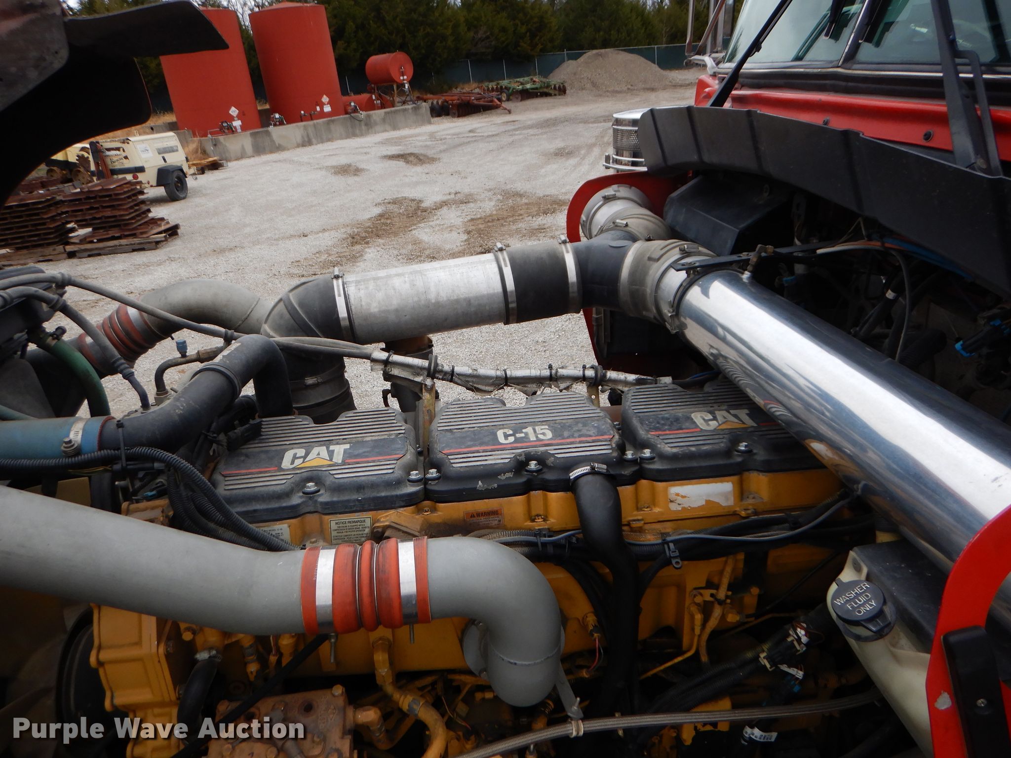 2003 Kenworth W900 semi truck. 572,824 miles on odometer, Engine hours: 21,455. Engine Caterpillar C15, Displacement: 15.0L, Cylinders: 6, Fuel type: Diesel, HP: 475, Engine brake. Transmission Eaton Fuller, Manual, Speed: 18. Chassis Axles: Tandem, Gear ratio: 4:11, Pusher axle, Differential lock: Inter-axle, Suspension: Air, Brakes: Air, PTO, Wet kit, GVWR: 84,000 lbs FAWR: 18,000 lbs, IAWR: 23,000 lbs, RAWR: 23,000 lbs, Lift axle GAWR: 20,000 lbs, Wheelbase: 278", Double frame. Interior AC, Heat, Heated mirrors, Cruise control. Operational Deck plate: Aluminum, Fifth wheel type: Air operated, Sliding, Fuel tank: Single. Tires Front: 315/80R22.5, Rear: 11R24.5. Kansas title. 1XKWPBTX43J397337. R L Duncan Construction. 9560 Lexington Ave. De Soto, KS 66018