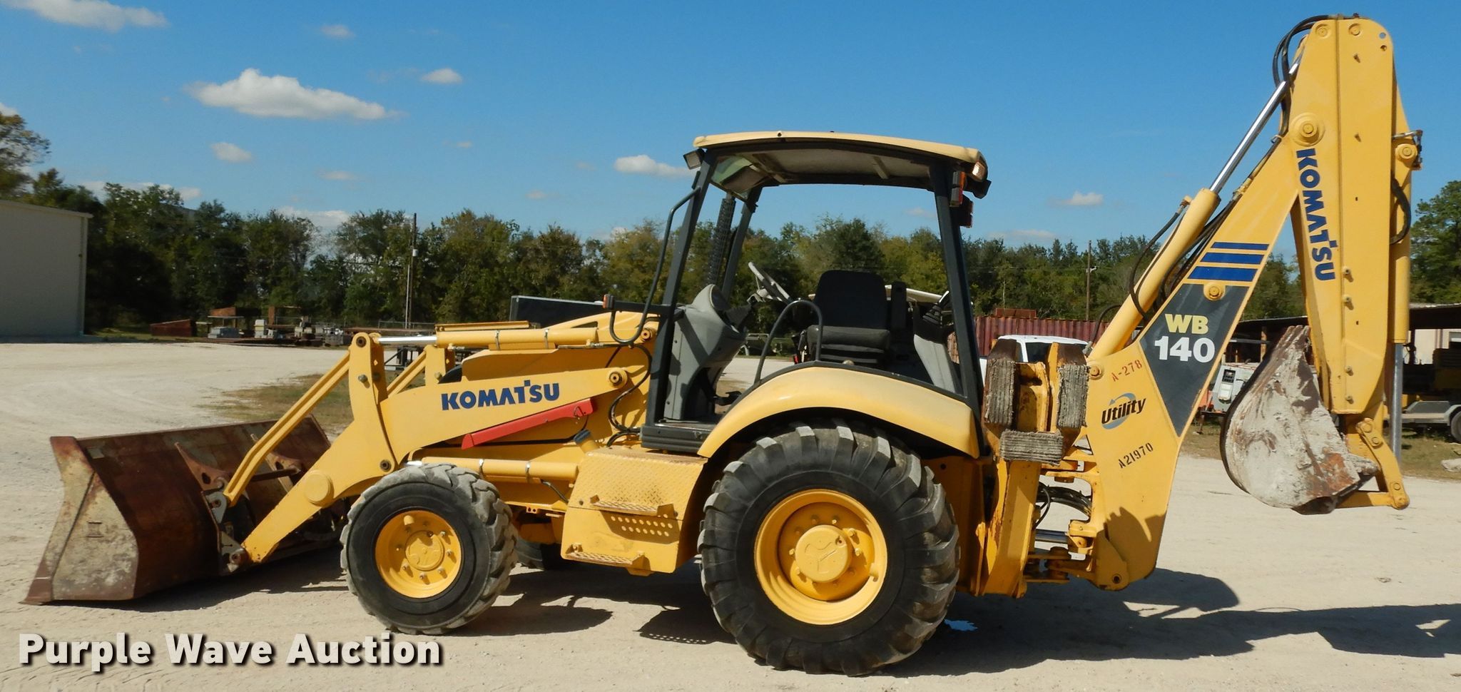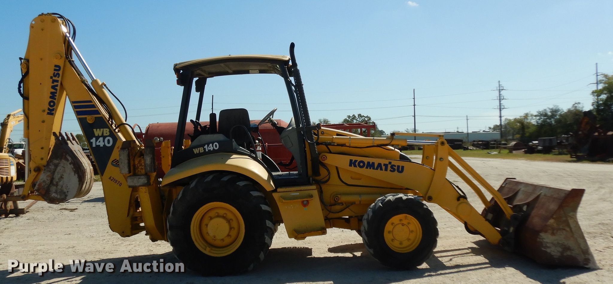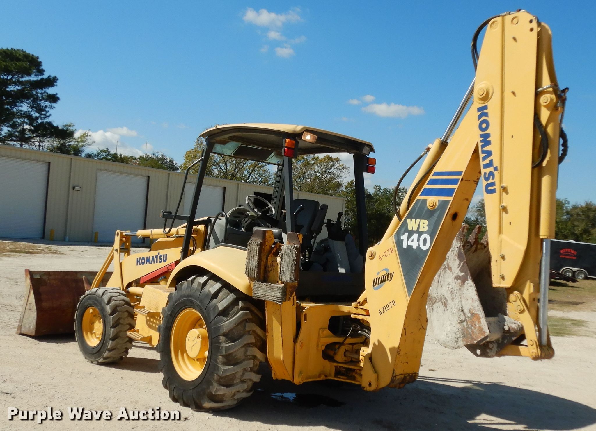 Purple Wave is selling a used Tractor Loader Backhoe in Texas. This item is a 2005 Komatsu WB140 backhoe with the following: 5,152 hours on meter, Serial: KMTWB001V36A21970