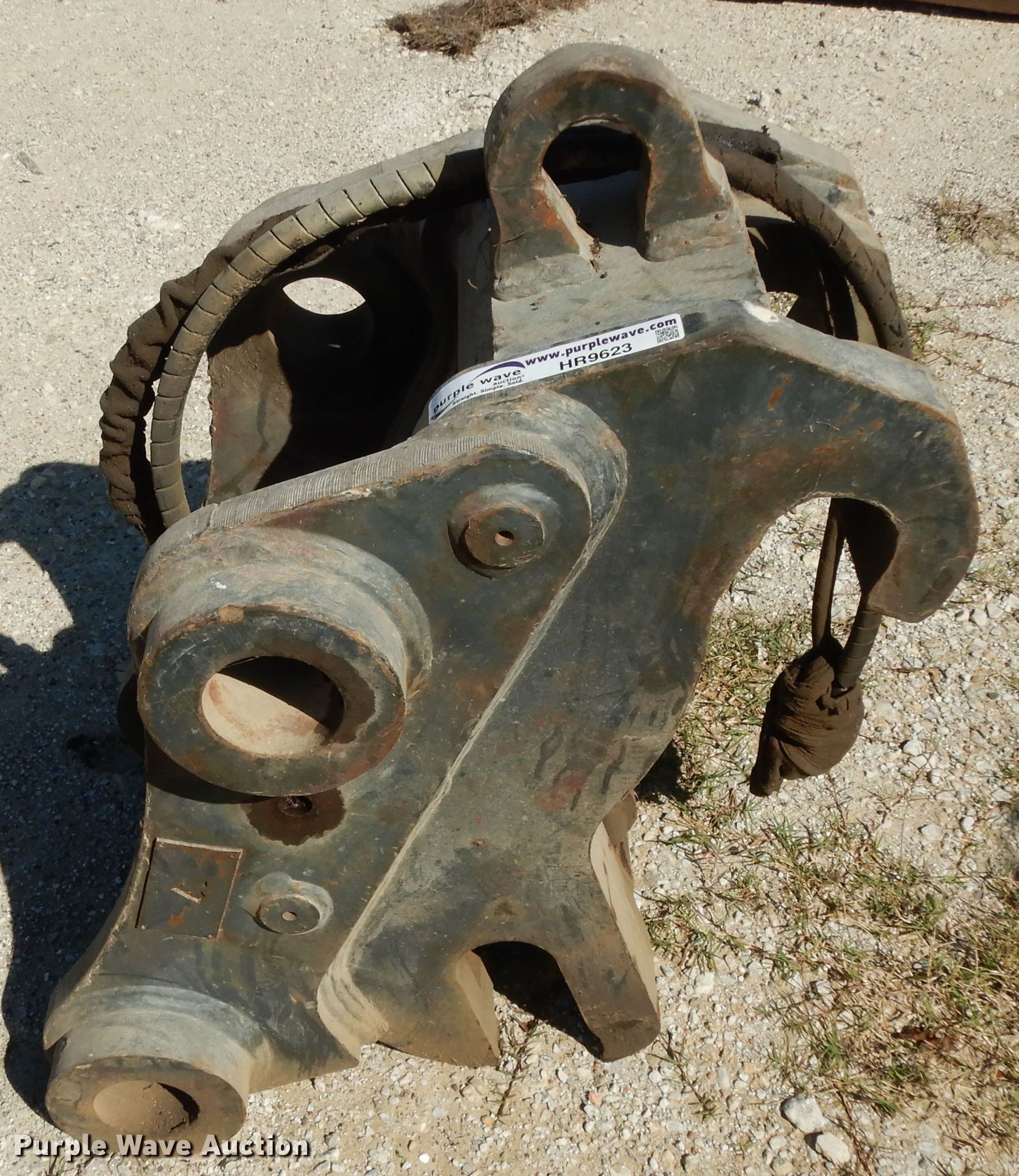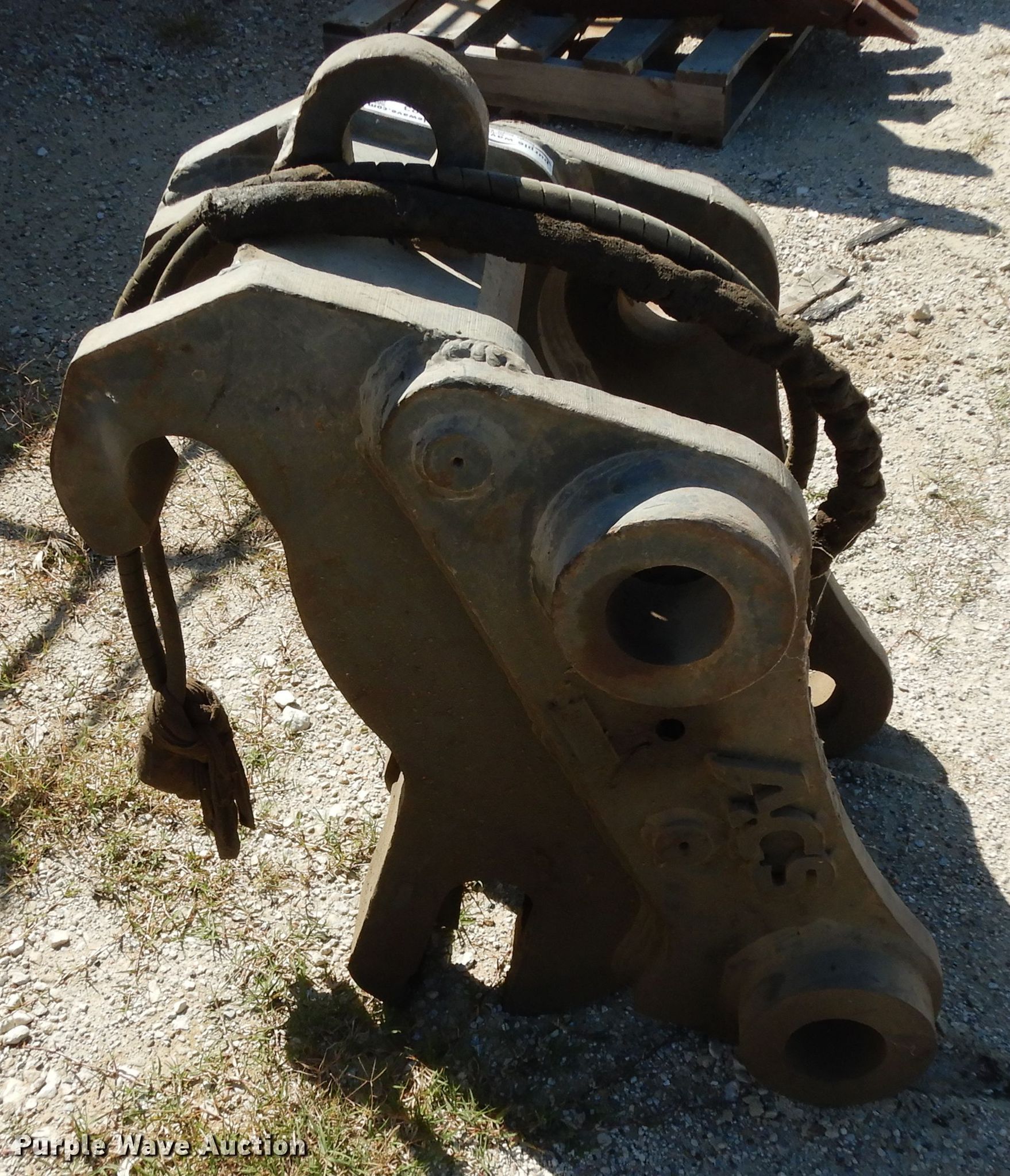 Purple Wave is selling a used Excavator Attach. in Texas. This item is a ACS excavator quick attach with the following: 13" I.D. ear width, 20" O.D. ear width, 3" diameter pin holes