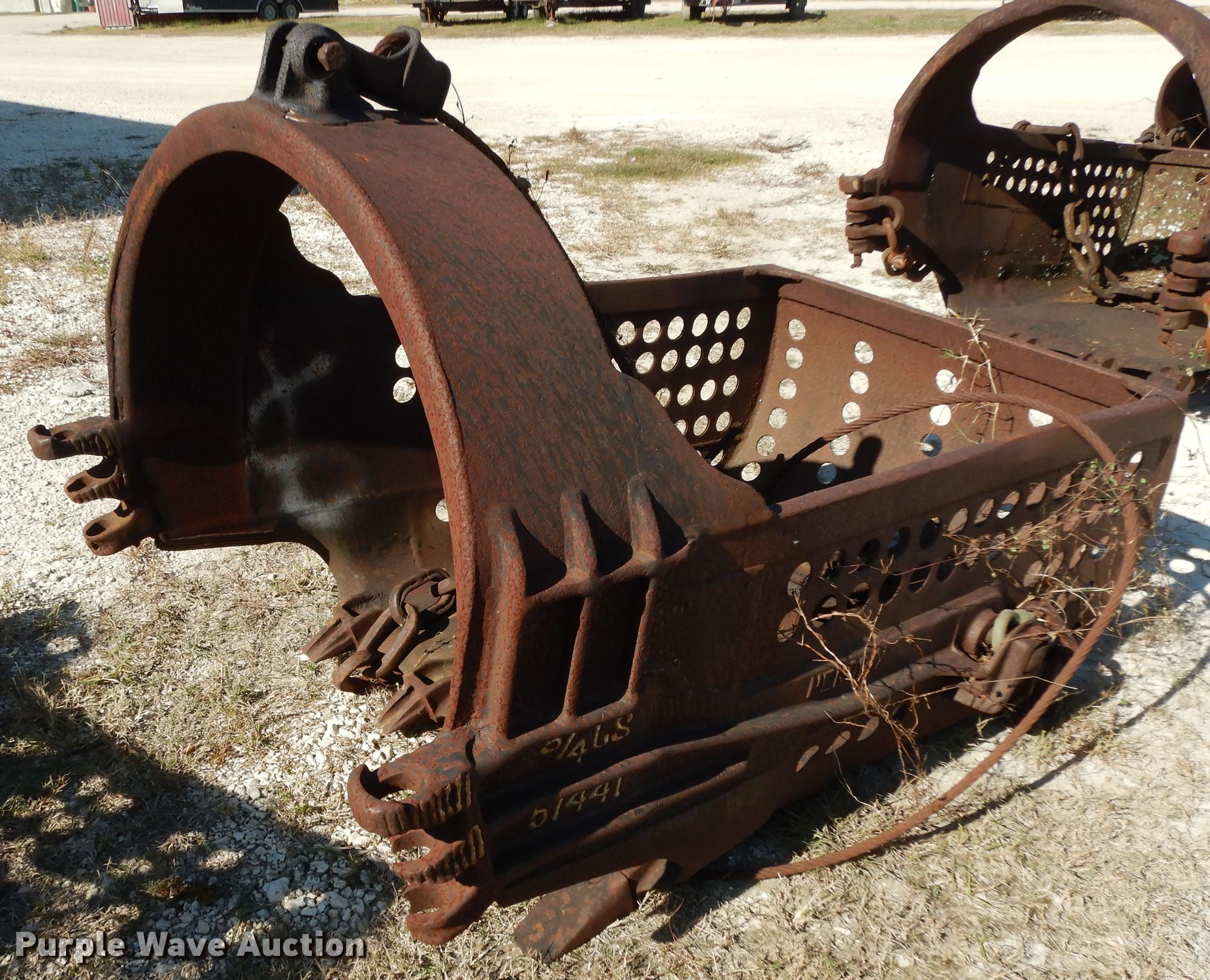 Purple Wave is selling a used Crane Attach. in Texas. This item is a (2) crane buckets with the following: Hendrix 51441 dragline bucket, 5'3"L x 3'8"W, Hendrix dragline sifter bucket, 5'10"L x 6'3"W