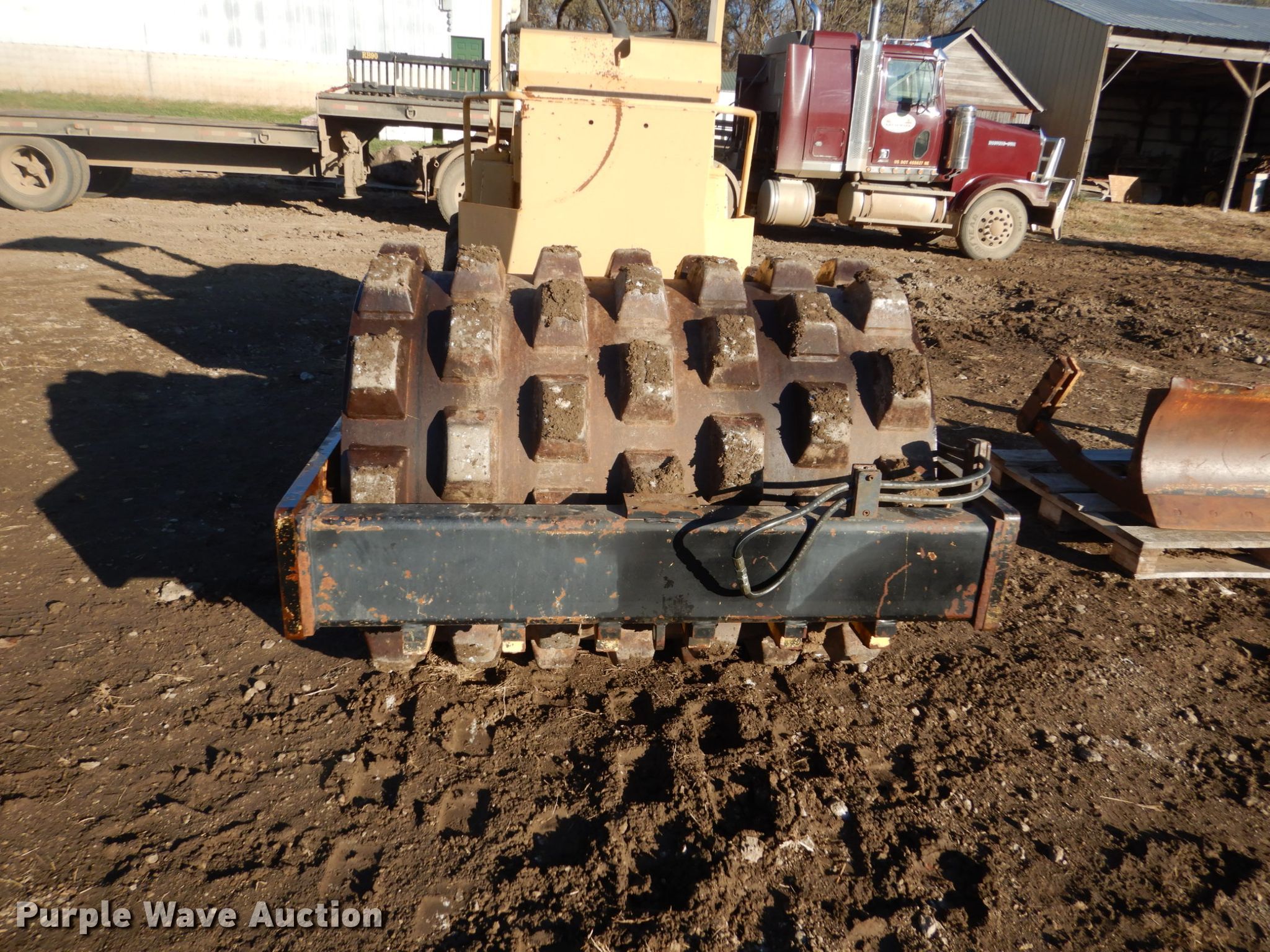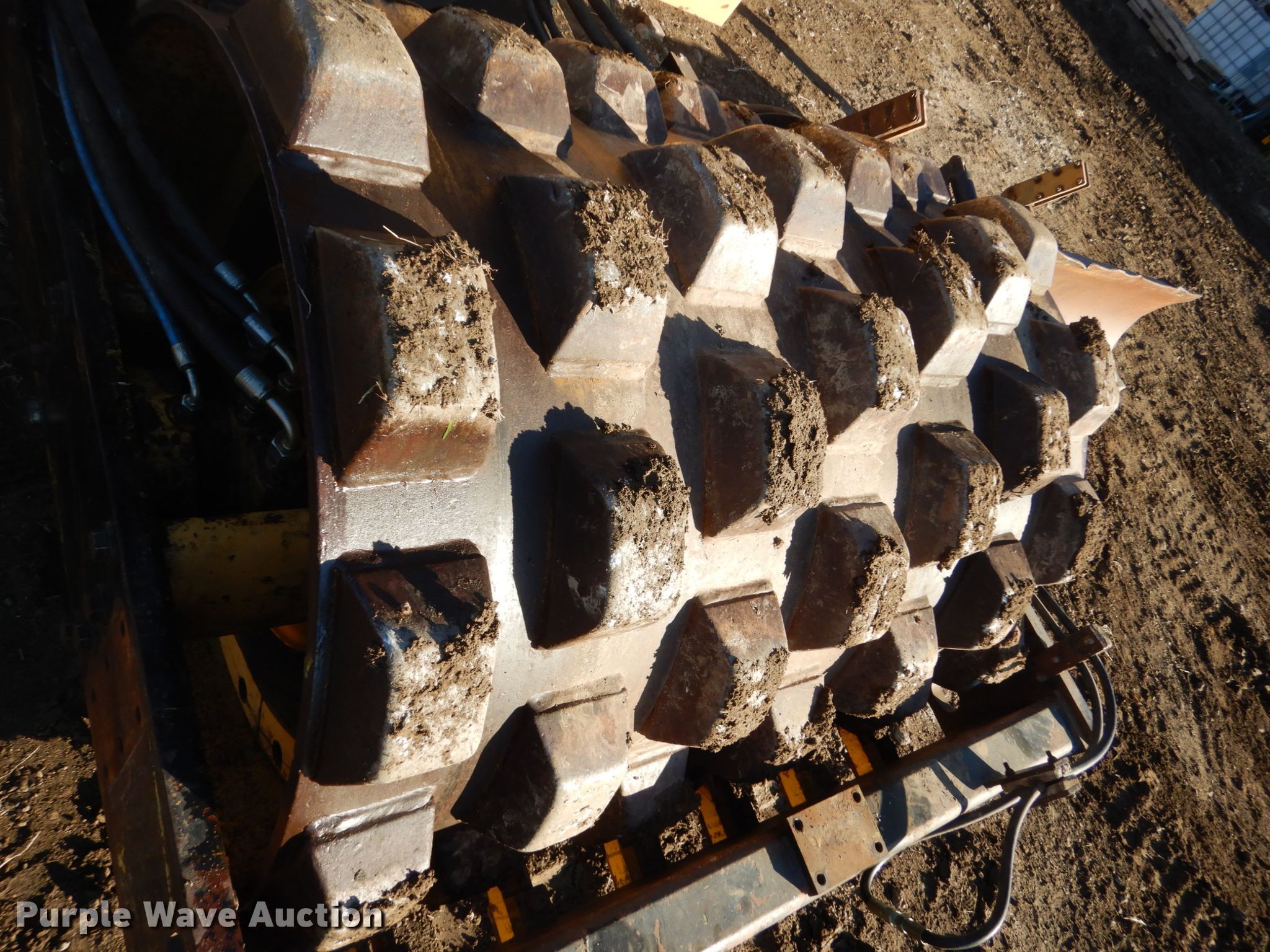 Hypac C822A vibratory single drum roller. Engine. Cummins , Displacement: 3.9L, Cylinders: 4, Fuel type: Diesel. Transmission Hydrostatic, Two speed. Operators station Vandal cover. Operational Drum: Padfoot, Vibratory system: Single, Drum width: 57", Drum diameter: 40", Drum scrapers: Front, Front blade width: 62.5". Tires Rear: 12.4-24. Krusemark Construction & Excavation. 86835 591 Ave. Waterbury, NE 68785