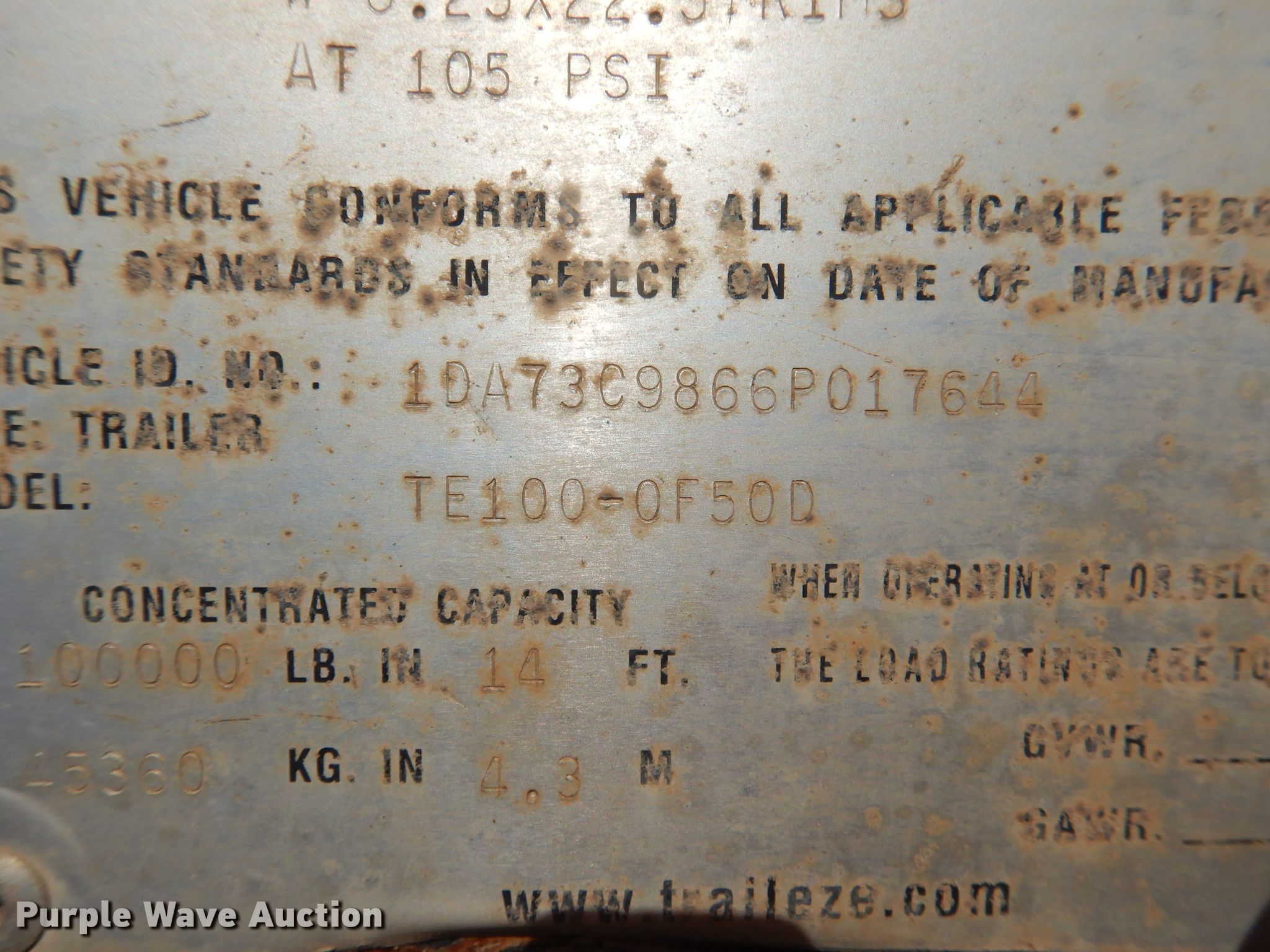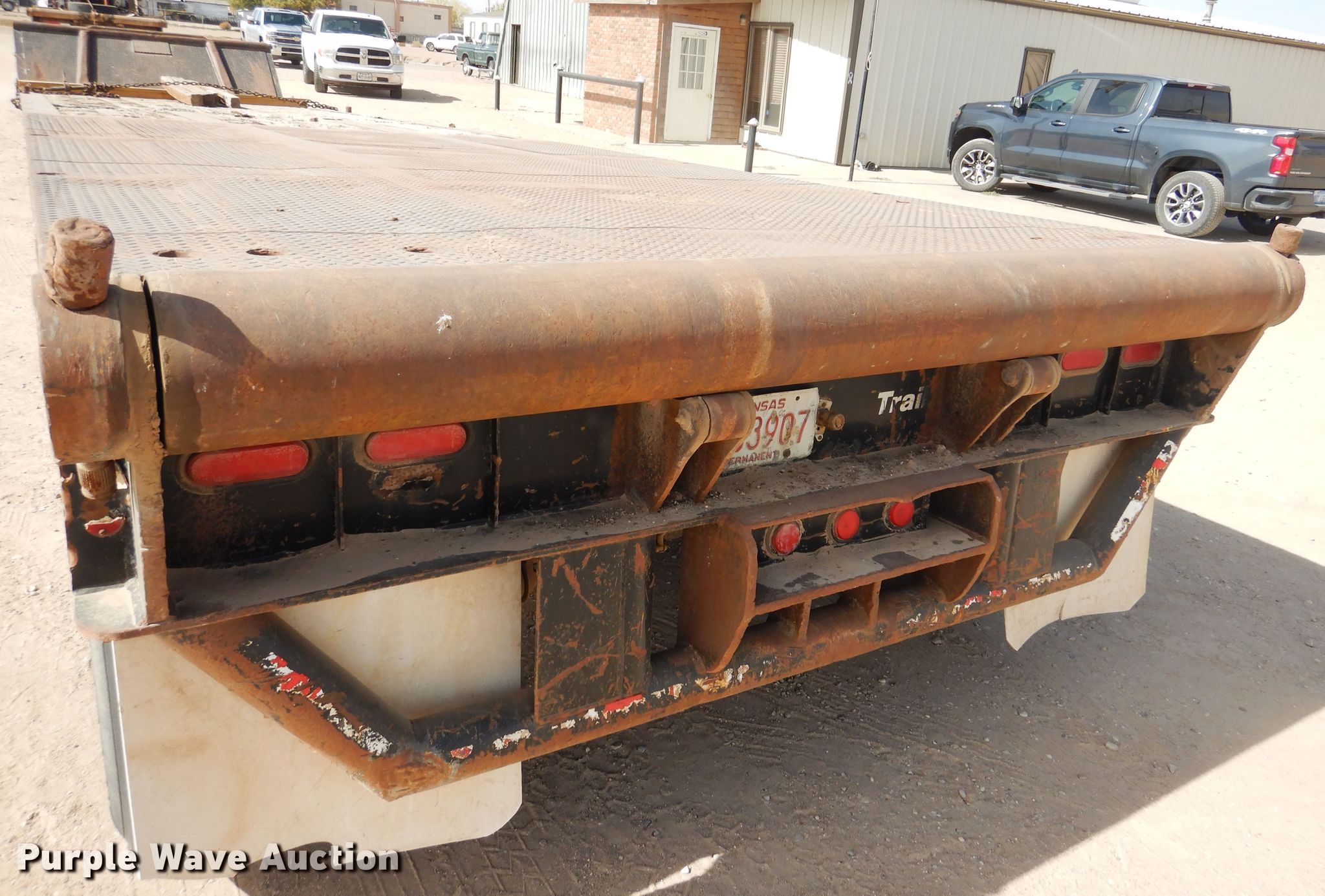 Purple Wave is selling a used Flat or Drop Deck Trailer in Kansas. This item is a 2006 Trail-Eze TE100-0F50D drop deck equipment trailer with the following: 50'L x 8'W overall, 40'L x 8'W steel deck, Rolling tailboard, Spring suspension, Air brakes, Steel wheels, 11R22.5 tires, GVWR 54,883 lbs, GAWR 10,431 lbs, Unit# 131
