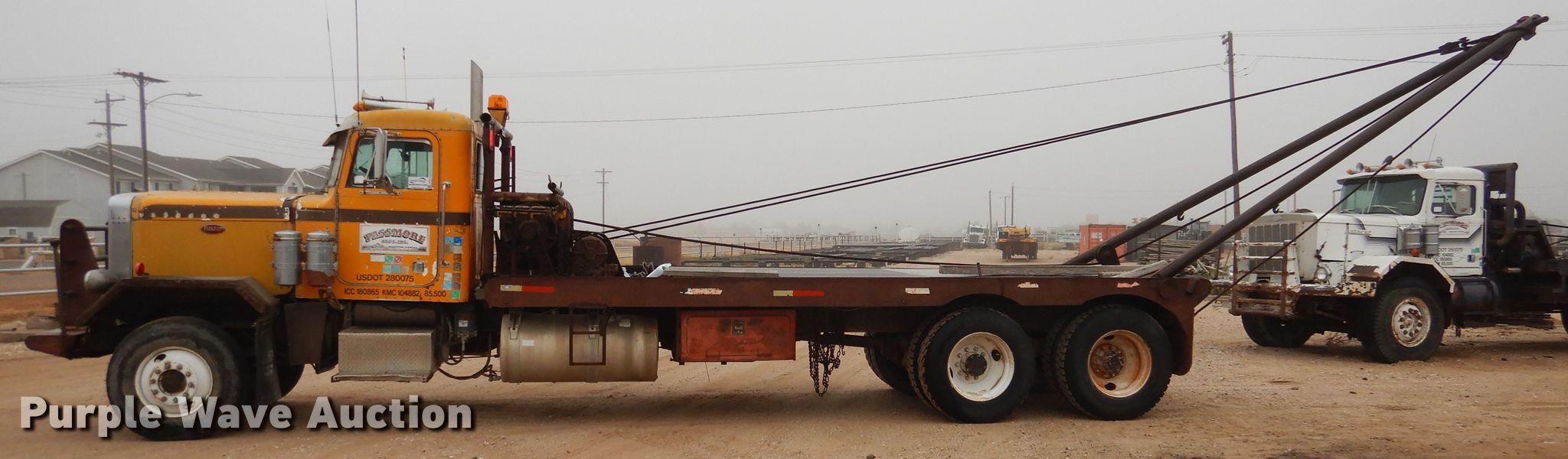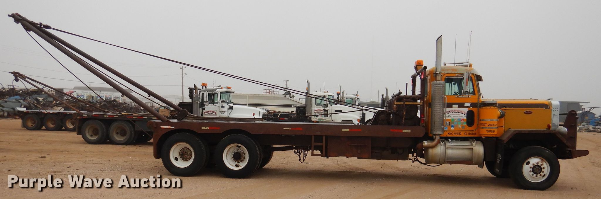 1980 Peterbilt 353 winch truck. 743,153 miles on odometer, Engine hours: 8,293, Unit #: 60. Engine Cylinders: 6, Fuel type: Diesel. Transmission Manual, Speed: 15. Chassis Axles: Tandem, Suspension: Spring, Brakes: Air, PTO. Interior Heat. Operational Flatbed Length: 22', Width: 98", Winch Dual, Gin pole length: 20', Rolling tailboard. Tires Front: 315/80R22.5, Rear: 11R 24.5. Notes Windshield chipped or cracked. Kansas title. 138788P. Passmore Bros., Inc. - Open inspection Dec. 3. 828 E 11th St. Hugoton, KS 67951