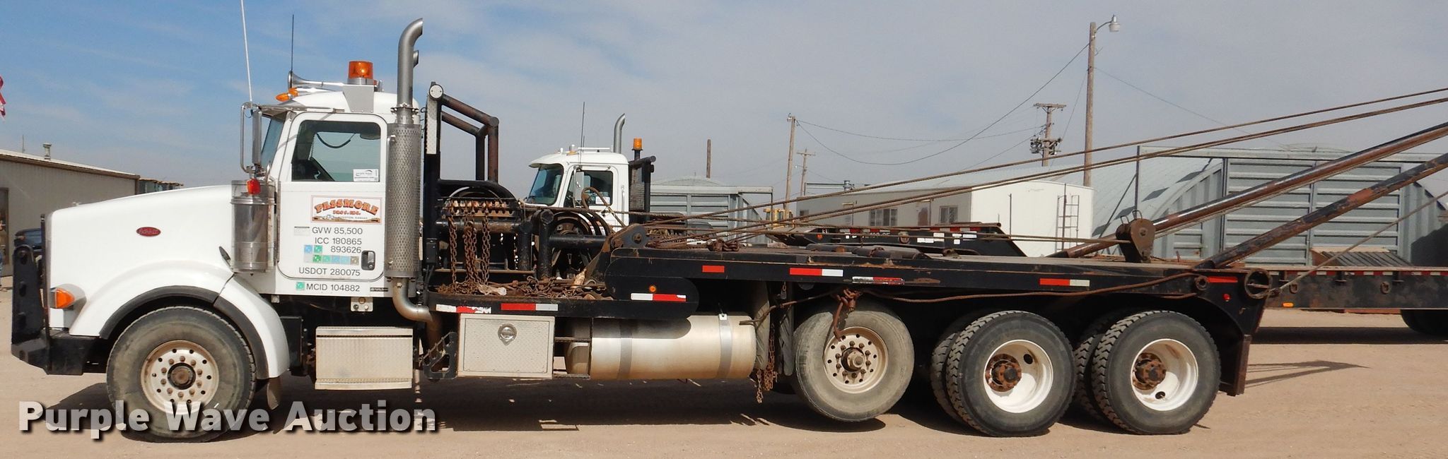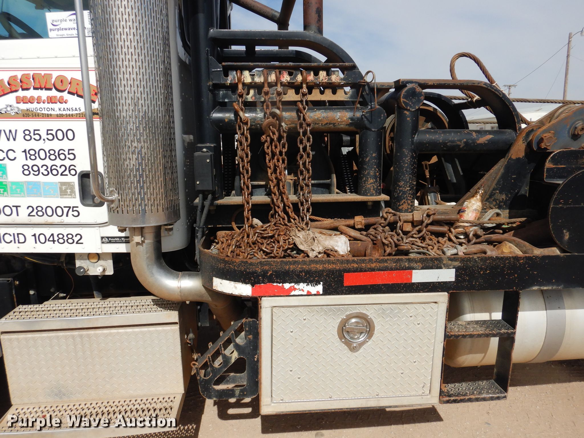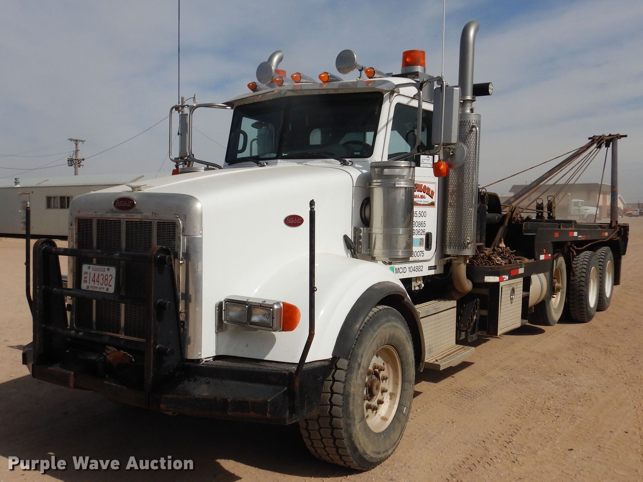 Purple Wave is selling a used Oilfield Truck in Kansas. This item is a 2006 Peterbilt 357 winch truck with the following: 301,111 miles on odometer, Engine hours: 671, Unit #: 63