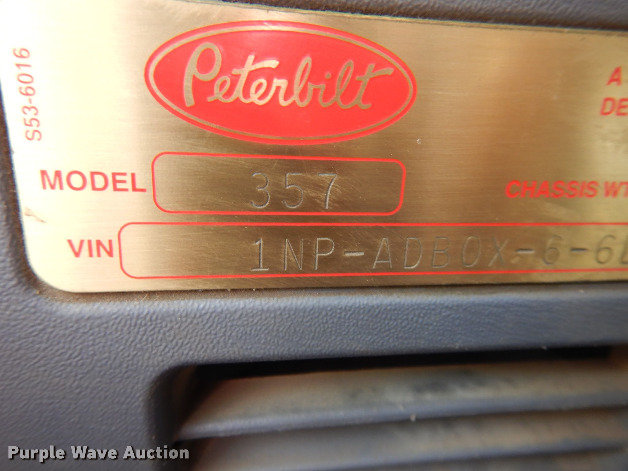 2006 Peterbilt 357 winch truck. 301,111 miles on odometer, Engine hours: 671, Unit #: 63. Engine Caterpillar C15, Displacement: 14.6L, Cylinders: 6, Fuel type: Diesel. Transmission Manual, Speed: 13. Chassis Axles: Triple, Suspension: Spring, Brakes: Air, PTO. Interior AC, Heat, Heated mirrors, Power windows, Cruise control. Operational Flatbed Length: 24'L, Width: 108", Winch Dual, Rolling tailboard. Tires Front: 425/65R22.5, Rear: 12R24.5. Notes Tablet not included. Kansas title. 1NPADB0X66D893626. Passmore Bros., Inc. - Open inspection Dec. 3. 828 E 11th St. Hugoton, KS 67951