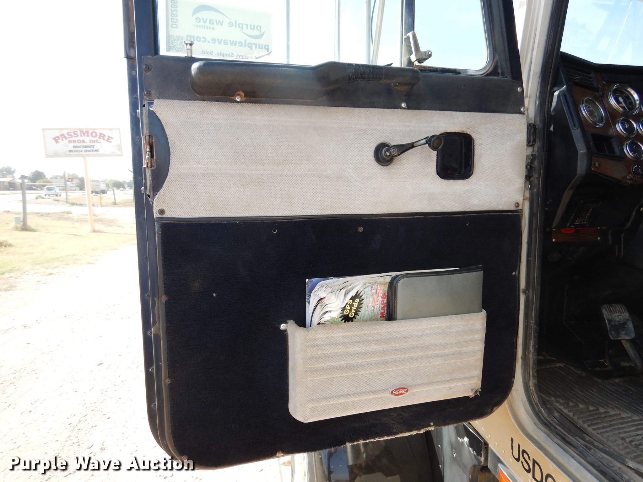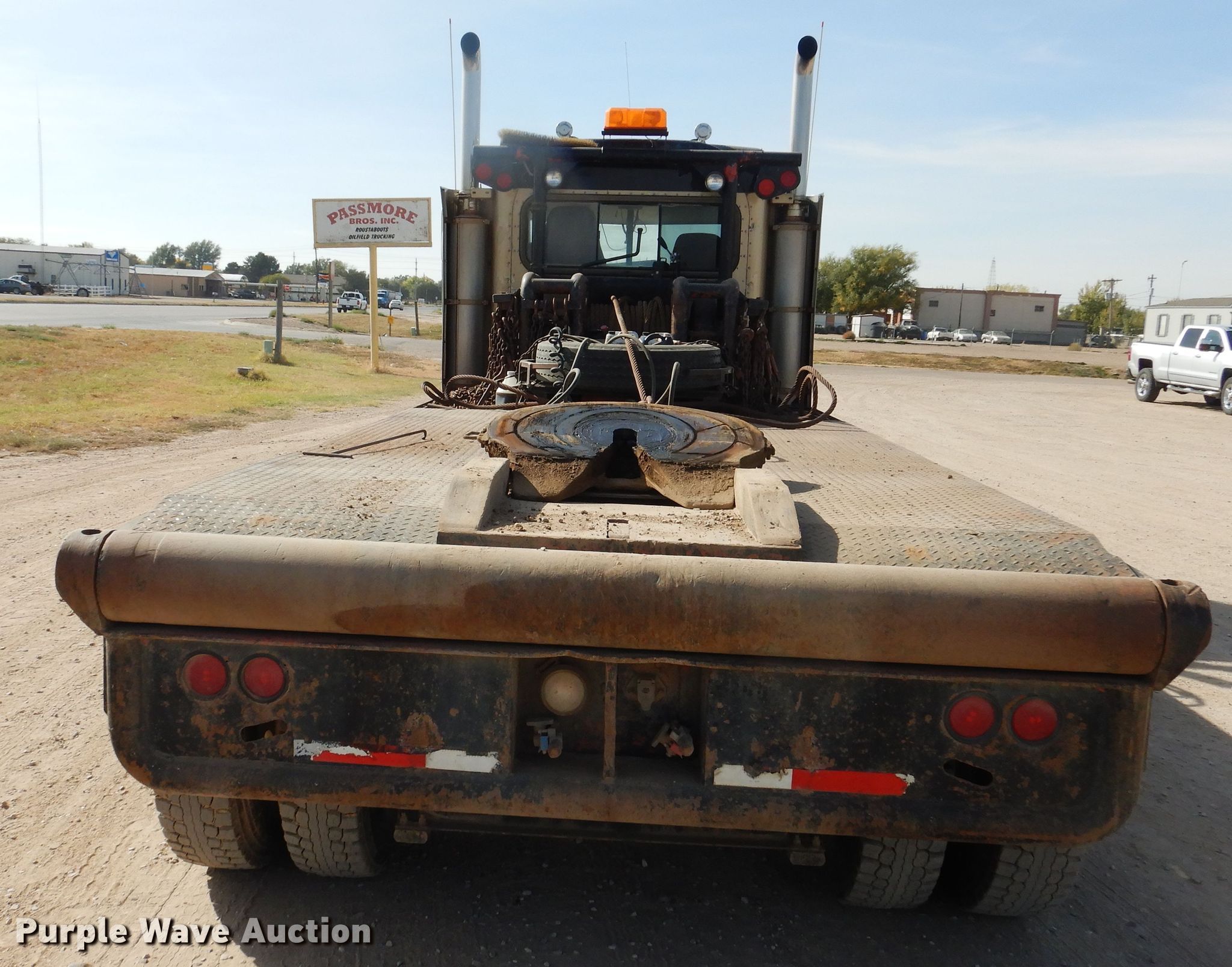 1999 Peterbilt 379 winch truck. 422,271 miles on odometer, Unit #: 80. Engine Detroit Diesel, Displacement: 12.7L, Cylinders: 6, Fuel type: Diesel. Transmission Eaton Fuller, Speed: 10. Chassis Axles: Tandem, Suspension: Air, Brakes: Air, PTO. Interior AC, Heat, Heated mirrors, Power locks, Cruise control. Operational Flatbed Length: 18', Width: 102", Winch, Rolling tailboard, Fifth wheel plate type: Air operated, sliding. Tires Front: 285/65R22.5, Rear: 285/75R24.5. Kansas title. 1XP5DR9X1XD478802. Passmore Bros., Inc. - Open inspection Dec. 3. 828 E 11th St. Hugoton, KS 67951