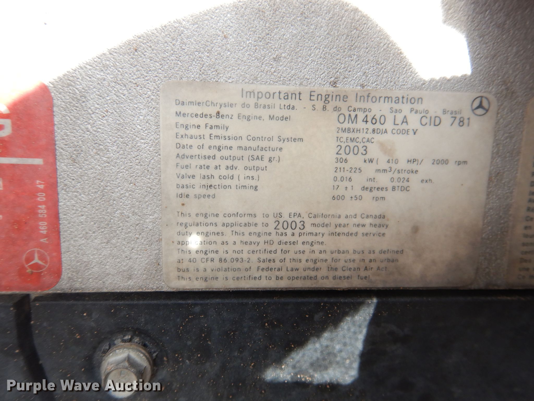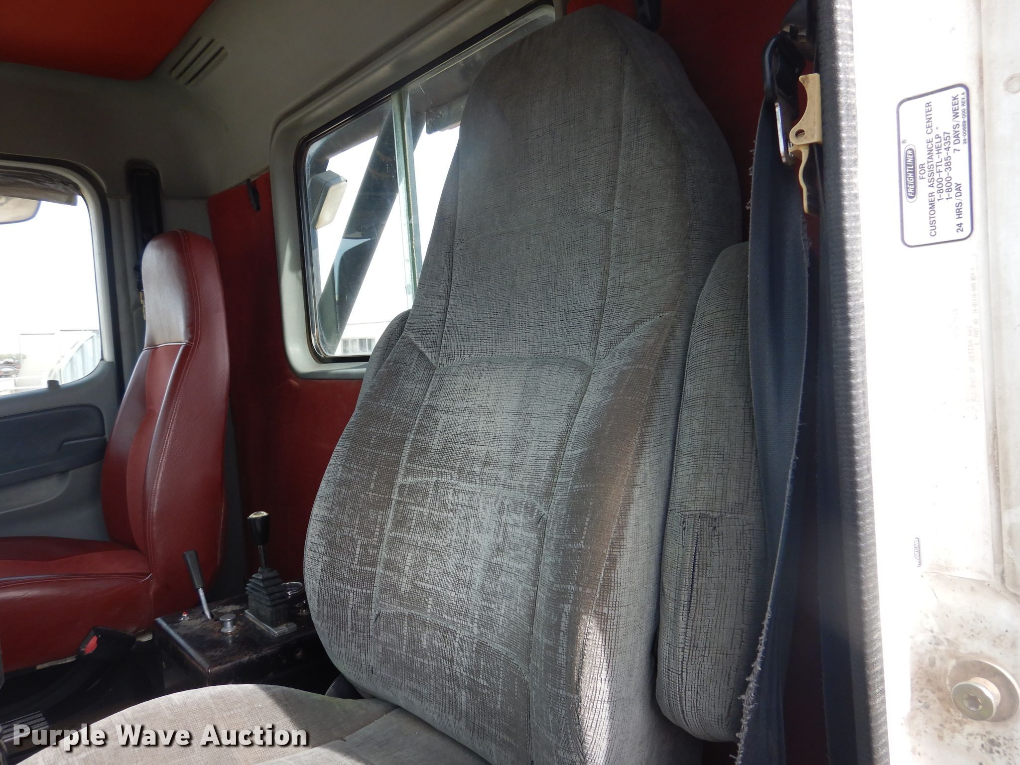 2004 Freightliner Columbia winch truck. 184,891 miles on odometer, Unit #: 65. Engine Mercedes Benz MBE 4000, Displacement: 12.8L, Cylinders: 6, Fuel type: Diesel. Transmission Manual, Speed: 13. Chassis Axles: Tandem, Differential lock: Inter-axle, Suspension: Air, Brakes: Air, PTO. Interior AC, Heat, Power windows, Power locks. Operational Winch Capacity: 80,000 lbs, Fifth wheel type: Air operated, Sliding, Rolling tailboard. Tires Size: 11R24.5. Kansas title. 1FUJA6CV84LM96920. Passmore Bros., Inc. - Open inspection Dec. 3. 828 E 11th St. Hugoton, KS 67951
