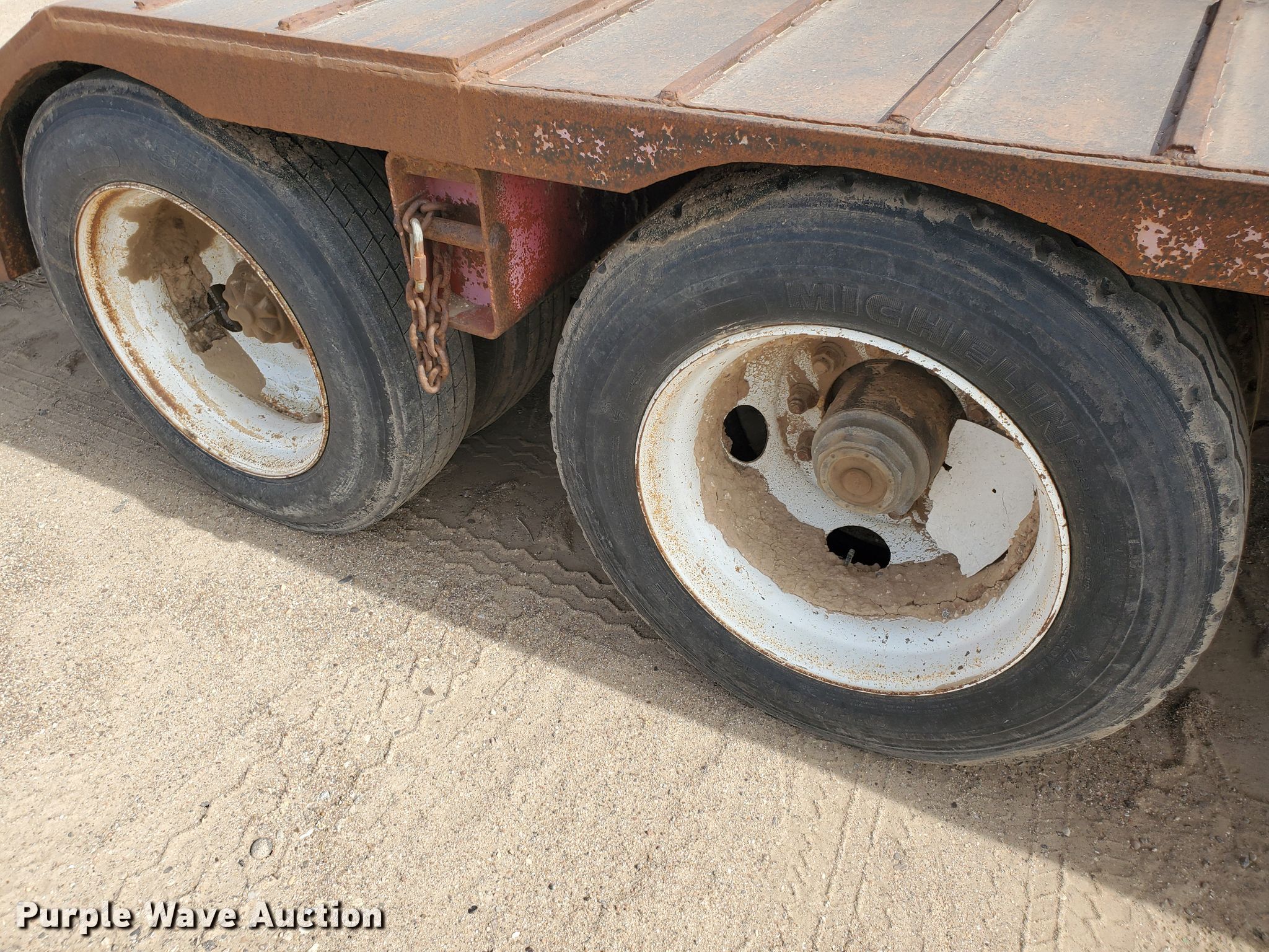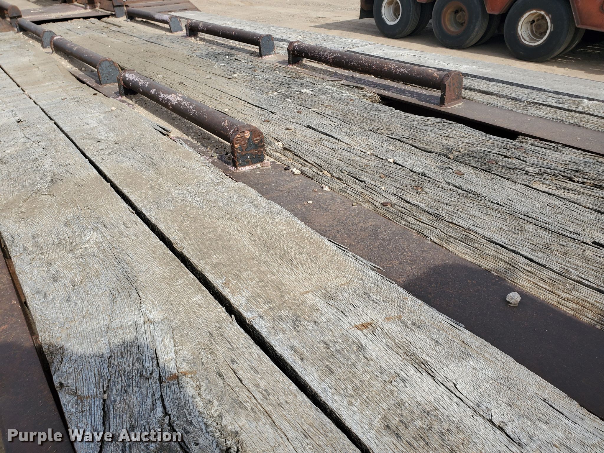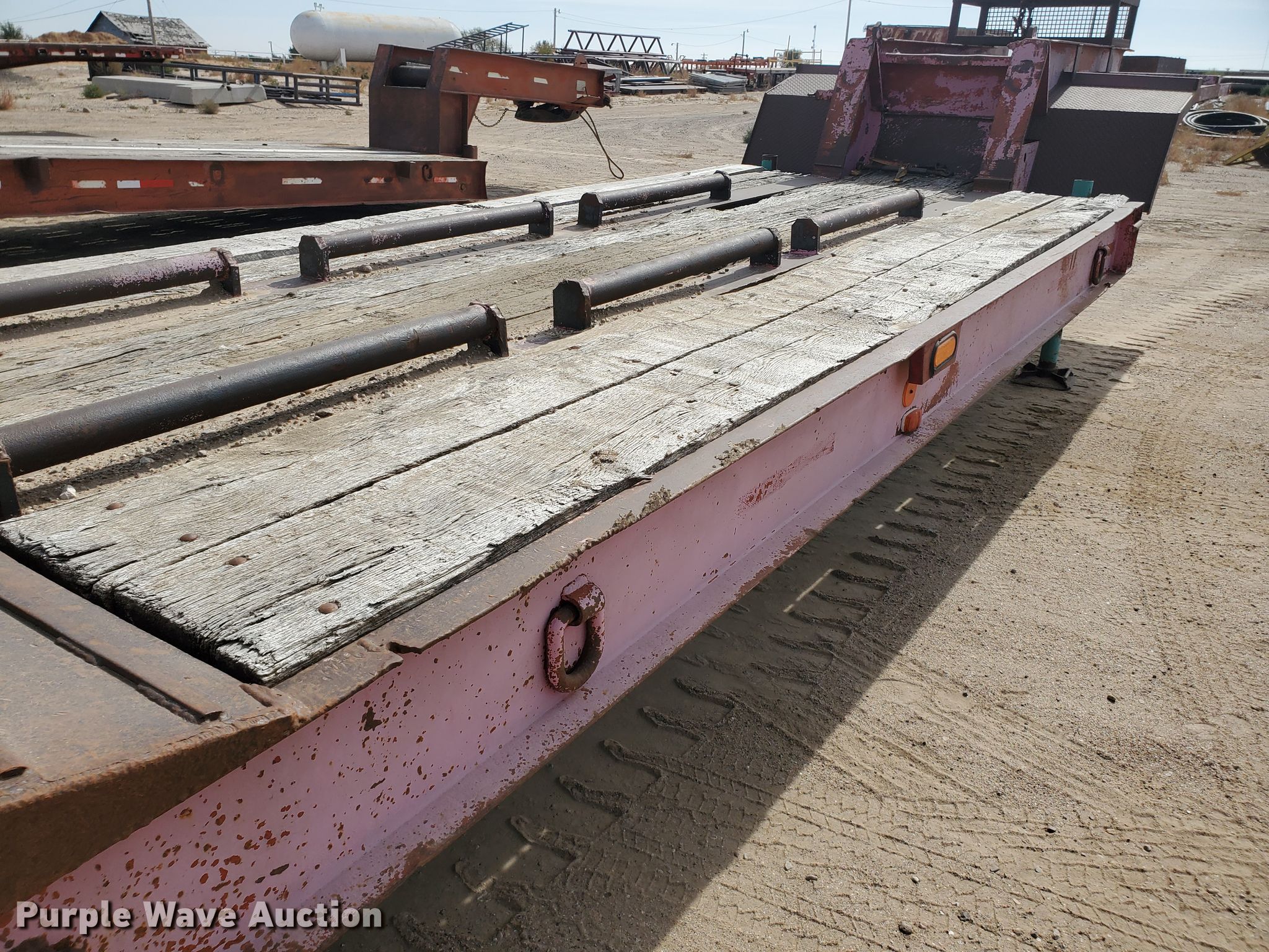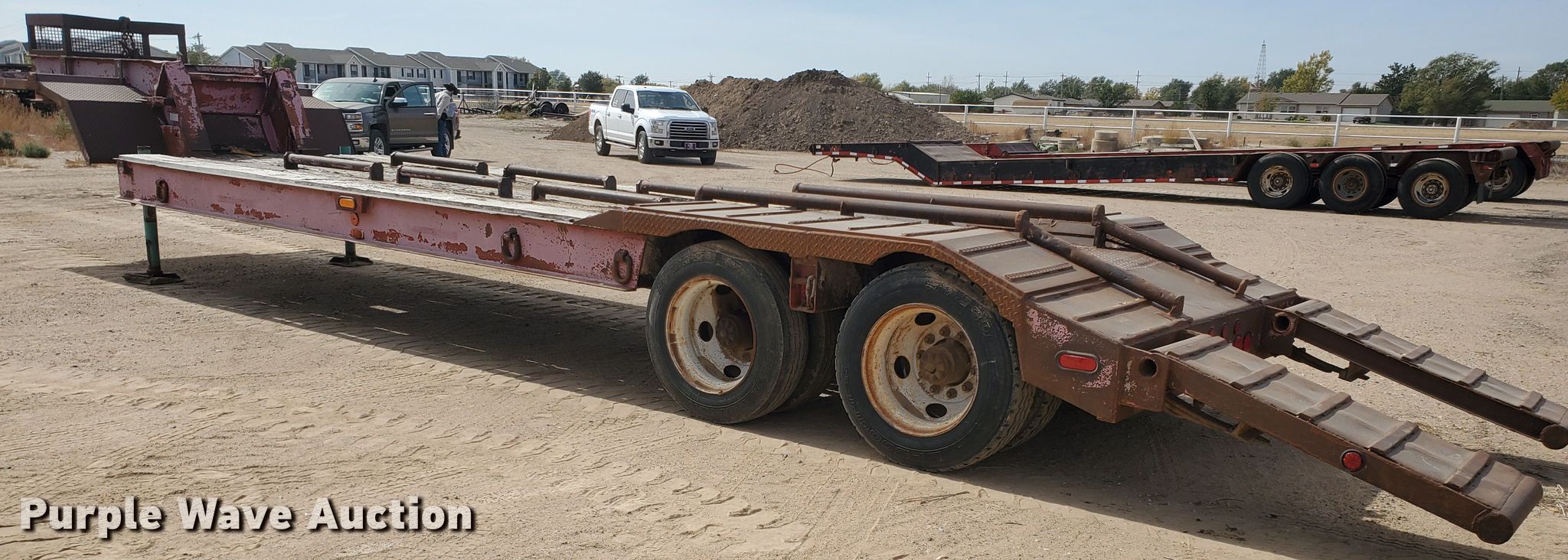 Purple Wave is selling a used Equip. Trailer in Kansas. This item is a 1976 Fruehauf C25L-J2 equipment trailer with the following: 33'L x 96"W overall, 21'L deck, 36" floor height, 4' tail length, 4'L ramps, Steel and wood deck, Dual leg landing gear, Spring suspension, Air brakes, Tandem axle, Steel wheels, 255/70R22.5 tires, GVWR 42,760 lbs, GAWR 15,920 lbs, Unit# 101