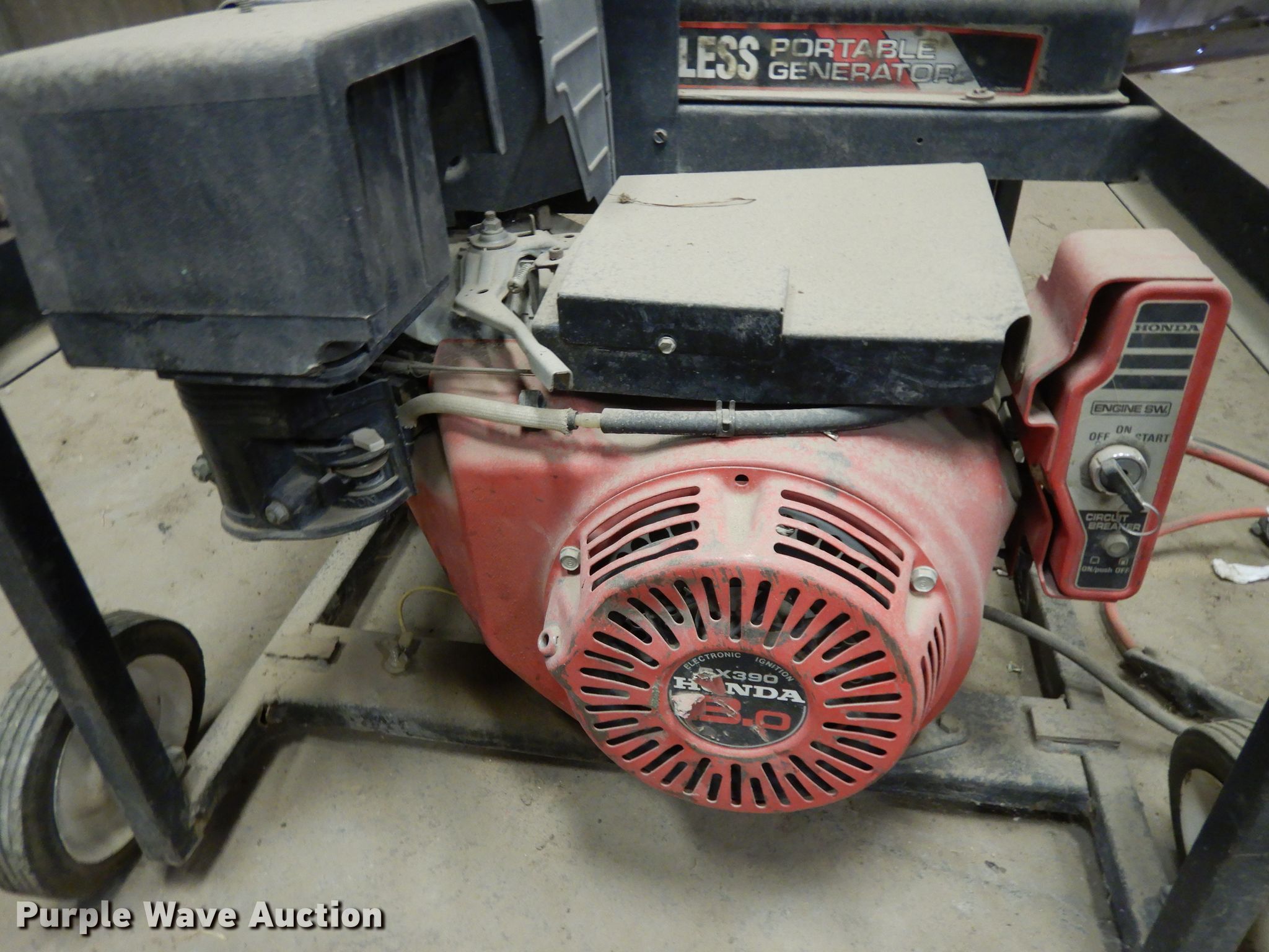 Purple Wave is selling a used Generator Set in Kansas. This item is a Campbell Hausfeld generator with the following: Honda GX390, Cylinders: 1, Fuel type: Gas
