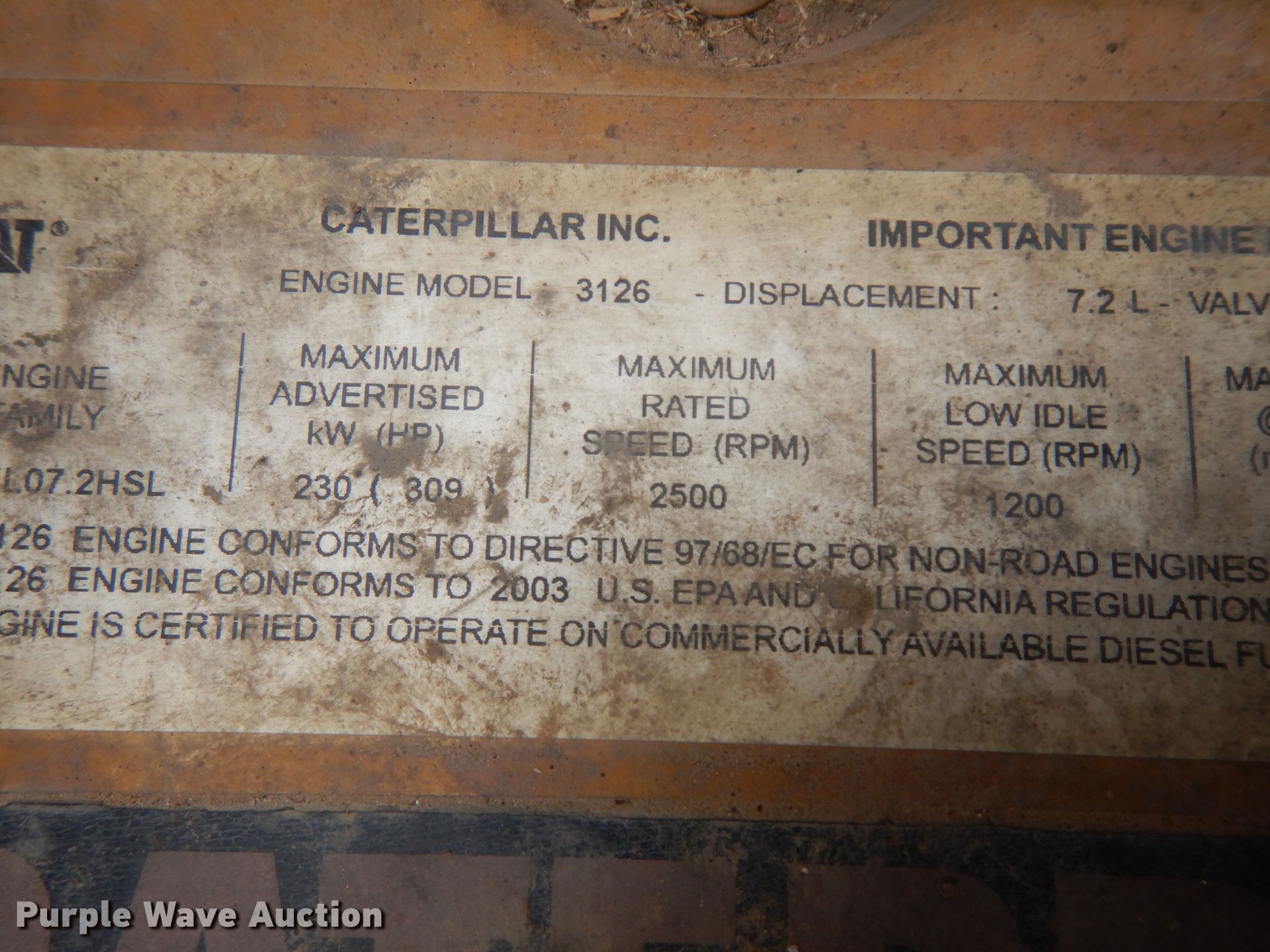 2003 Caterpillar 950G Series II wheel loader. 8,524 hours on meter, Serial: CAT0950GLBAA00281. Engine Caterpillar 3126, Serial: BMA09372, Displacement: 7.2L, Cylinders: 6, Fuel type: Diesel. Transmission Powershift, 4F - 4R. Operators station Enclosed cab, AC, Heat, Bucket controls: Two-lever. Operational Quick coupler: Hydraulic, Bucket Make: Caterpillar, Width: 114", Self- leveling bucket, Cutting edge: Bolt-on, Forks Length: 6'. Tires Size: 23.5R25. Passmore Bros., Inc. - Open inspection Dec. 3. 828 E 11th St. Hugoton, KS 67951
