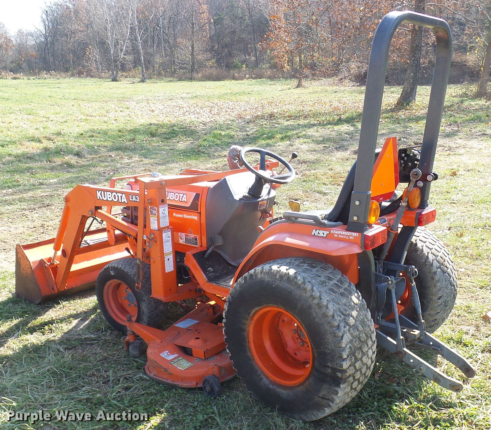 Kubota B2400 MFWD tractor. 2,375 hours on meter. Engine Kubota , Cylinders: 3, Fuel type: Diesel. Transmission Hydrostatic. Operational PTO: 540, Three point, Hydraulic remote sets Rear: 1, Loader Kubota LA351, Controls: Joystick, Bucket Width: 50", Kubota RC60-24B mower deck. Tires Front: 23x8.50x12, Rear: 33x12.5x15. 5172 Co Rd 456. Tebbetts, MO 65080