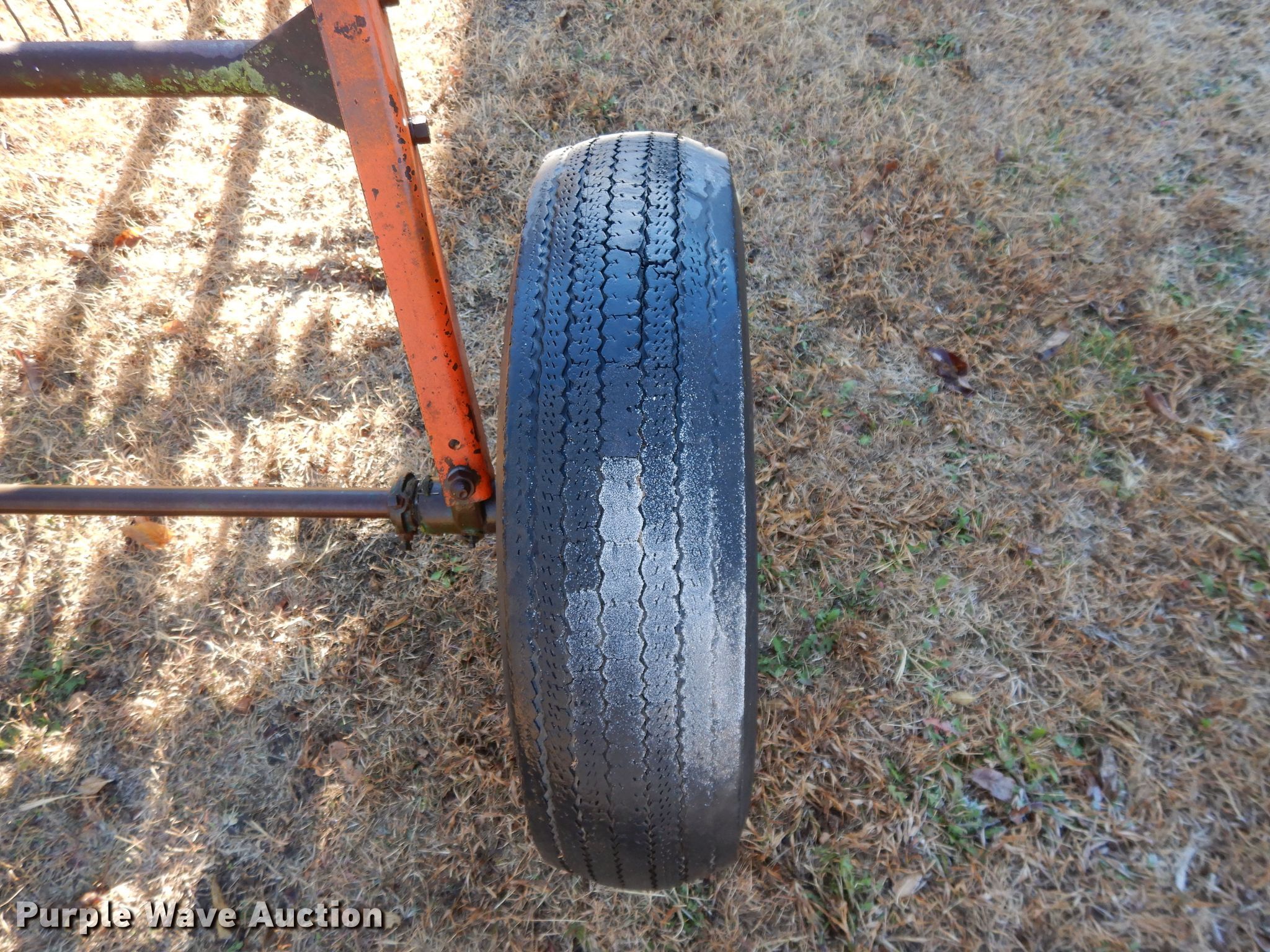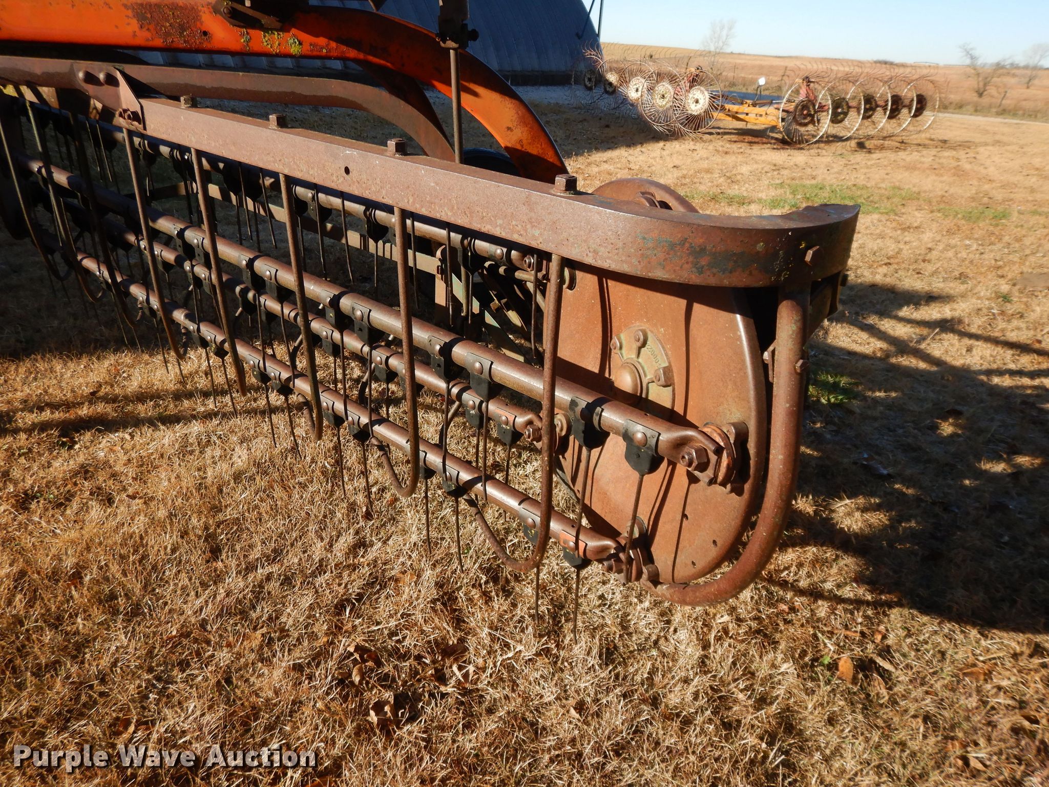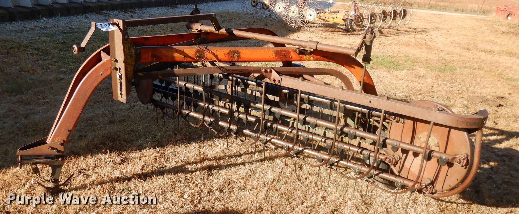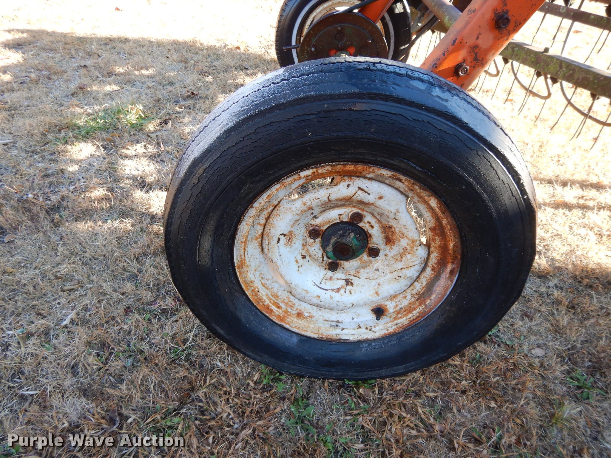Purple Wave is selling a used Hay Rake in Kansas. This item is a New Idea 402 hay rake with the following: 8'W, Ground driven, 78-15 tires, Serial 141313