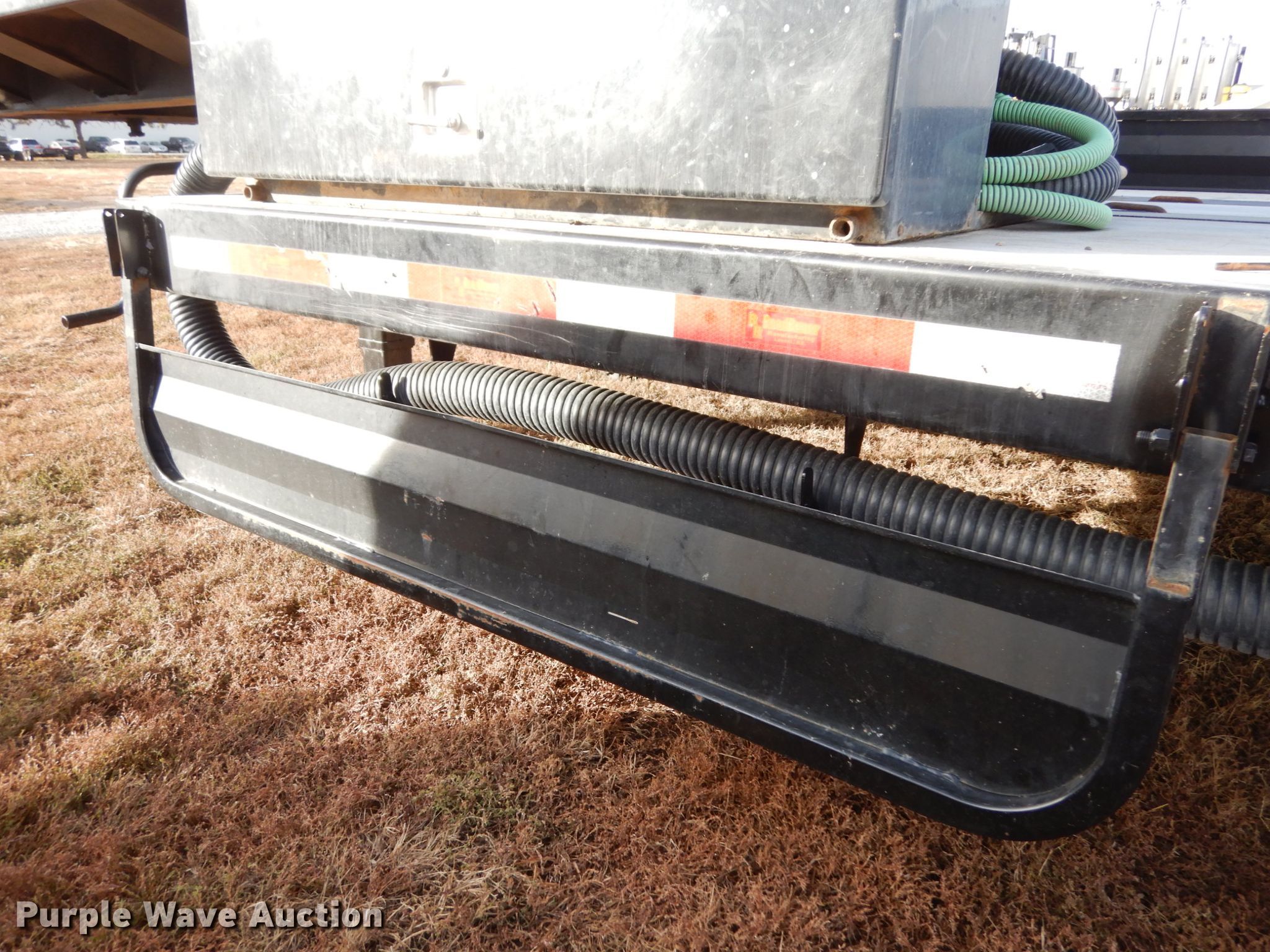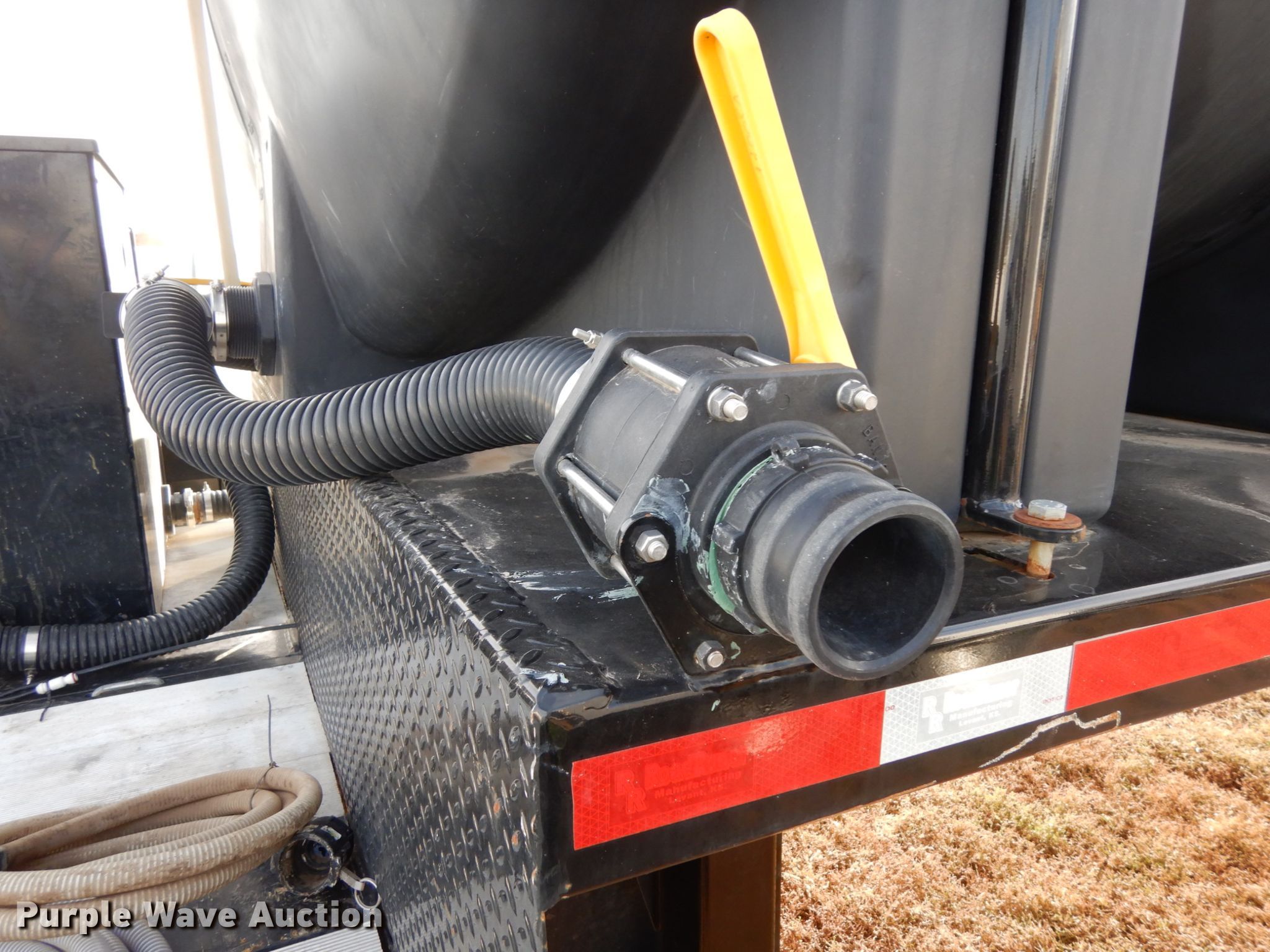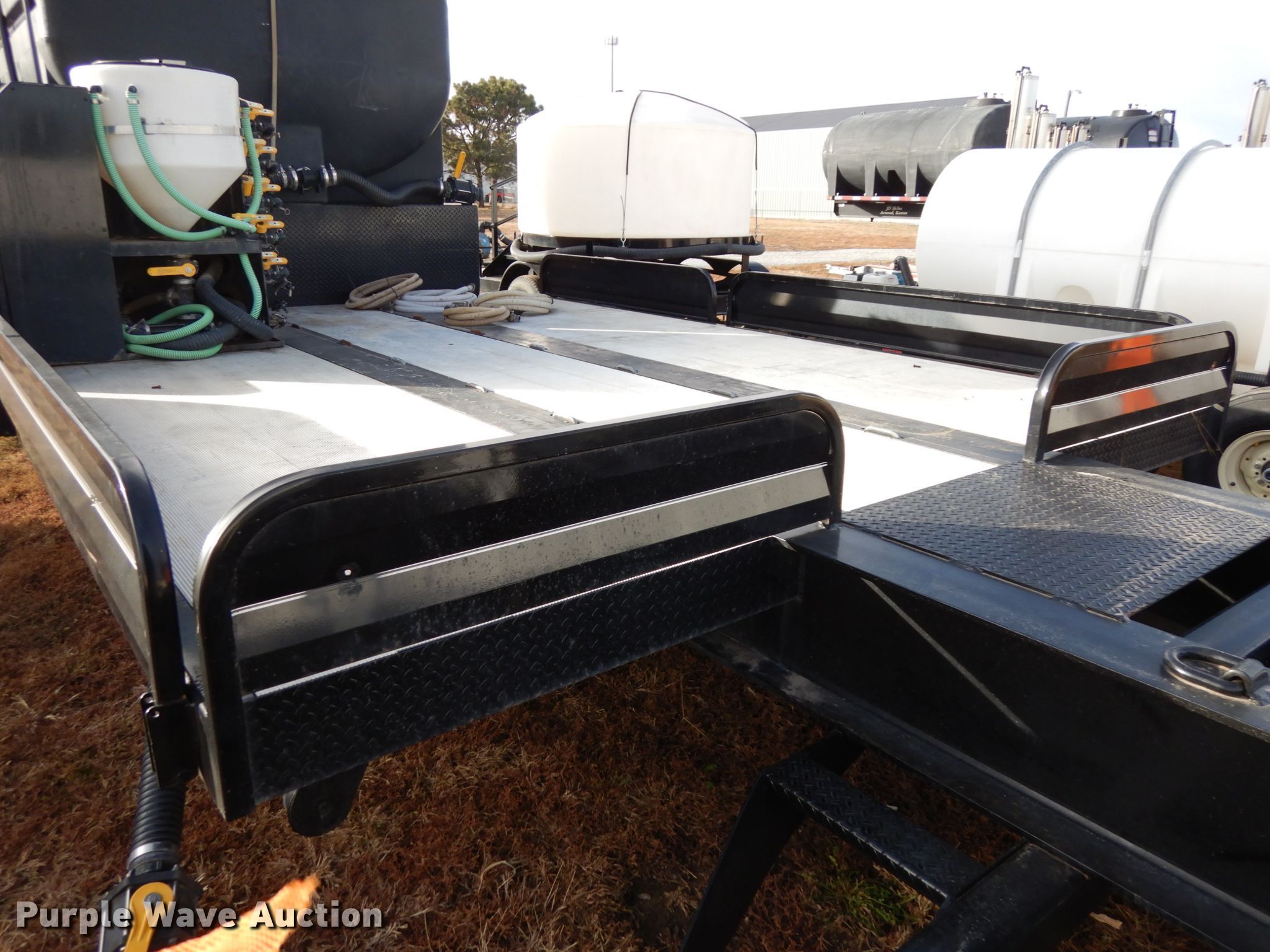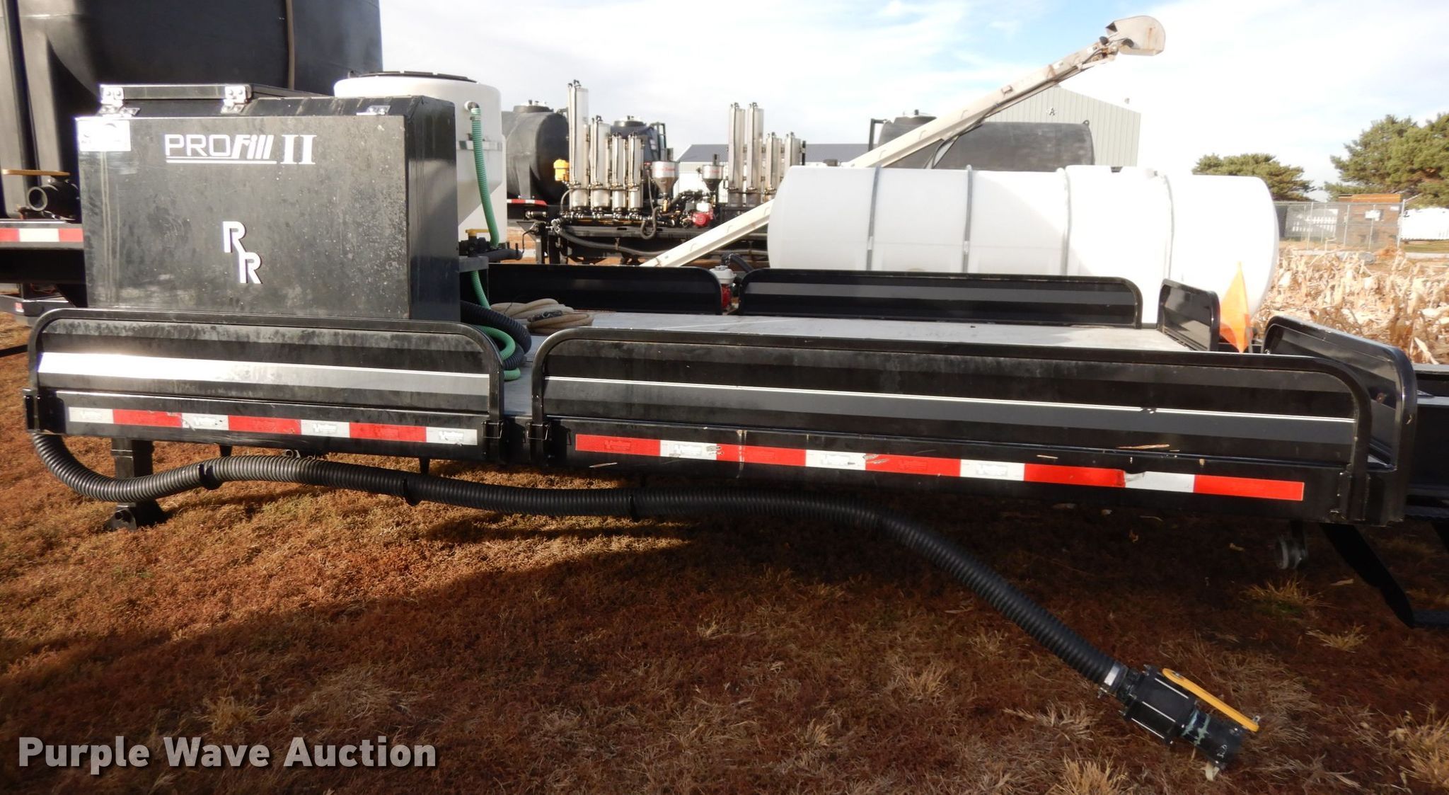 Purple Wave is selling a used Ag Equip. or Header Trailer in Nebraska. This item is a 2018 Road Runner 4000 drop deck sprayer trailer with the following: 53'L overall, 12'L top deck, 14.5'L x 130"W main deck, Aluminum deck, Fold down sides, ProFill II station, Honda GX390 gas engine, Electric start, Pump, 30 gallon inductor cone poly tank, Bypass, suction, and rinse valves, Digital meters, Additional hose, 26'L rear deck, 142"W sprayer transfer section, 16"W outriggers, 22"W spring mounted ramps, 3,200 gallon poly fill tank, Dual leg landing gear, Air suspension, Air brakes, Triple axle, Steel wheels, 255/70R22.5 tires, GVWR 80,000 lbs, GAWR 20,000 lbs