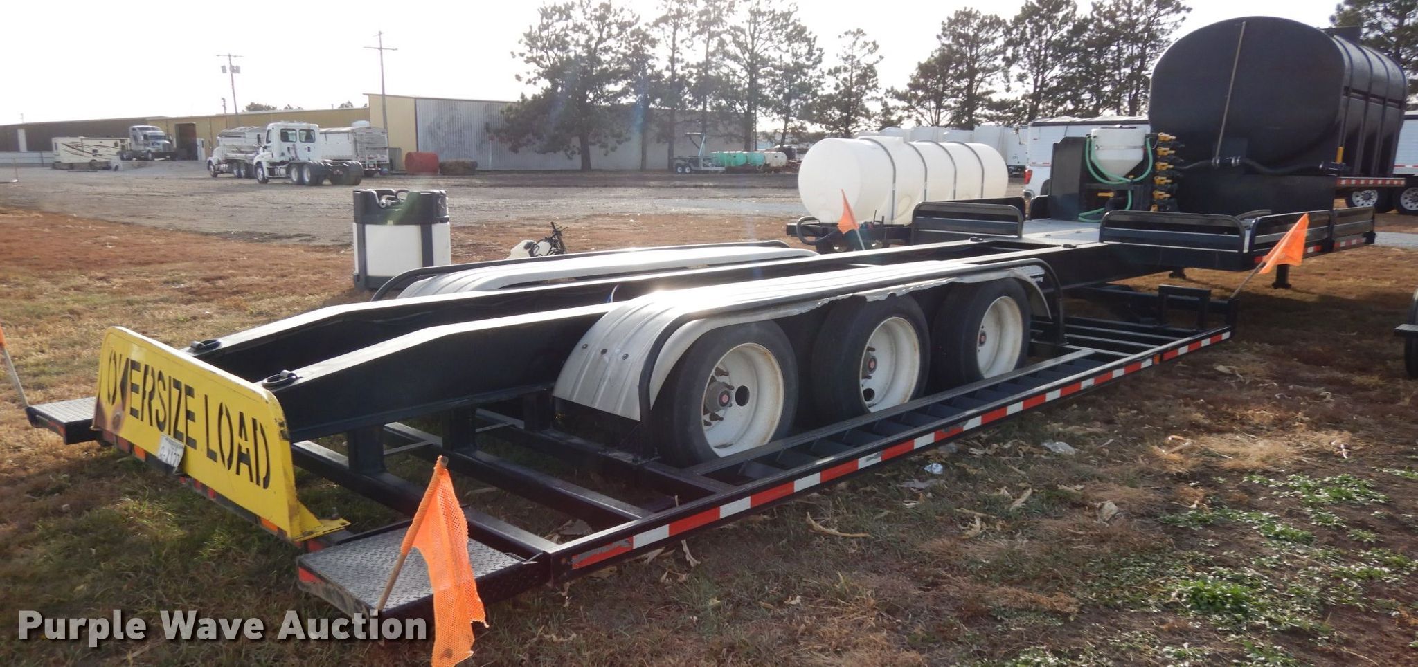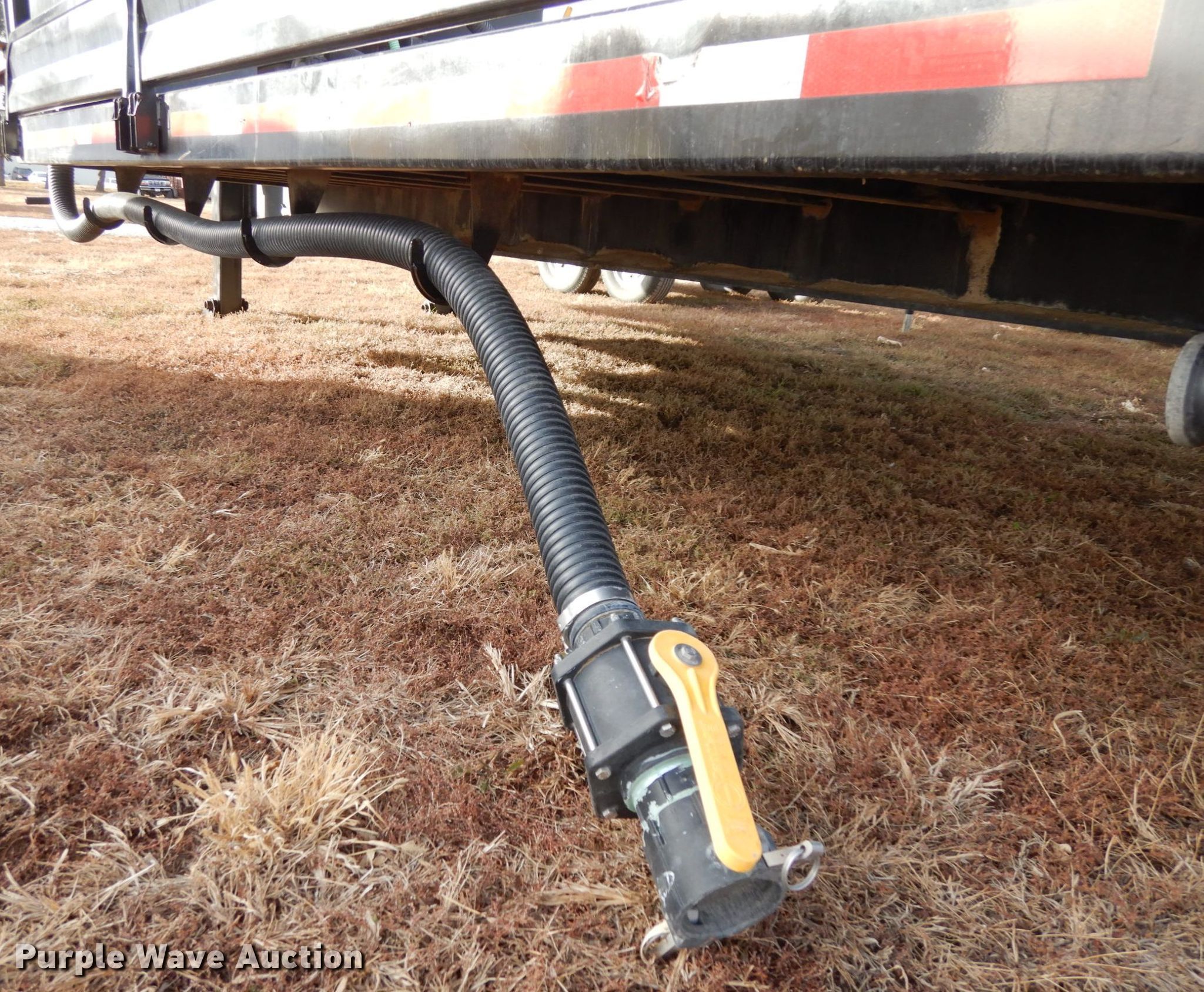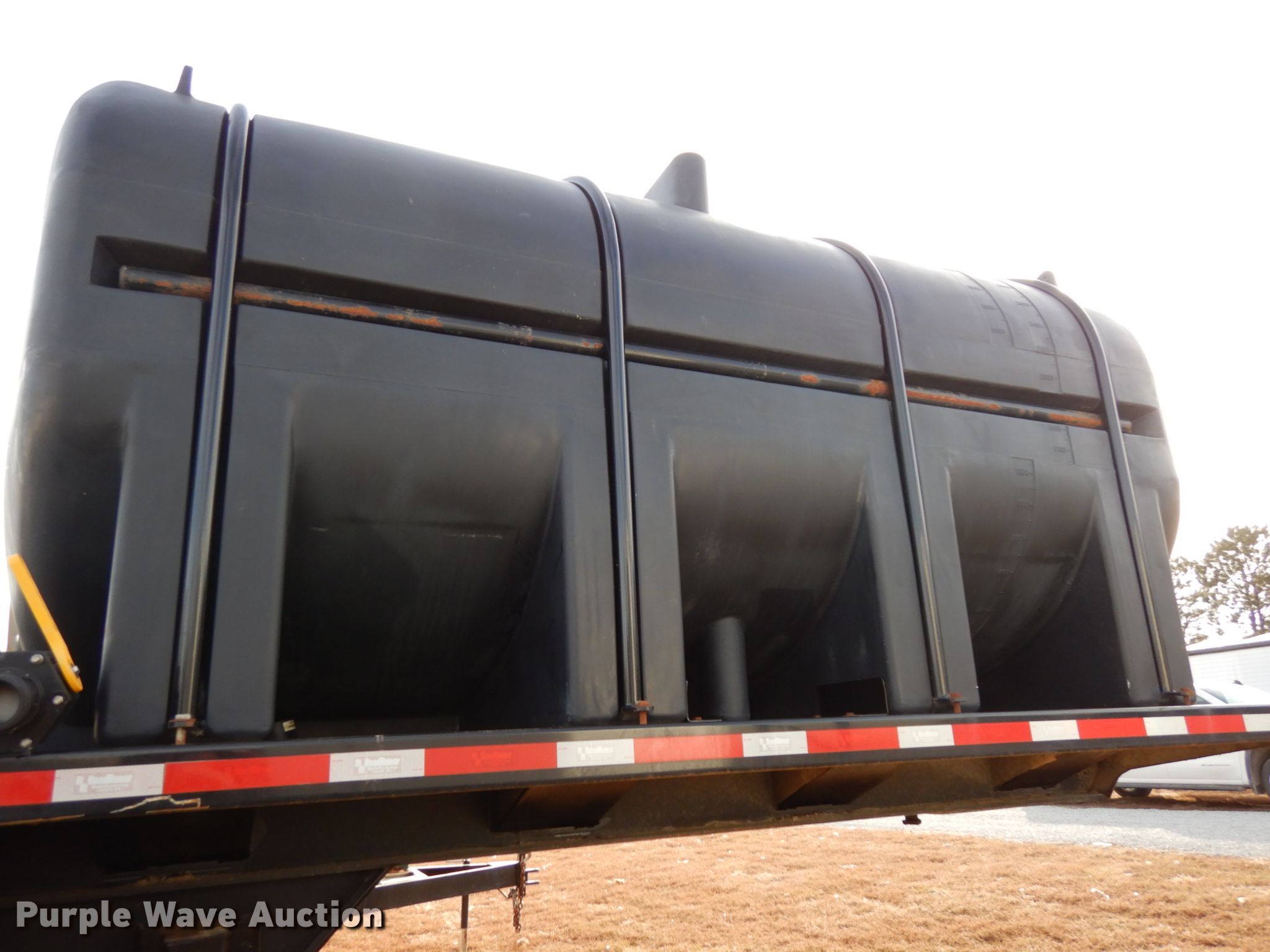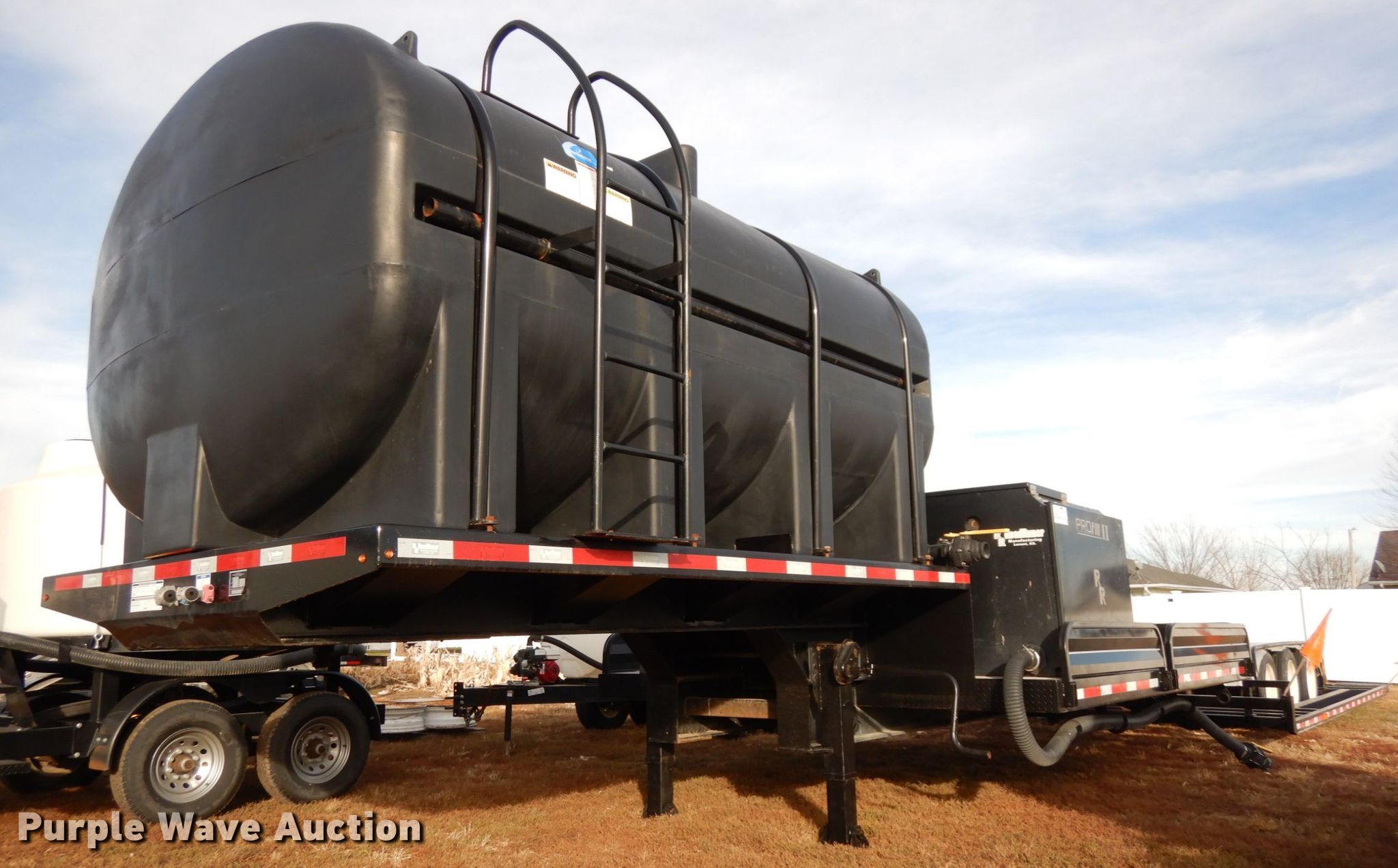 Purple Wave is selling a used Ag Equip. or Header Trailer in Nebraska. This item is a 2018 Road Runner 4000 drop deck sprayer trailer with the following: 53'L overall, 12'L top deck, 14.5'L x 130"W main deck, Aluminum deck, Fold down sides, ProFill II station, Honda GX390 gas engine, Electric start, Pump, 30 gallon inductor cone poly tank, Bypass, suction, and rinse valves, Digital meters, Additional hose, 26'L rear deck, 142"W sprayer transfer section, 16"W outriggers, 22"W spring mounted ramps, 3,200 gallon poly fill tank, Dual leg landing gear, Air suspension, Air brakes, Triple axle, Steel wheels, 255/70R22.5 tires, GVWR 80,000 lbs, GAWR 20,000 lbs