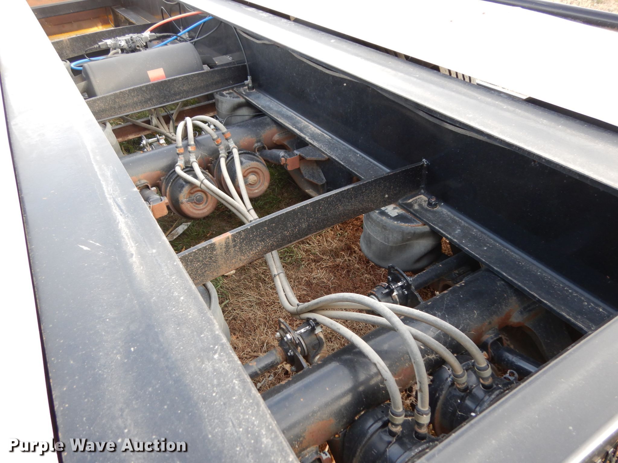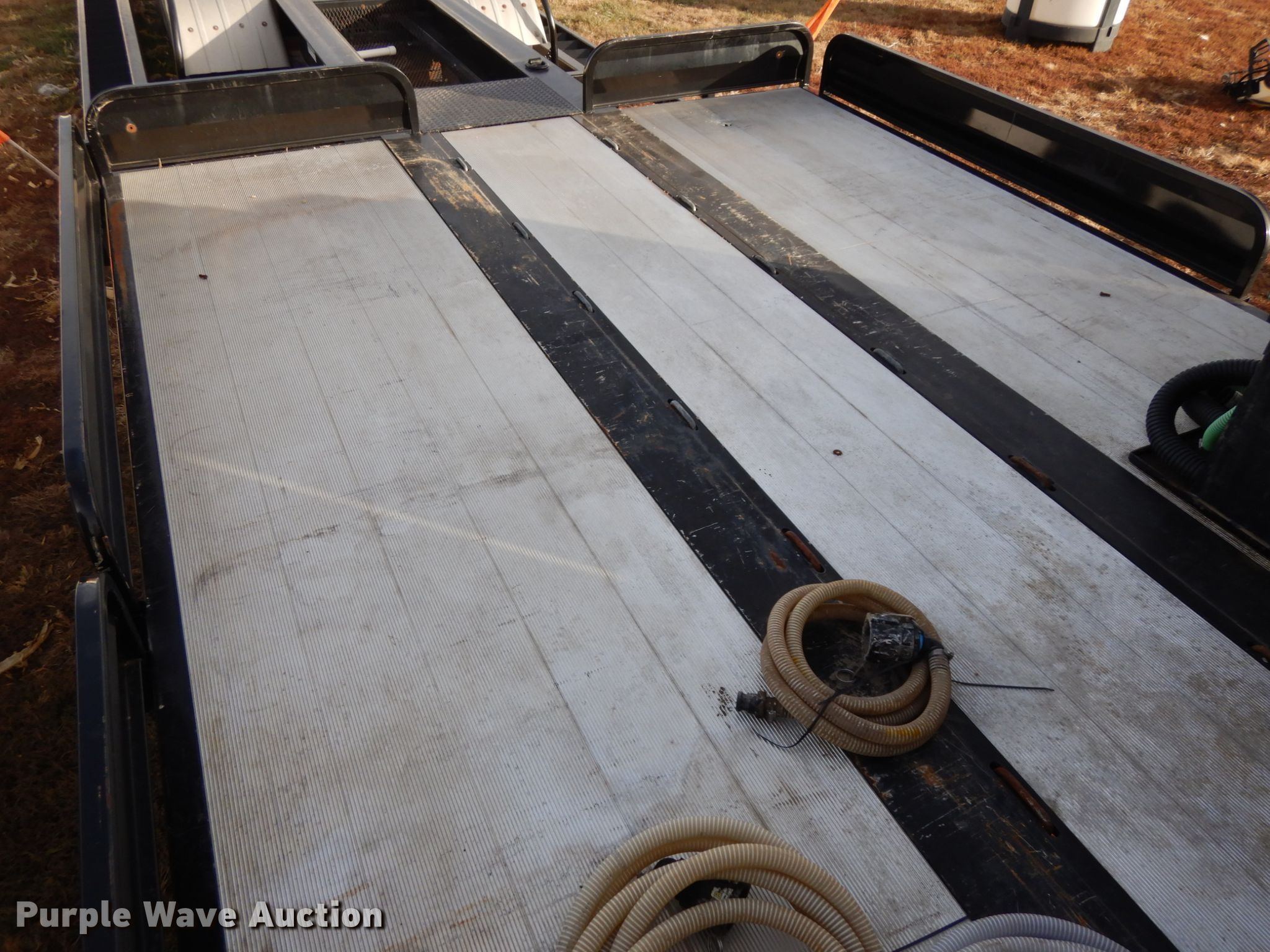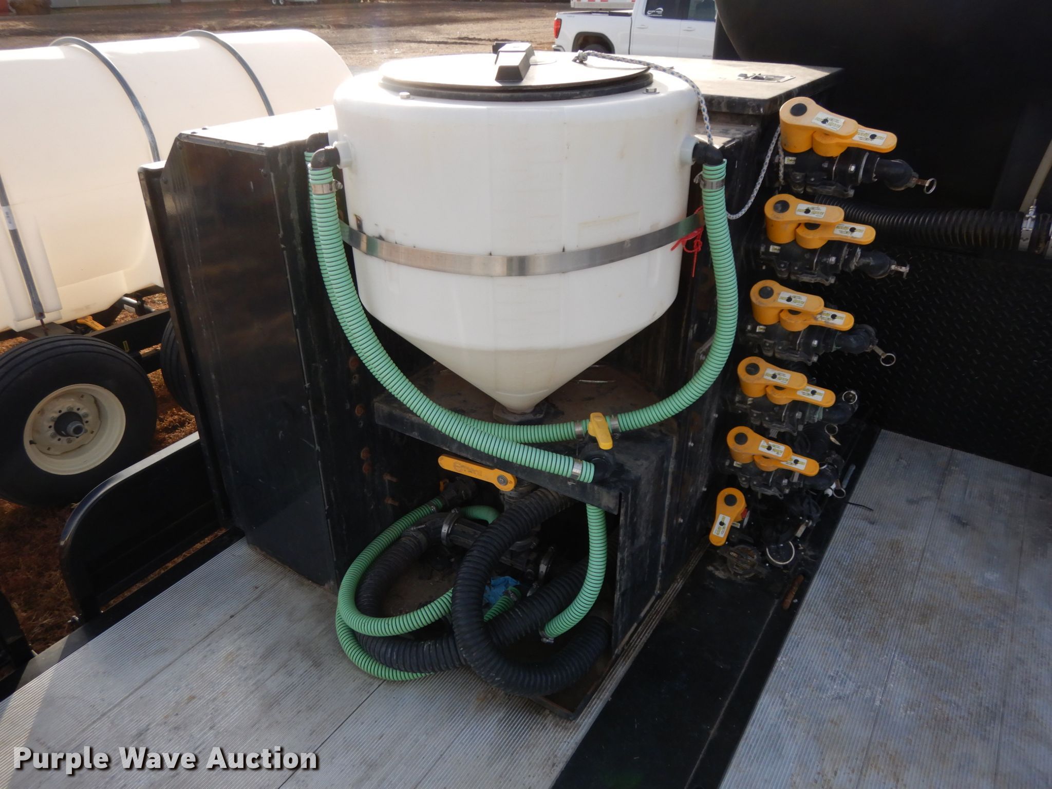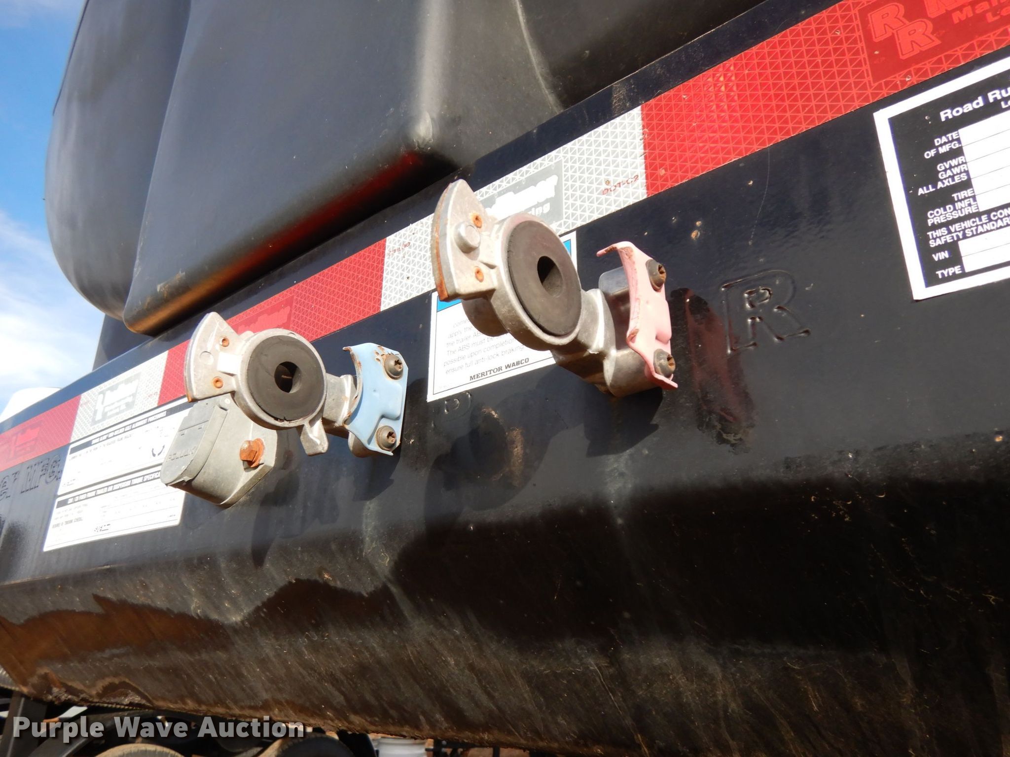 Purple Wave is selling a used Ag Equip. or Header Trailer in Nebraska. This item is a 2018 Road Runner 4000 drop deck sprayer trailer with the following: 53'L overall, 12'L top deck, 14.5'L x 130"W main deck, Aluminum deck, Fold down sides, ProFill II station, Honda GX390 gas engine, Electric start, Pump, 30 gallon inductor cone poly tank, Bypass, suction, and rinse valves, Digital meters, Additional hose, 26'L rear deck, 142"W sprayer transfer section, 16"W outriggers, 22"W spring mounted ramps, 3,200 gallon poly fill tank, Dual leg landing gear, Air suspension, Air brakes, Triple axle, Steel wheels, 255/70R22.5 tires, GVWR 80,000 lbs, GAWR 20,000 lbs