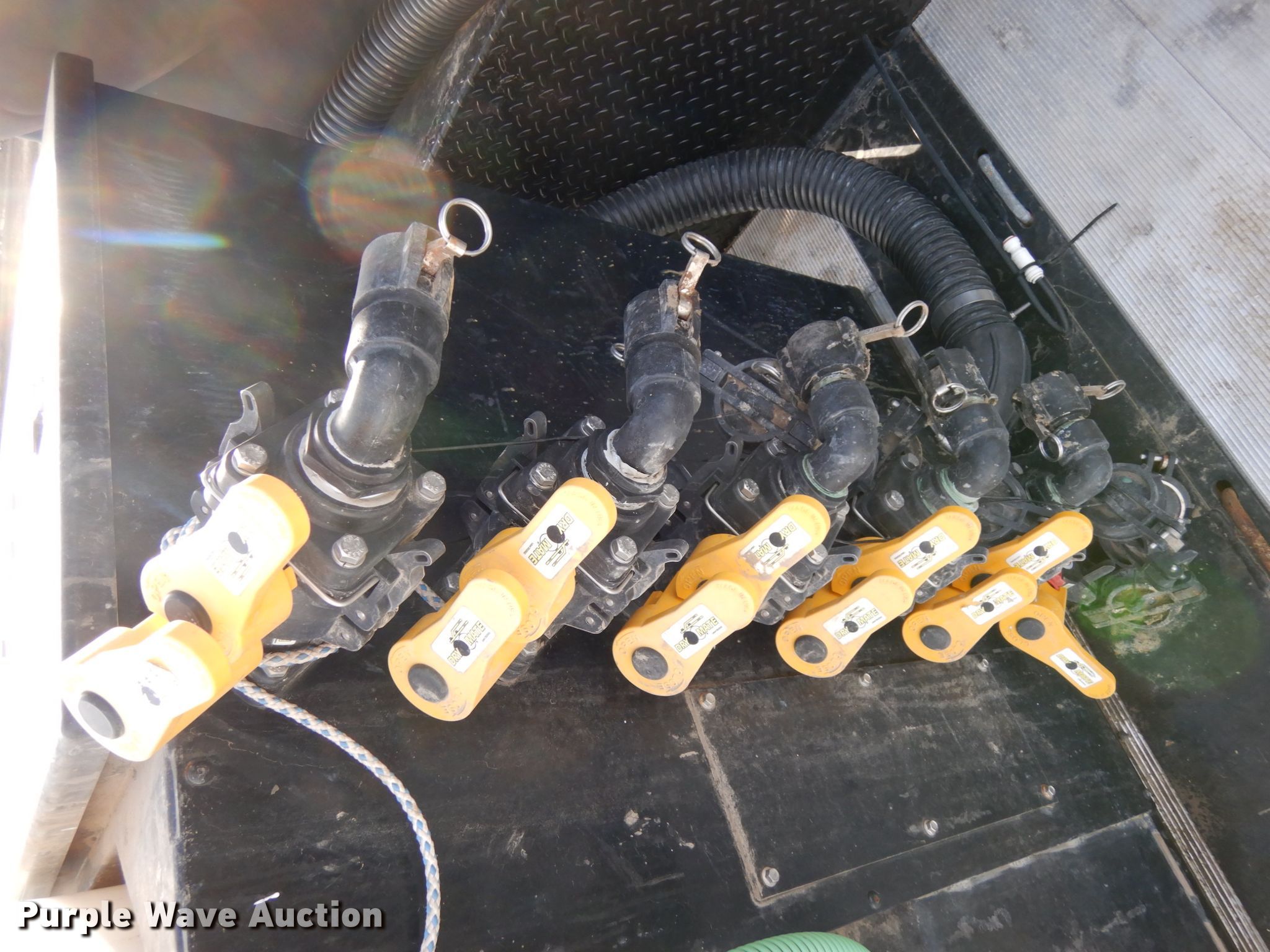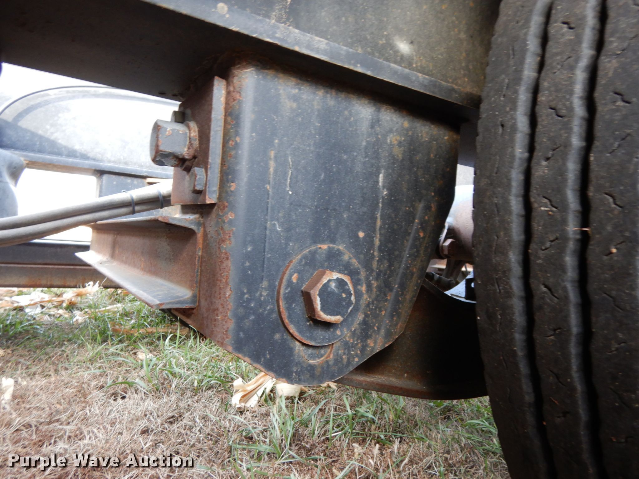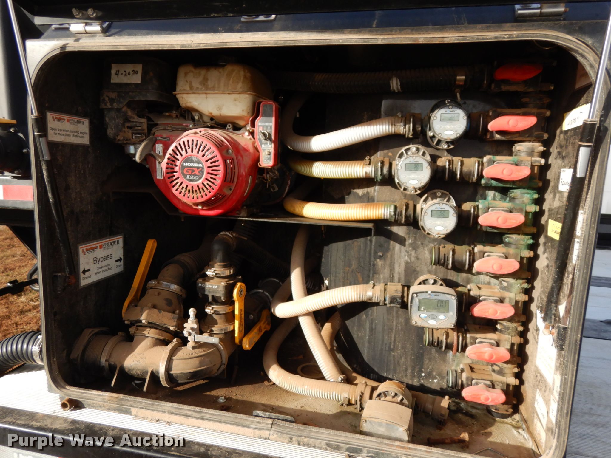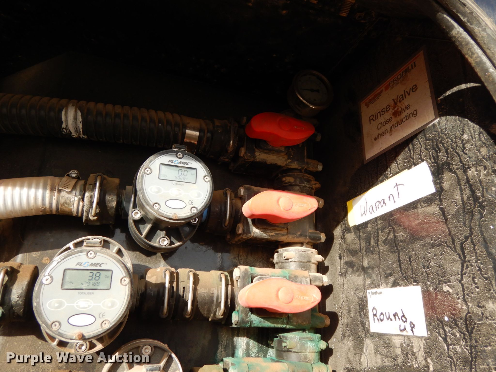 Purple Wave is selling a used Ag Equip. or Header Trailer in Nebraska. This item is a 2018 Road Runner 4000 drop deck sprayer trailer with the following: 53'L overall, 12'L top deck, 14.5'L x 130"W main deck, Aluminum deck, Fold down sides, ProFill II station, Honda GX390 gas engine, Electric start, Pump, 30 gallon inductor cone poly tank, Bypass, suction, and rinse valves, Digital meters, Additional hose, 26'L rear deck, 142"W sprayer transfer section, 16"W outriggers, 22"W spring mounted ramps, 3,200 gallon poly fill tank, Dual leg landing gear, Air suspension, Air brakes, Triple axle, Steel wheels, 255/70R22.5 tires, GVWR 80,000 lbs, GAWR 20,000 lbs