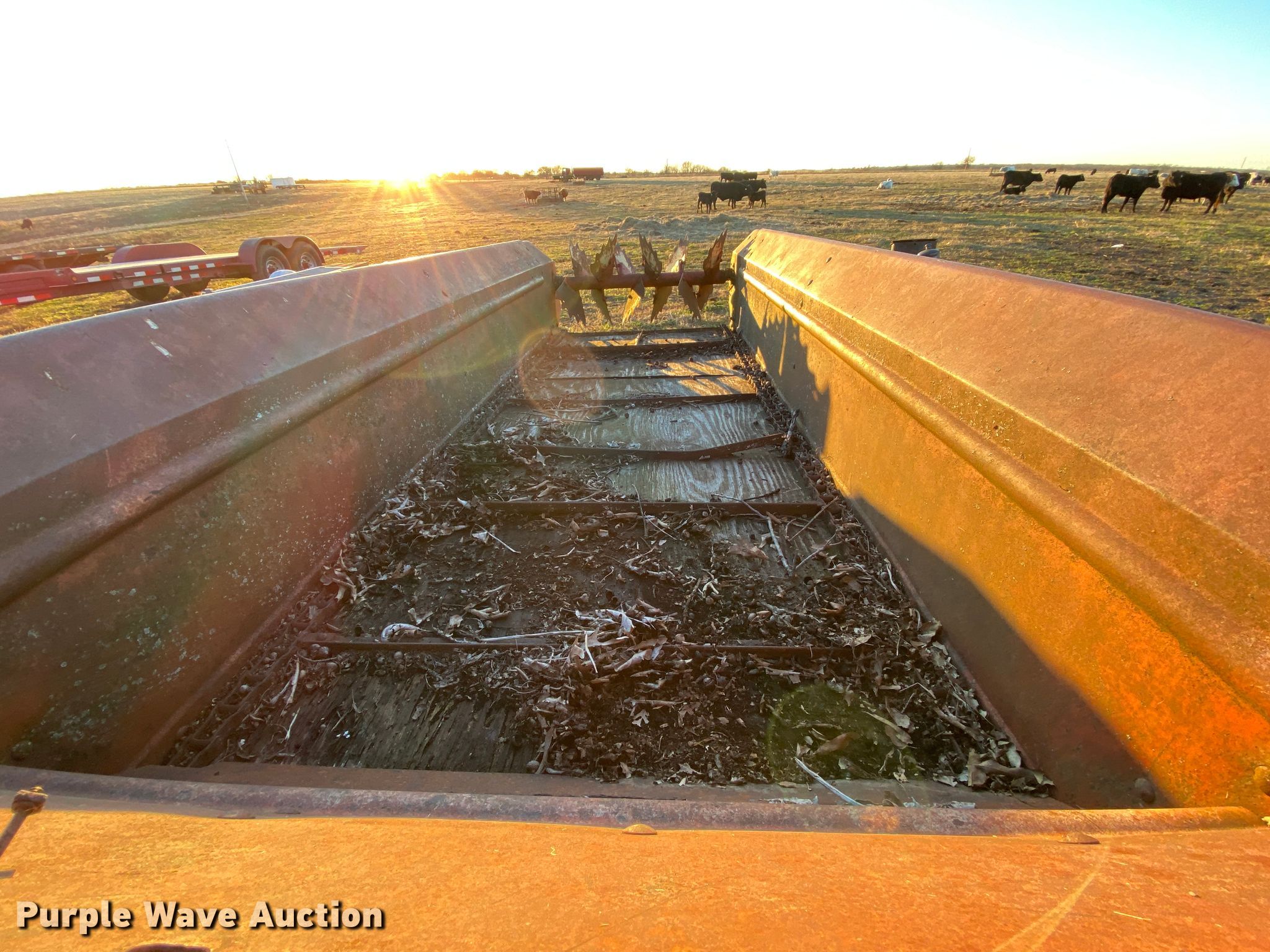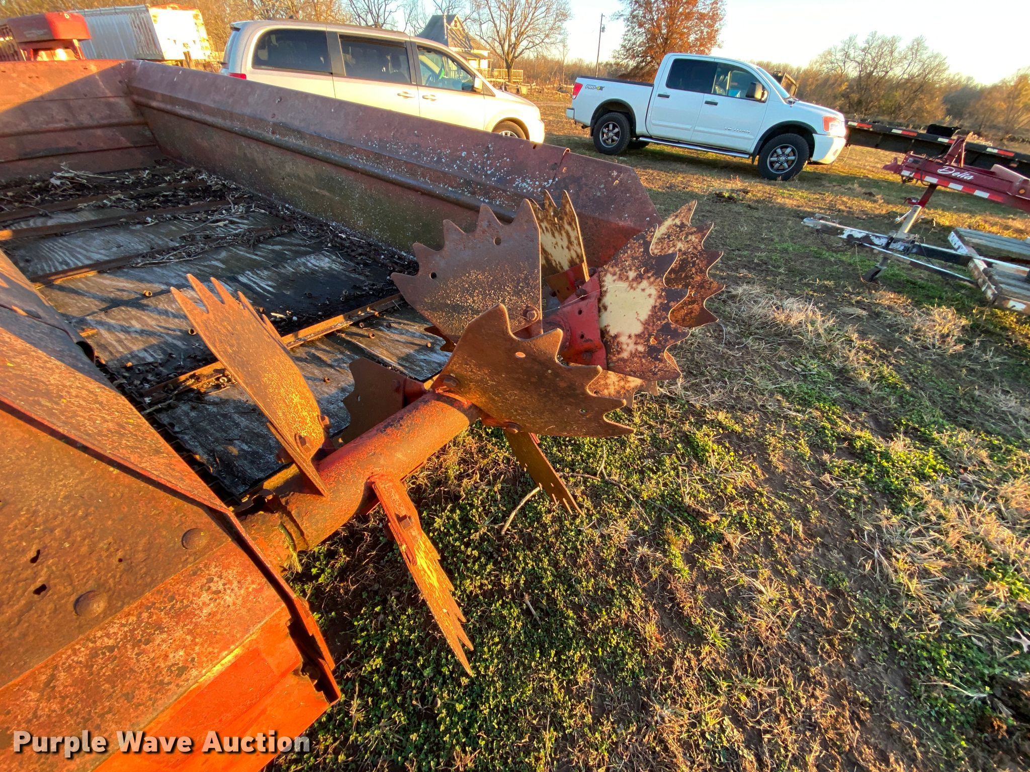 New Holland 328 manure spreader. 12'L x 4'W, 2' side height, (11) vertical rear beaters 12"W, 10" spacing, 540 PTO, Spring suspension, Single axle, 39x13 tires, Serial 474475. Walker Springs Ranch. 452 State Hwy 97. Lockwood, MO 65682