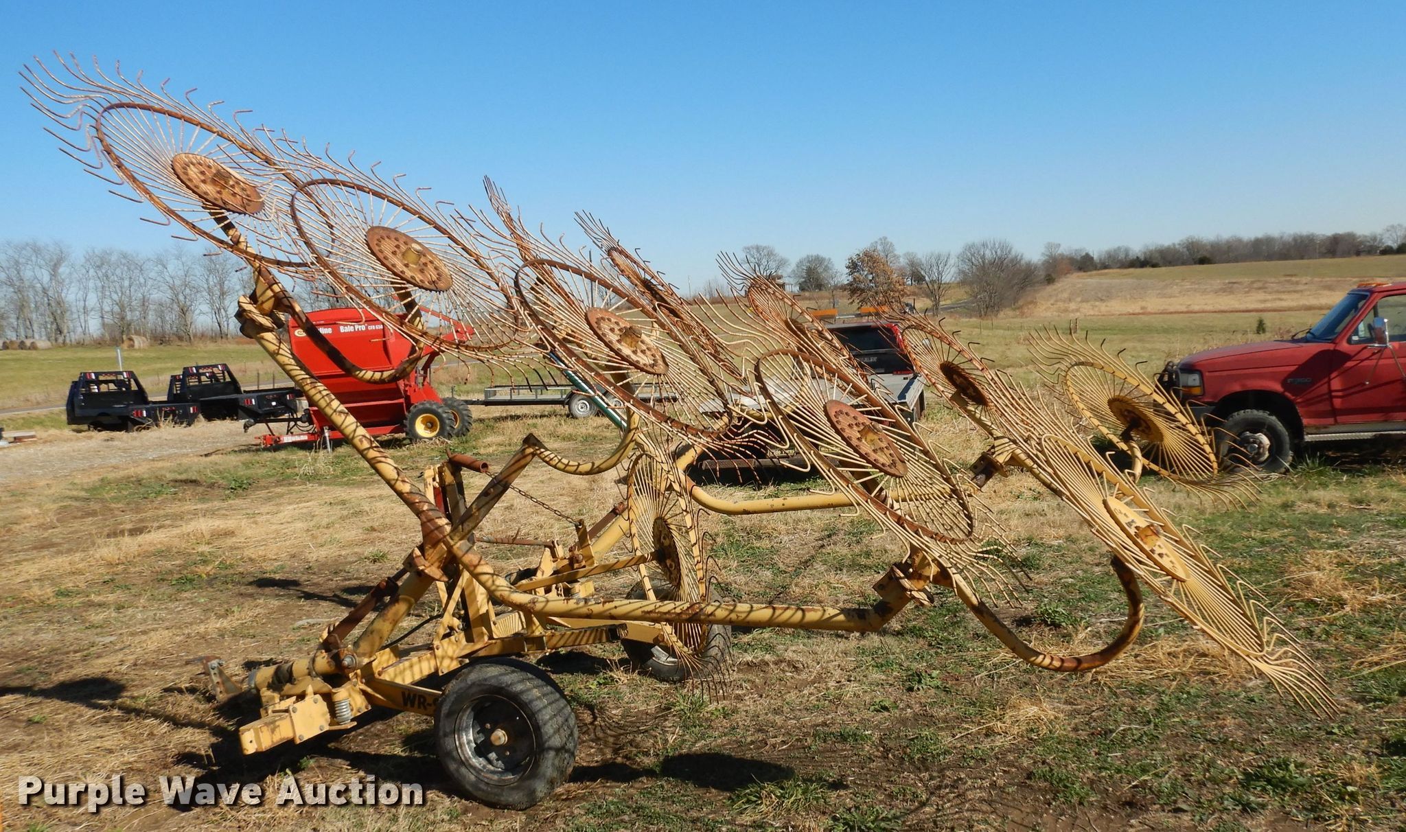 Purple Wave is selling a used Hay Rake in Kansas. This item is a Vermeer WR22 hay rake with the following: 22' working width, (11) 55.5" diameter wheels, 175/80D13 tires