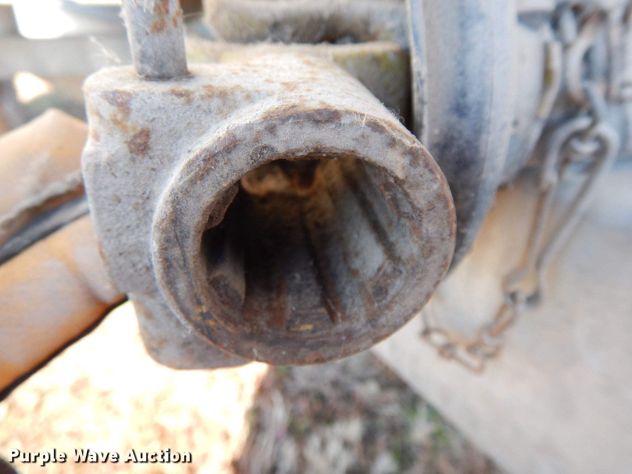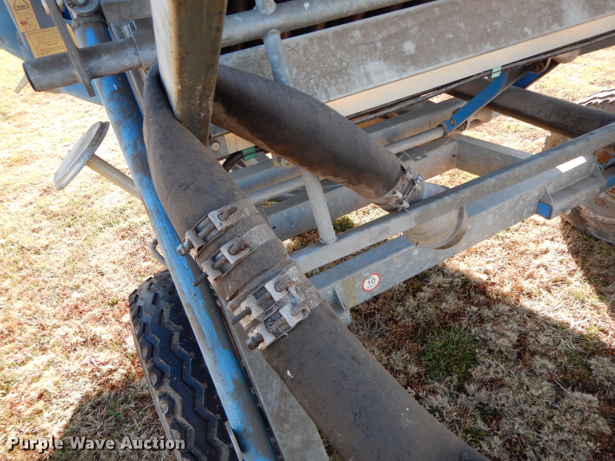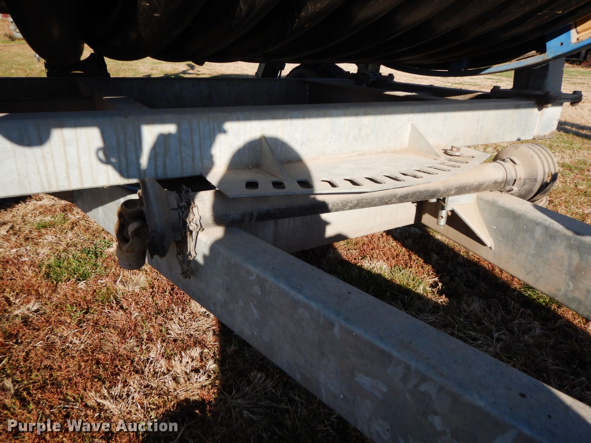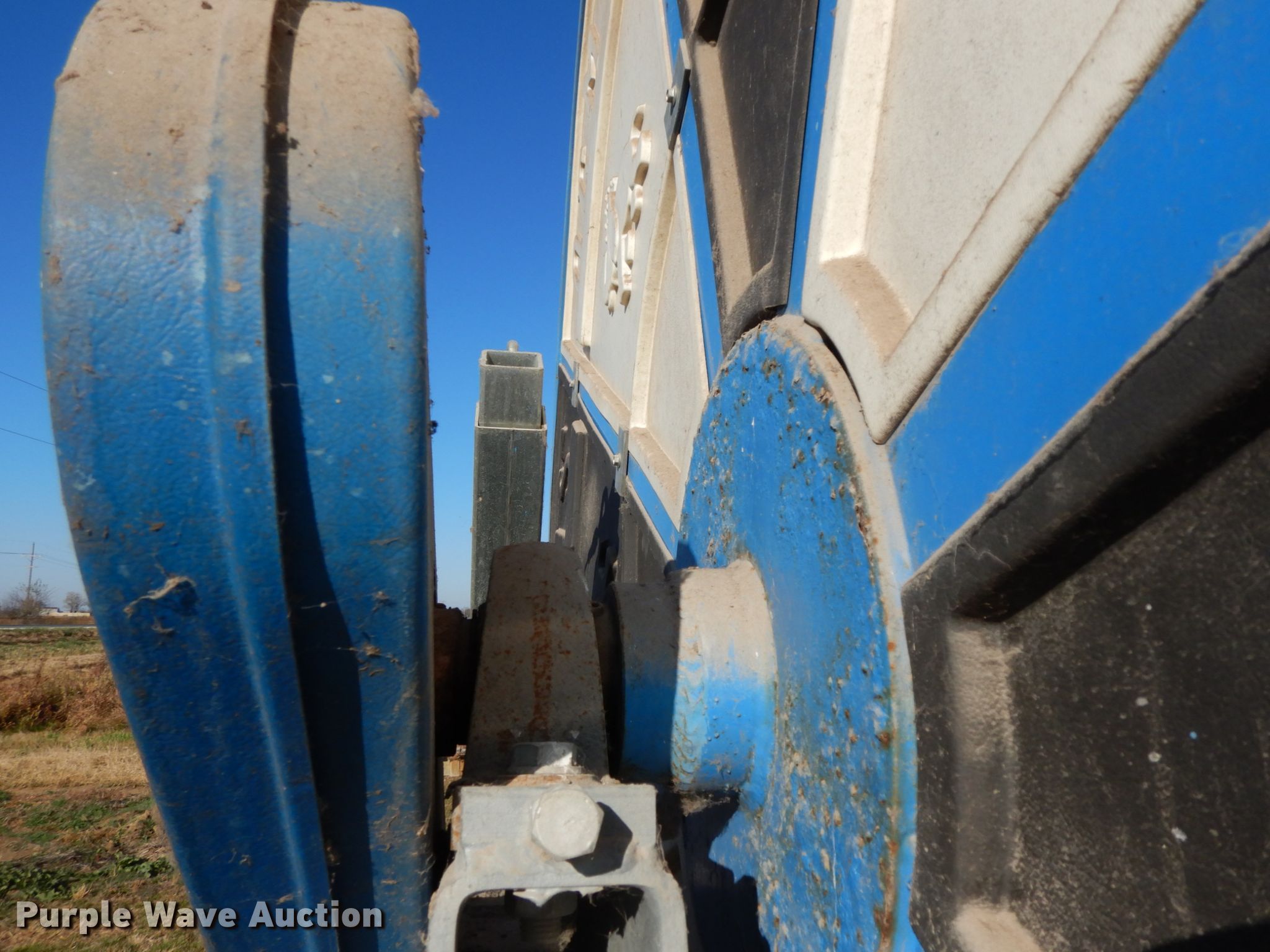 1999 Ocmis hose reel. Type: MOR4, 4" hose, Traveling gun, 540 PTO, 4.50-10 gun gauge wheels, 10.0/75-15.3 tires, 2,590 kg weight when empty, 4,880 kg weight when full, Serial E990121. 1101 W Broadway St. Brunswick, MO 65236