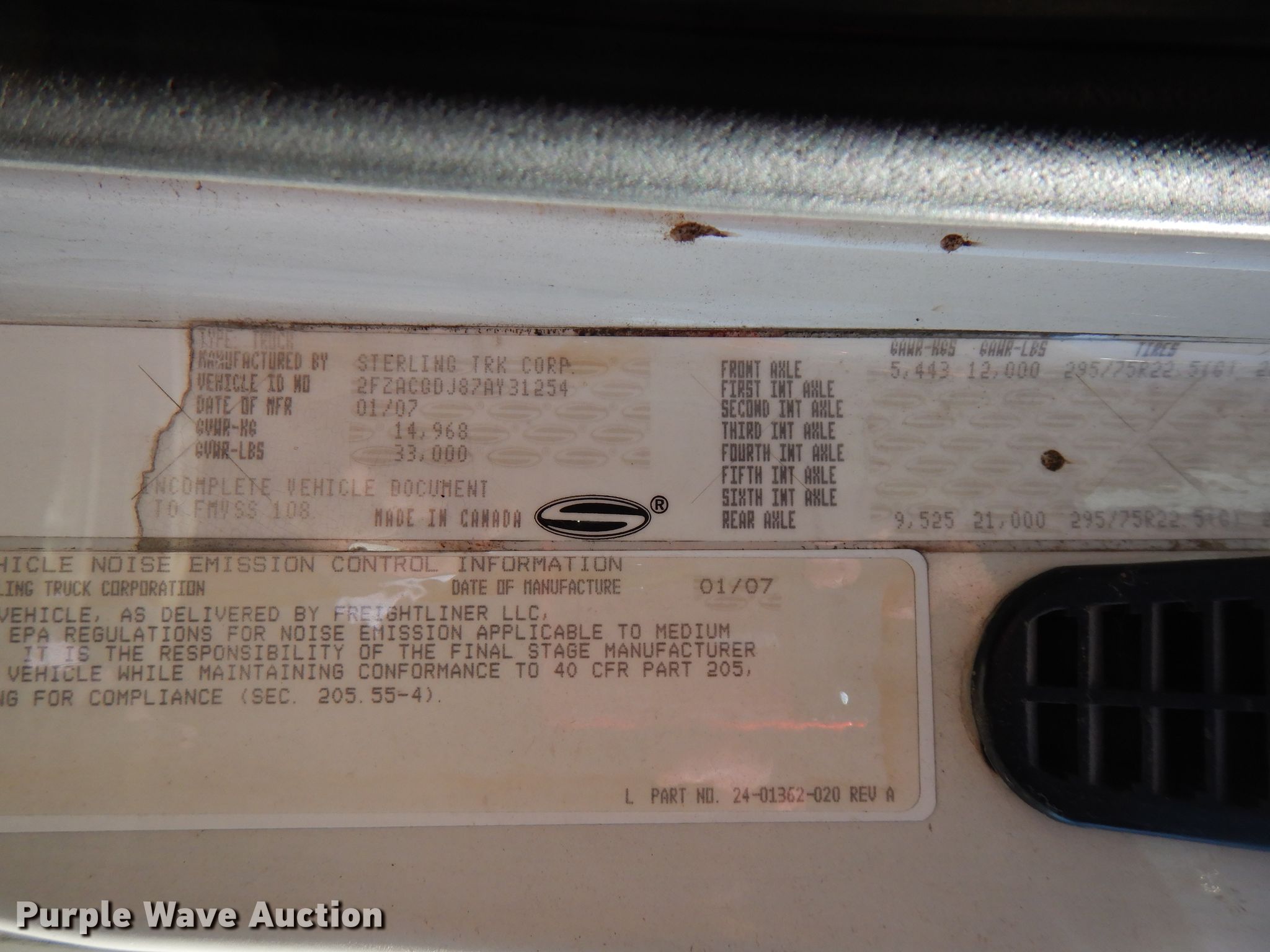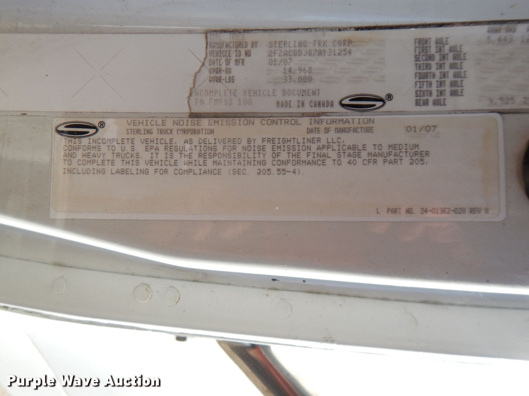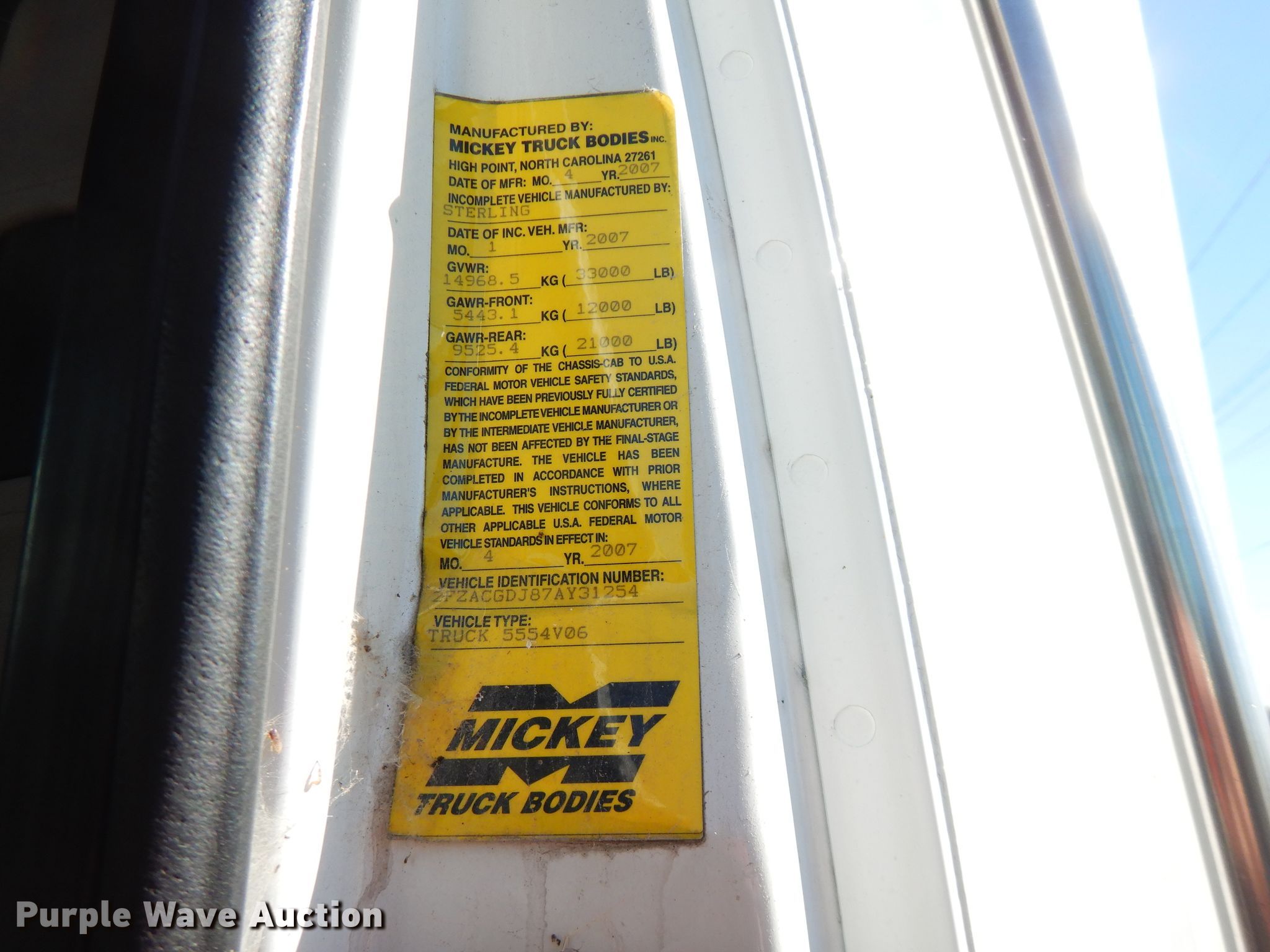 Purple Wave is selling a used Truck Chassis in Oklahoma. This item is a 2007 Sterling Acterra truck cab and chassis with the following: Unknown miles on odometer, Unit #: 02