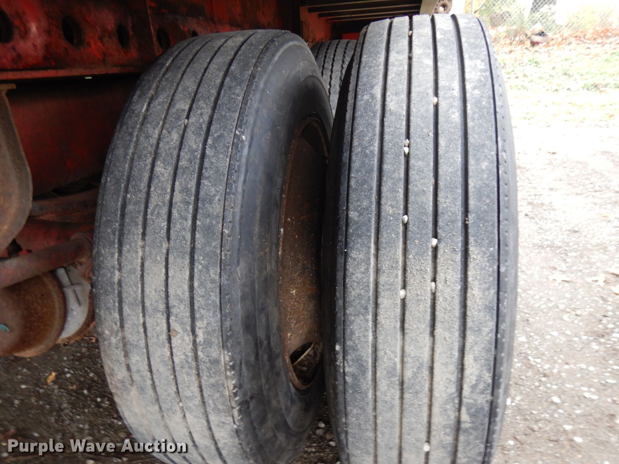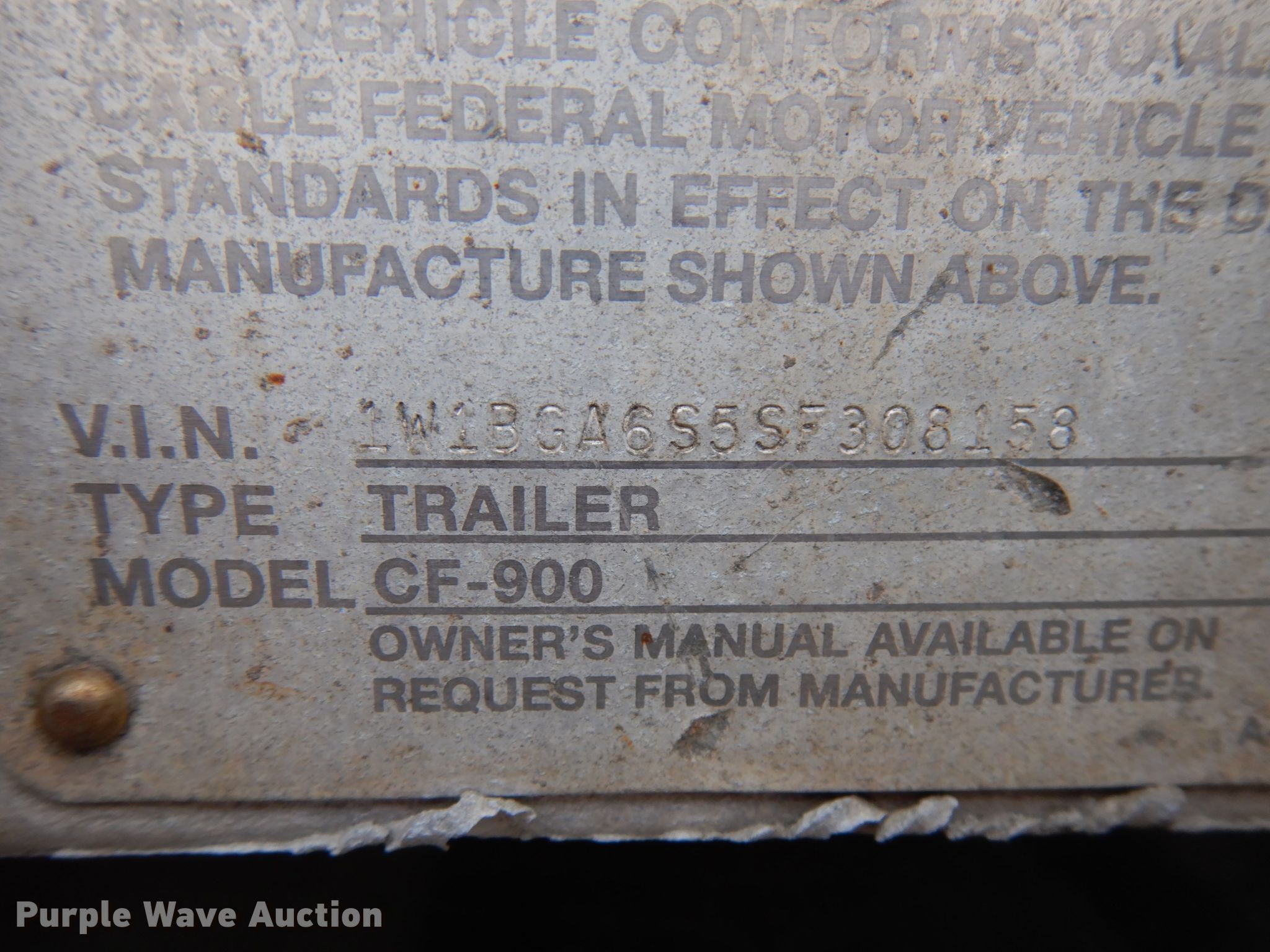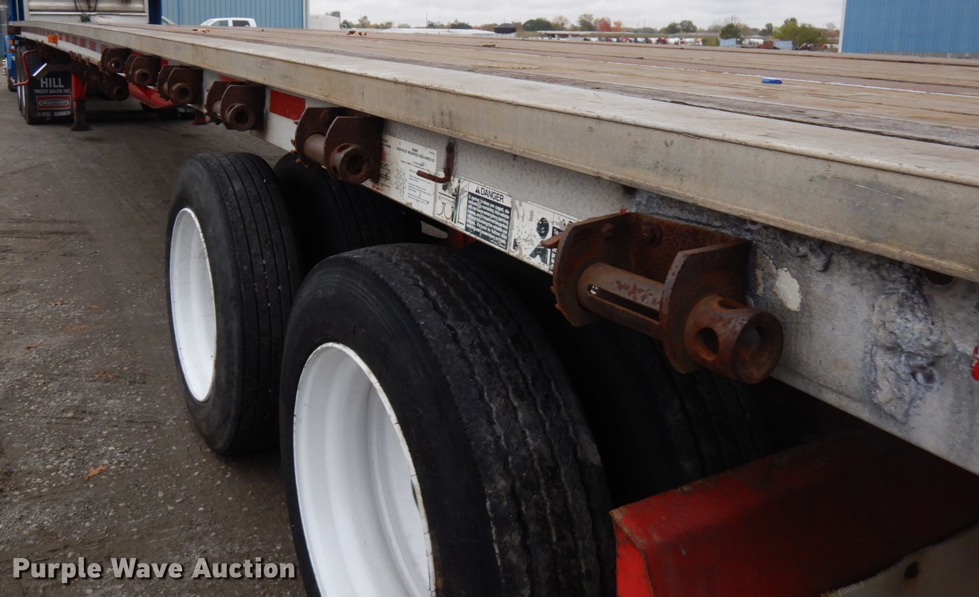 Purple Wave is selling a used Flat or Drop Deck Trailer in Indiana. This item is a 1995 Wilson CF-900 flatbed trailer with the following: 48'L x 102"W, Aluminum deck, Dual leg landing gear, Spring suspension, Air brakes, Sliding tandem axle, Steel wheels, 255/70R22.5 tires, GVWR 89,250 lbs, GAWR 19,040 lbs