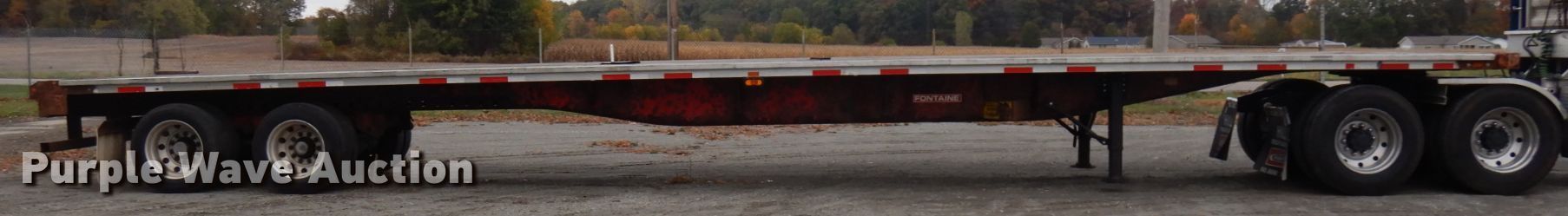 Purple Wave is selling a used Flat or Drop Deck Trailer in Indiana. This item is a 2006 Fontaine flatbed trailer with the following: 48'L x 102"W, Aluminum deck, Dual leg landing gear, Spring suspension, Air brakes, Tandem axle, 255/70R22.5 tires