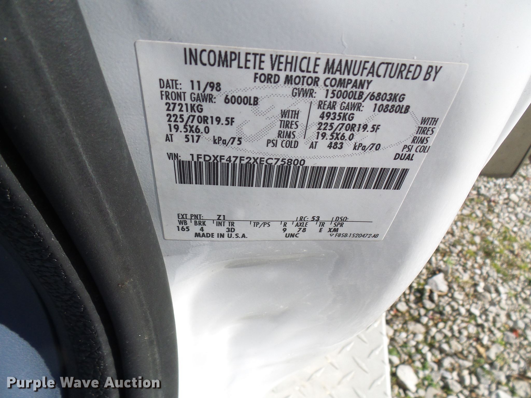 1999 Ford F450 Super Duty command center truck. 18,355 miles on odometer. Engine Displacement: 7.3L, Cylinders: 8, Fuel type: Diesel. Transmission Automatic, Four wheel drive. Chassis Axles: Single, Suspension: Spring, Brakes: Hydraulic, GVWR: 15,000 lbs. Interior AC, Heat, Power windows, Power locks. Operational Box bed Length: 12.6', Width: 102", Height: 84", Floor: Aluminum, Generator General GP3300, Power inverter. Tires Size: 225/70R19.5. Missouri title. Seller is a government entity who will be assigning and distributing the title. Please contact the seller for distribution questions. 1FDXF47F2XEC75800. Missouri State Highway Patrol. 2920 N Shamrock Rd. Jefferson City, MO 65101