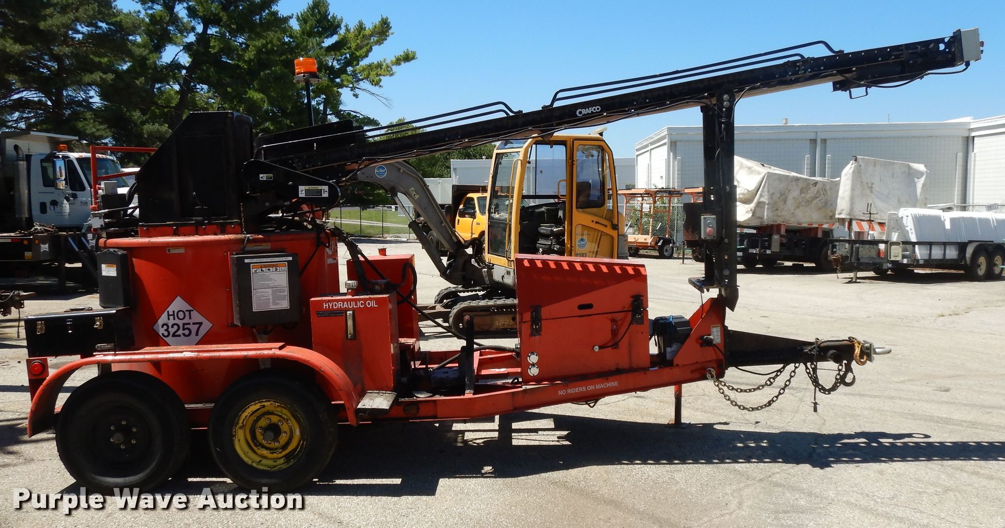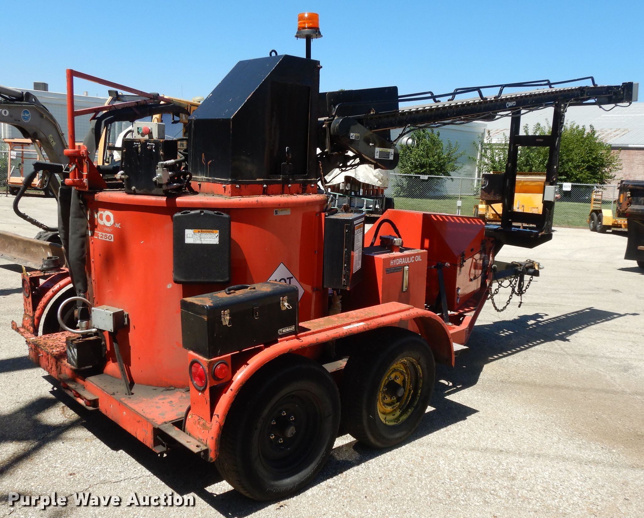Purple Wave is selling a used Pot Hole Patcher in Kansas. This item is a 2005 Crafco SS250 melter applicator with the following: Isuzu 3BQ-CZP01 1.16L three cylinder diesel engine, Serial 006461, Approximately 160" conveyor, Wand, Tandem axle, 225/75R15 tires, Material in pot