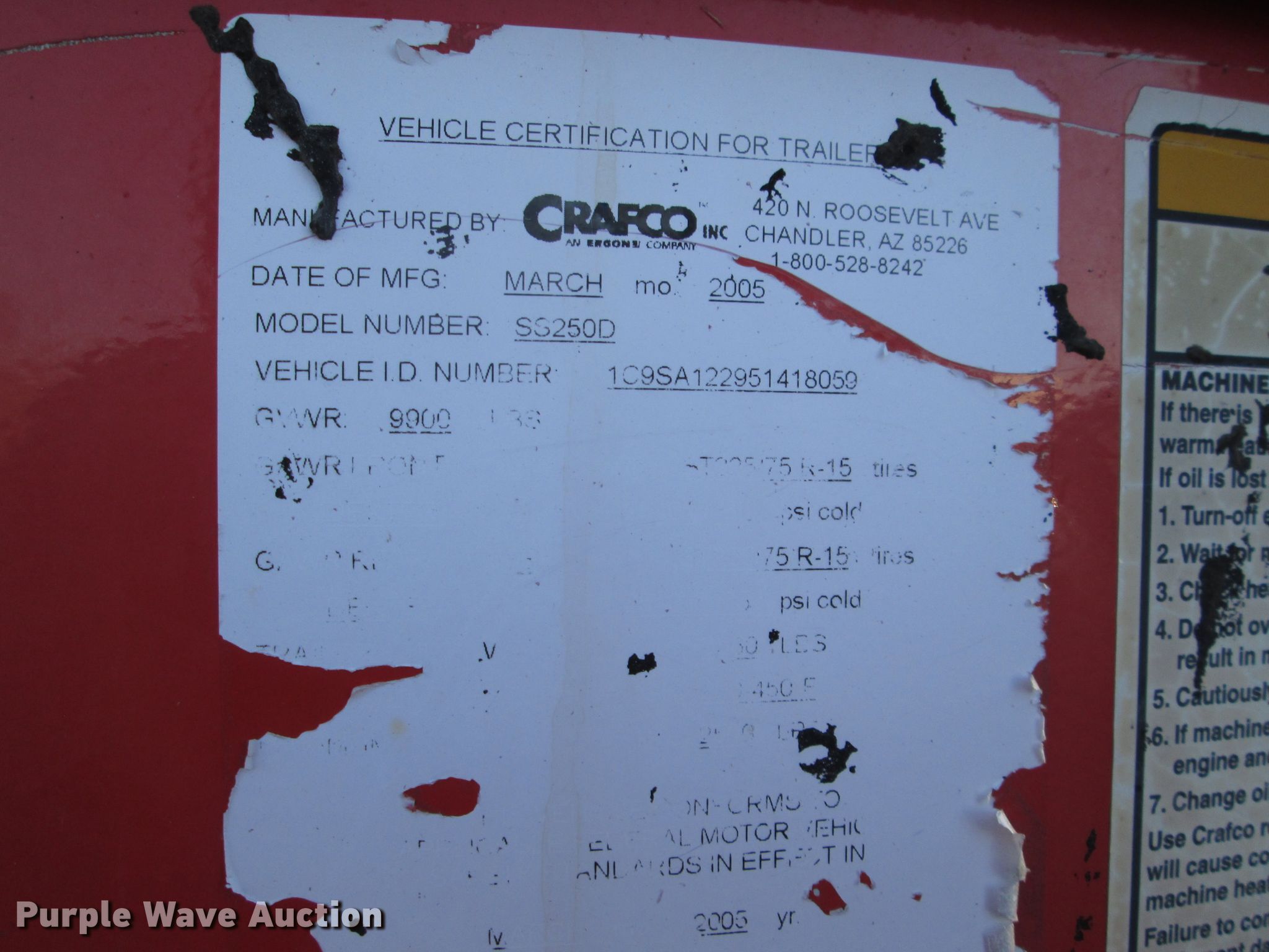 This 2005 Crafco SS250 melter applicator will sell to the highest bidder regardless of price.