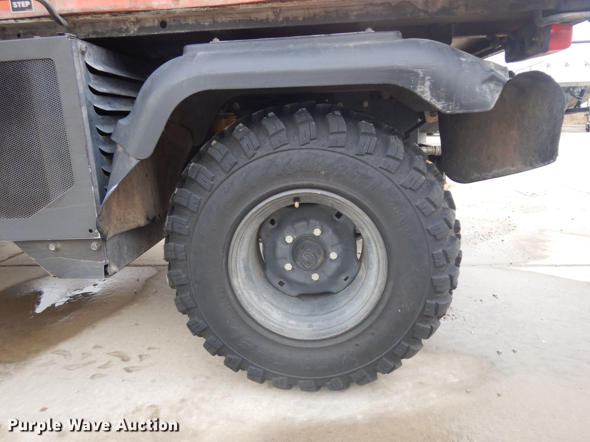 Kubota RTV1100 utility vehicle. 881 hours on meter. Engine Kubota D1105, Cylinders: 3, Fuel type: Diesel, Electric start. Transmission Hydrostatic. Chassis Four wheel drive. Operators station Enclosed cab, AC, Heat, Passengers: 2. Operational Grill guard, Receiver hitch, Dump bed 46"L x 51"W, Dump bed type: Electric/ Hydraulic. Tires Size: 25x10.00R12. Kansas title. A5KC1HDALCG036572. Kansas Department of Wildlife, Parks & Tourism. 1782 10th Rd. Clay Center, KS 67432