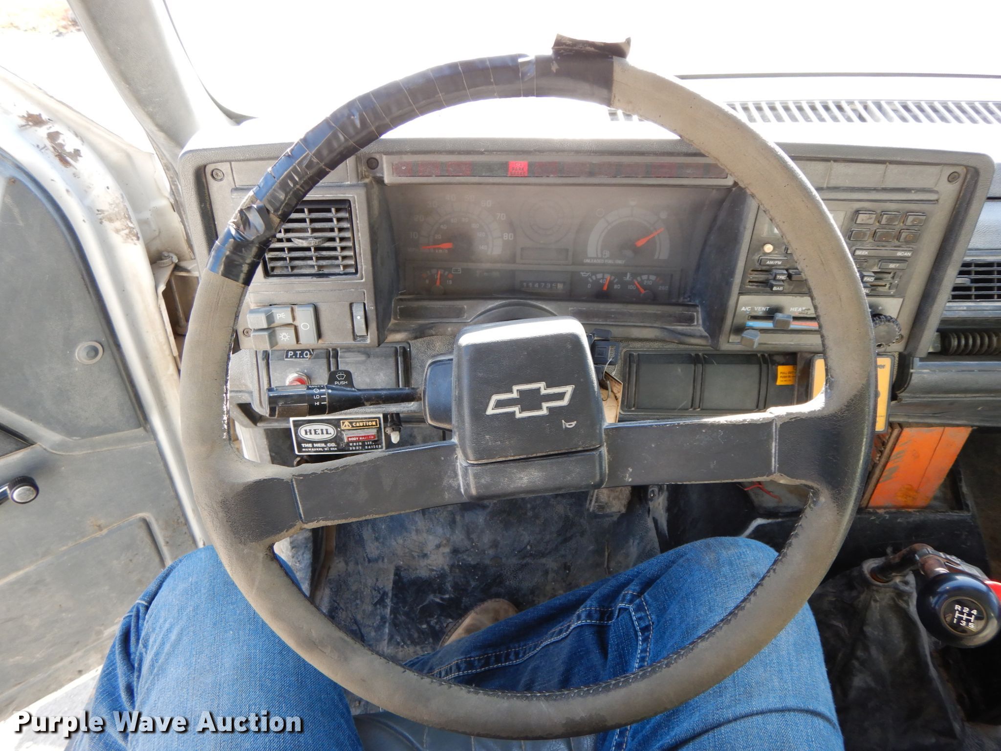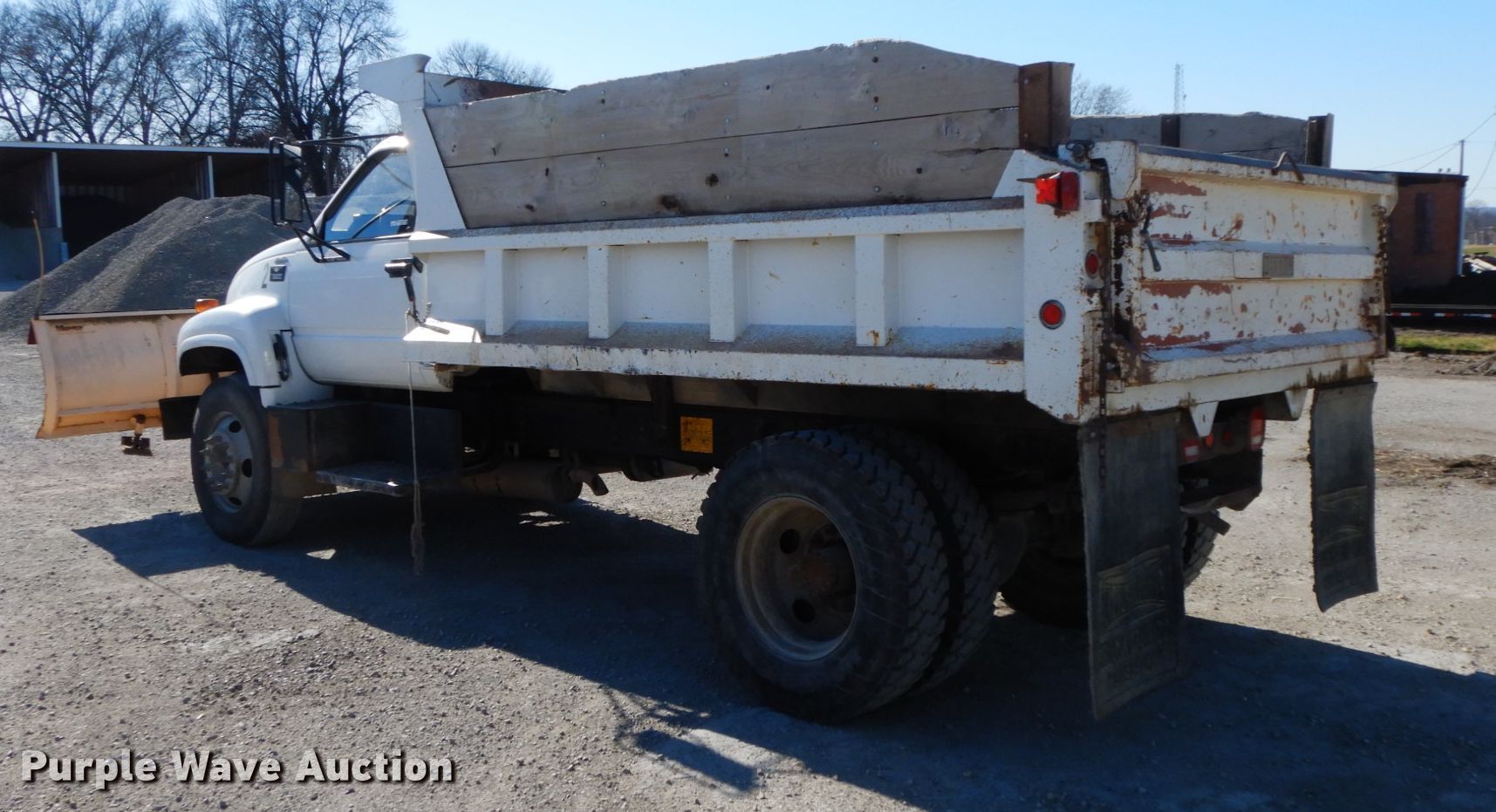 1998 Chevrolet C6500 dump truck. 114,732 miles on odometer, Unit #: 2. Engine Displacement: 6.0L, Cylinders: 8, Fuel type: Gas. Transmission Manual, Speed: 5. Chassis Axles: Single, Suspension: Spring, Brakes: Hydraulic, PTO, GVWR: 25,950 lbs FAWR: 8,100 lbs, RAWR: 17,850 lbs, Wheelbase: 175". Interior AC, Heat. Operational Dump bed Heil, 12' L x 96" W, Side height: 24", Side board height: 23", Bed type: Steel, Ram: Single , End gate: Manual, Plow Meyer HM-10, Width: 120". Tires Front: 10R22.5, Rear: 11R22.5. Missouri title. 1GBJ7H1P4WJ104296. Livingston County. 630 Harvester Rd. Chillicothe, MO 64601