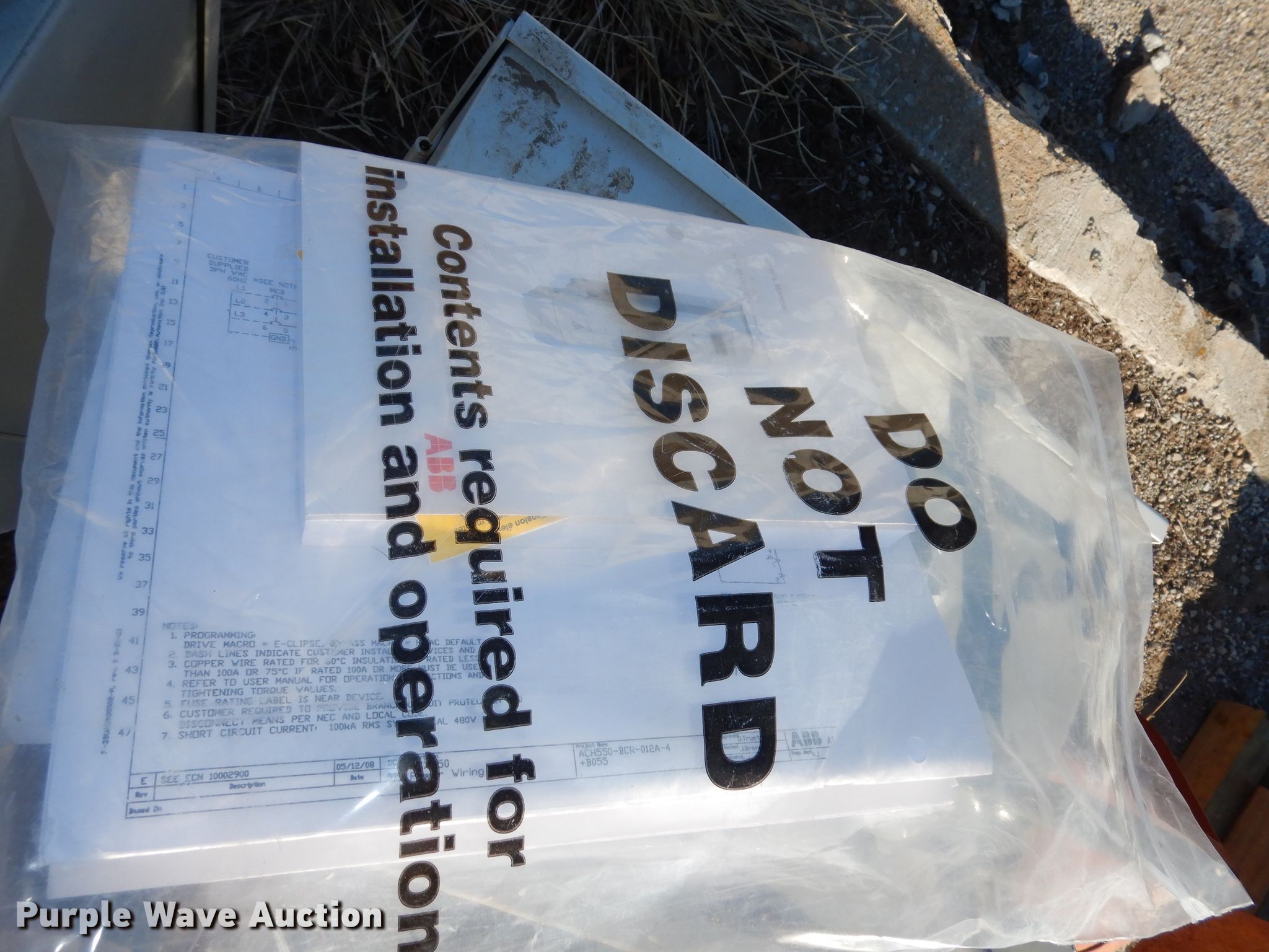 Purple Wave is selling a used Tools in Kansas. This item is a (2) ABB air blower aeration boxes with the following: Three phase, 100 kVA, Owner manuals