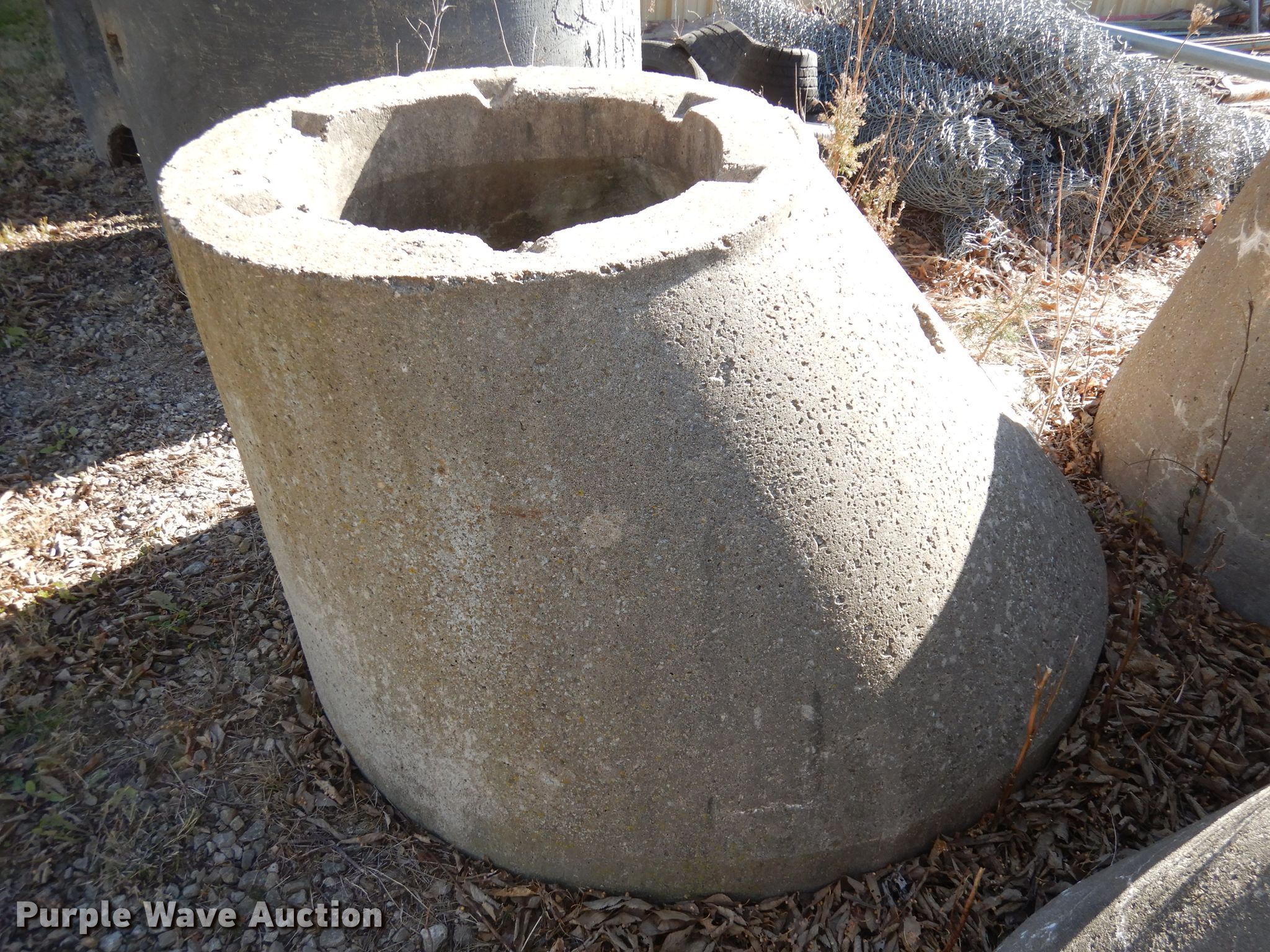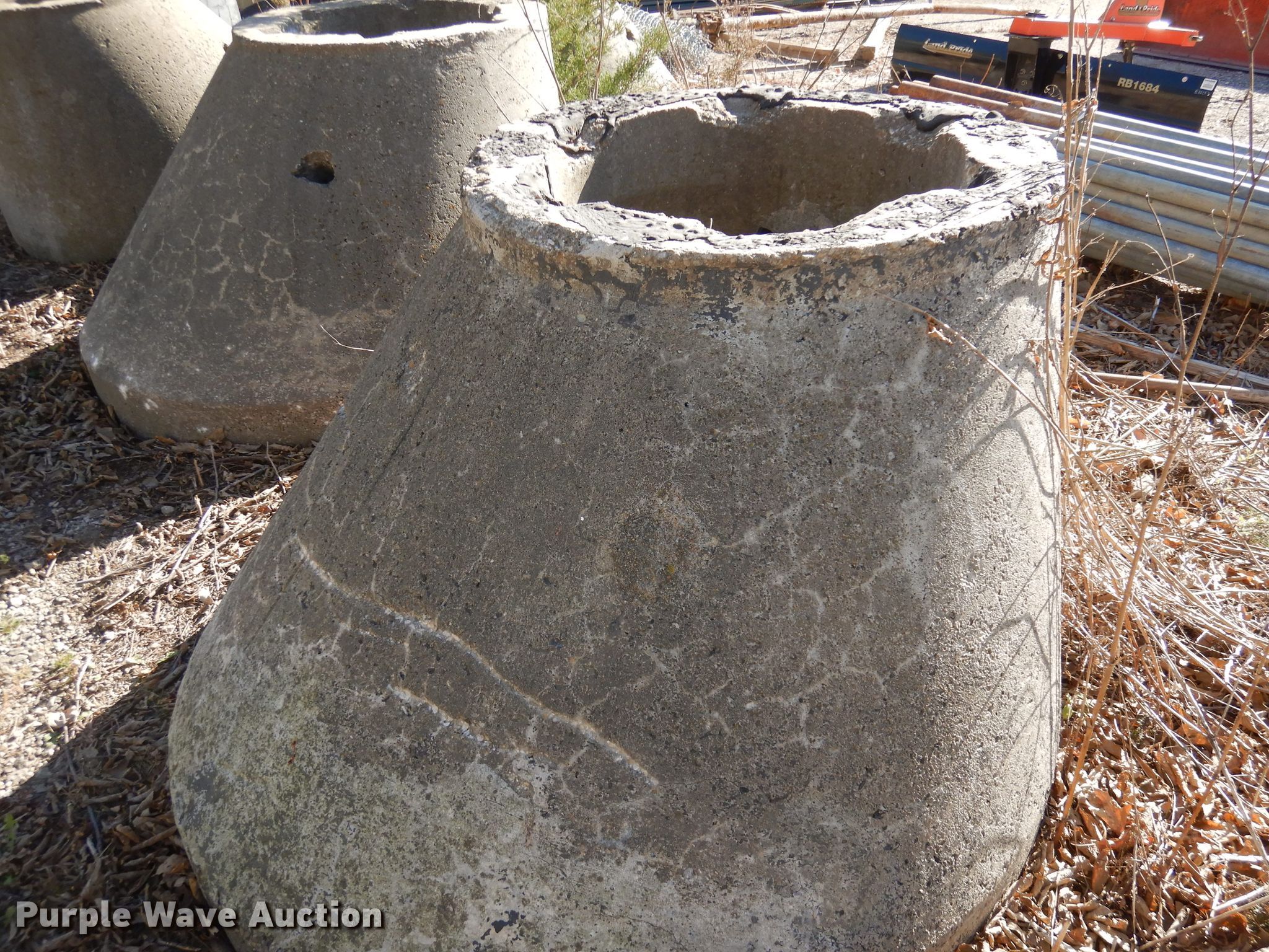Purple Wave is selling a used Building Materials in Kansas. This item is a Concrete manholes with the following: (8) tops, 32" top, 58" bottom, (2) bases, 38"H x 58" diameter