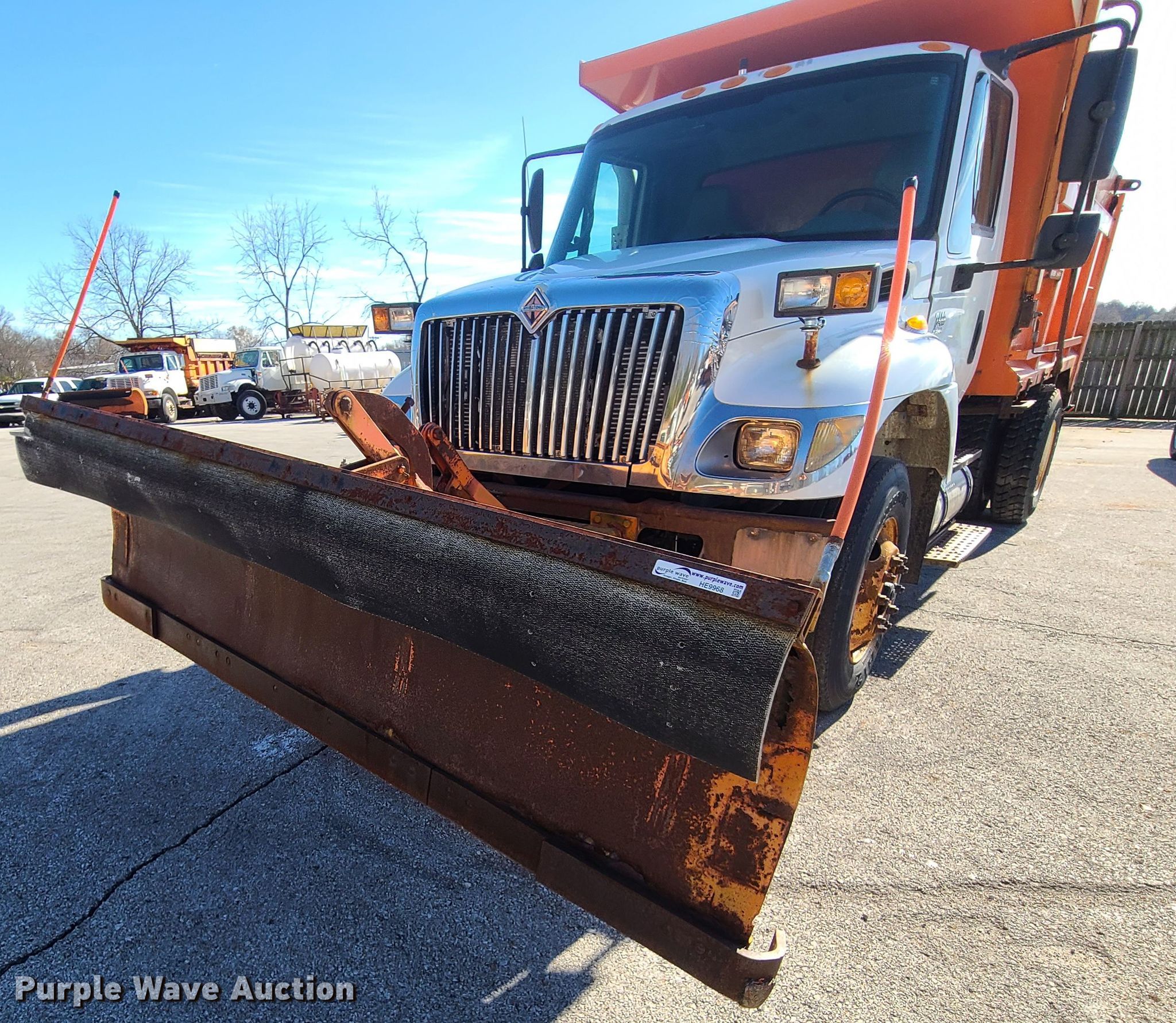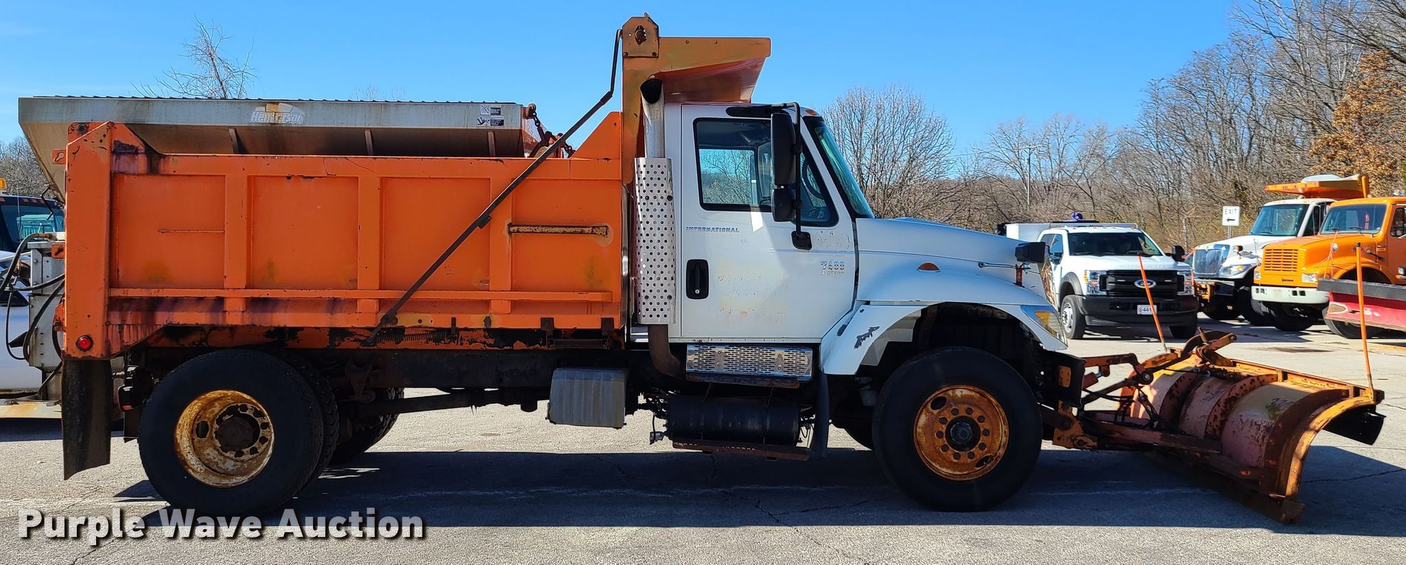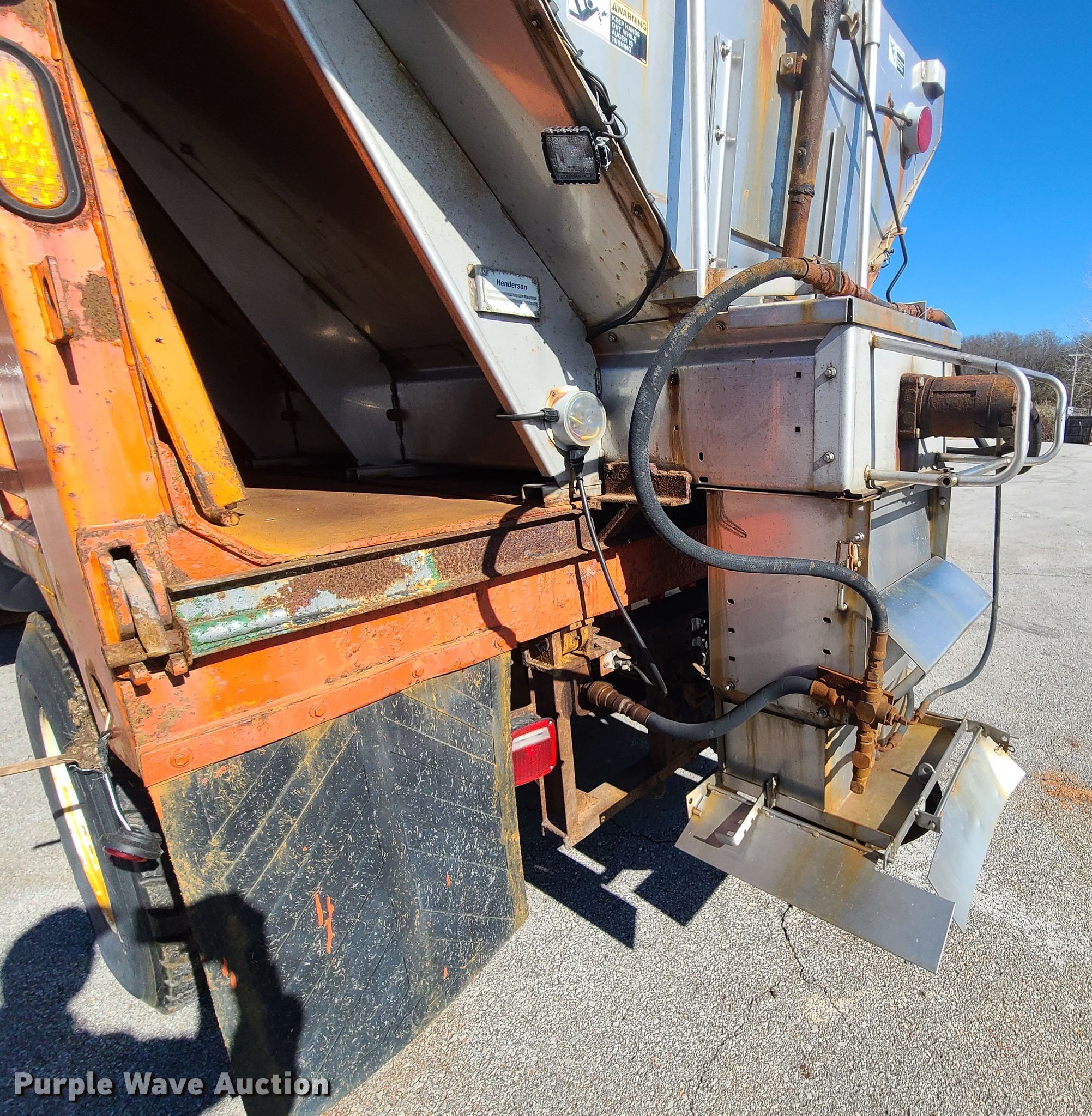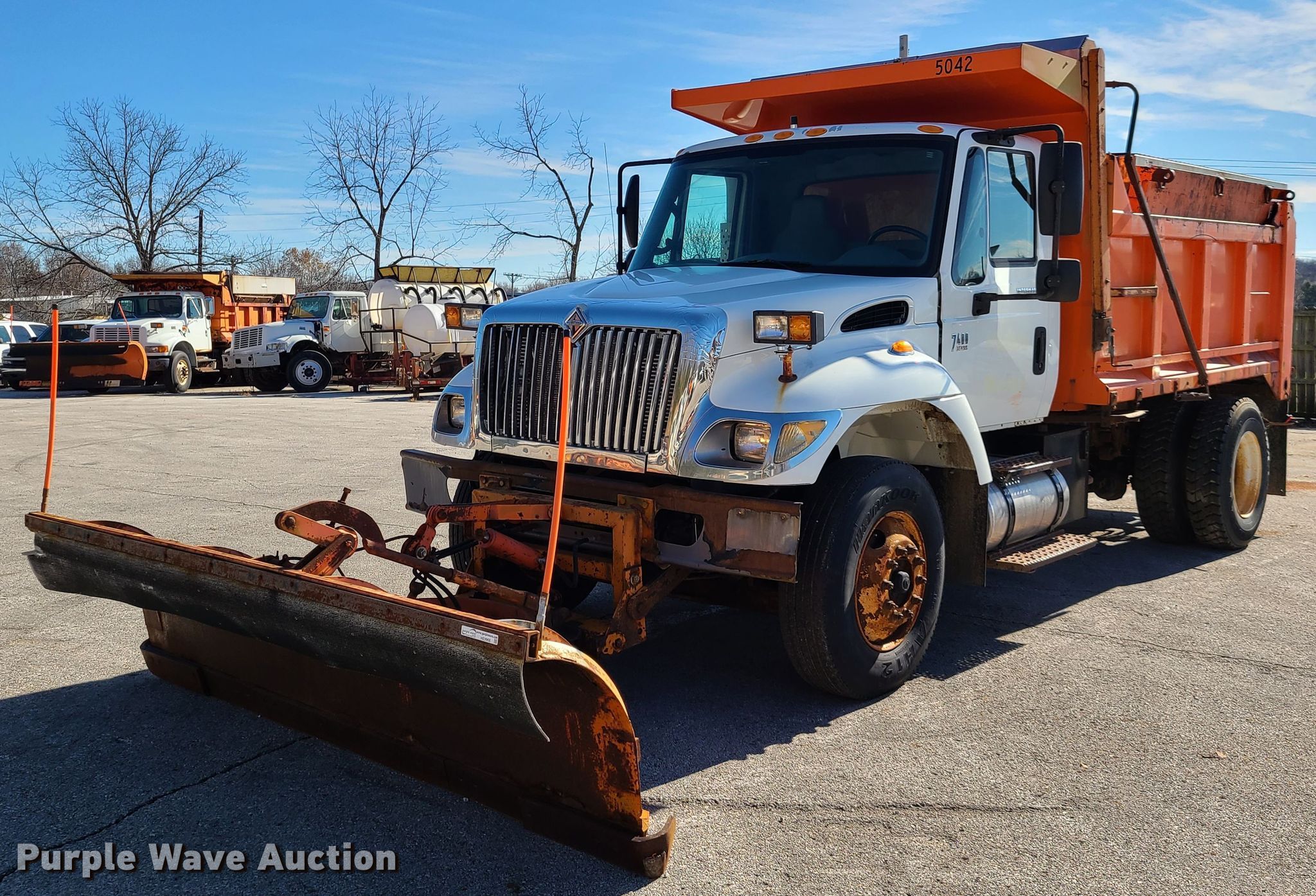2003 International 7400 dump truck. 104,310 miles on odometer, Unit #: 3337. Engine International DT466, Displacement: 7.6L, Cylinders: 6, Fuel type: Diesel. Transmission Automatic. Chassis Axles: Single, Suspension: Spring, Brakes: Air, PTO. Interior Heat. Operational Dump bed Bed type: Steel, Ram: Single , End gate: Air operated, Spreader Henderson, Plow Width: 120". Tires Size: 11R22.5. Missouri title. 1HTWDAAR43J057210. City of Independence. 111 E Maple Ave. Independence, MO 64050