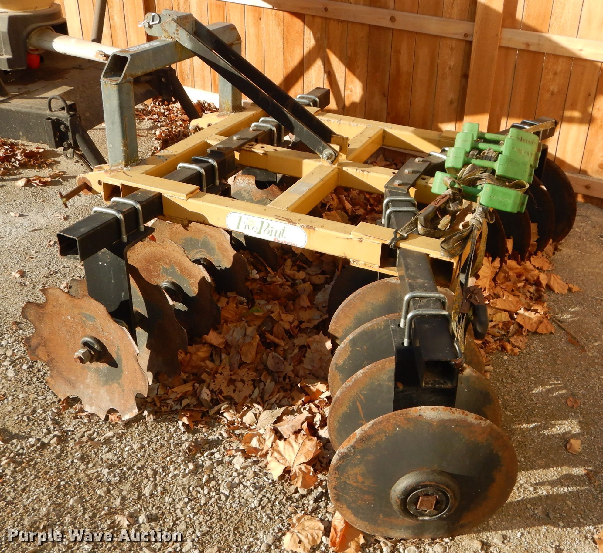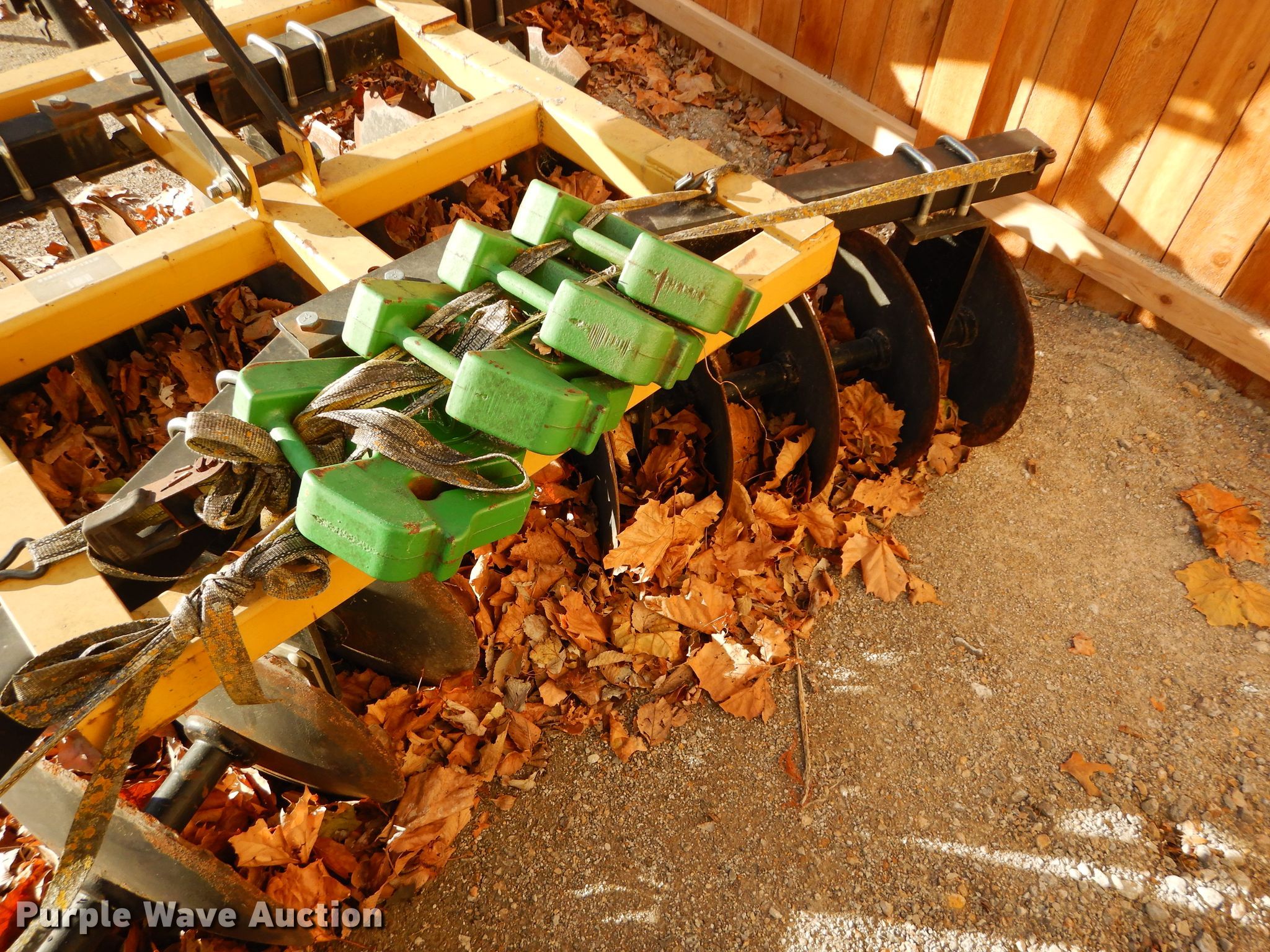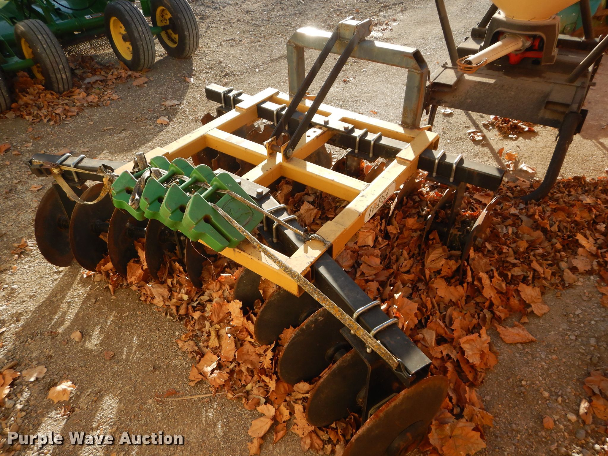 Purple Wave is selling a used Disk in Kansas. This item is a King Kutter disk with the following: 6'8"W, 18" diameter disks, 8" spacing, Manual leveler, Three point hitch, Serial 1001310200