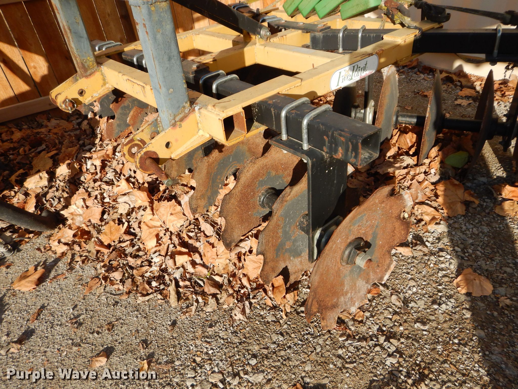 King Kutter disk. 6'8"W, 18" diameter disks, 8" spacing, Manual leveler, Three point hitch, Serial 1001310200. 6161 Woodland Dr. Shawnee, KS 66218