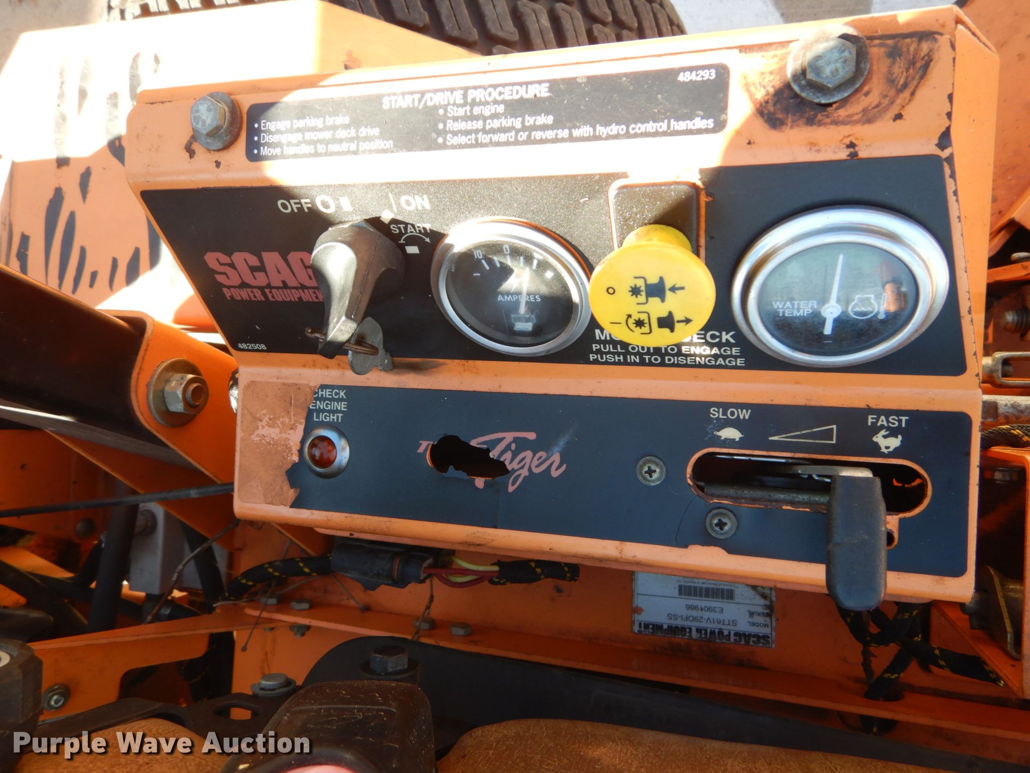 Purple Wave is selling a used Commercial Turf Mower in Missouri. This item is a Scag Turf Tiger ZTR lawn mower with the following: 2,146 hours on meter, 61" cut, Serial: E3901986