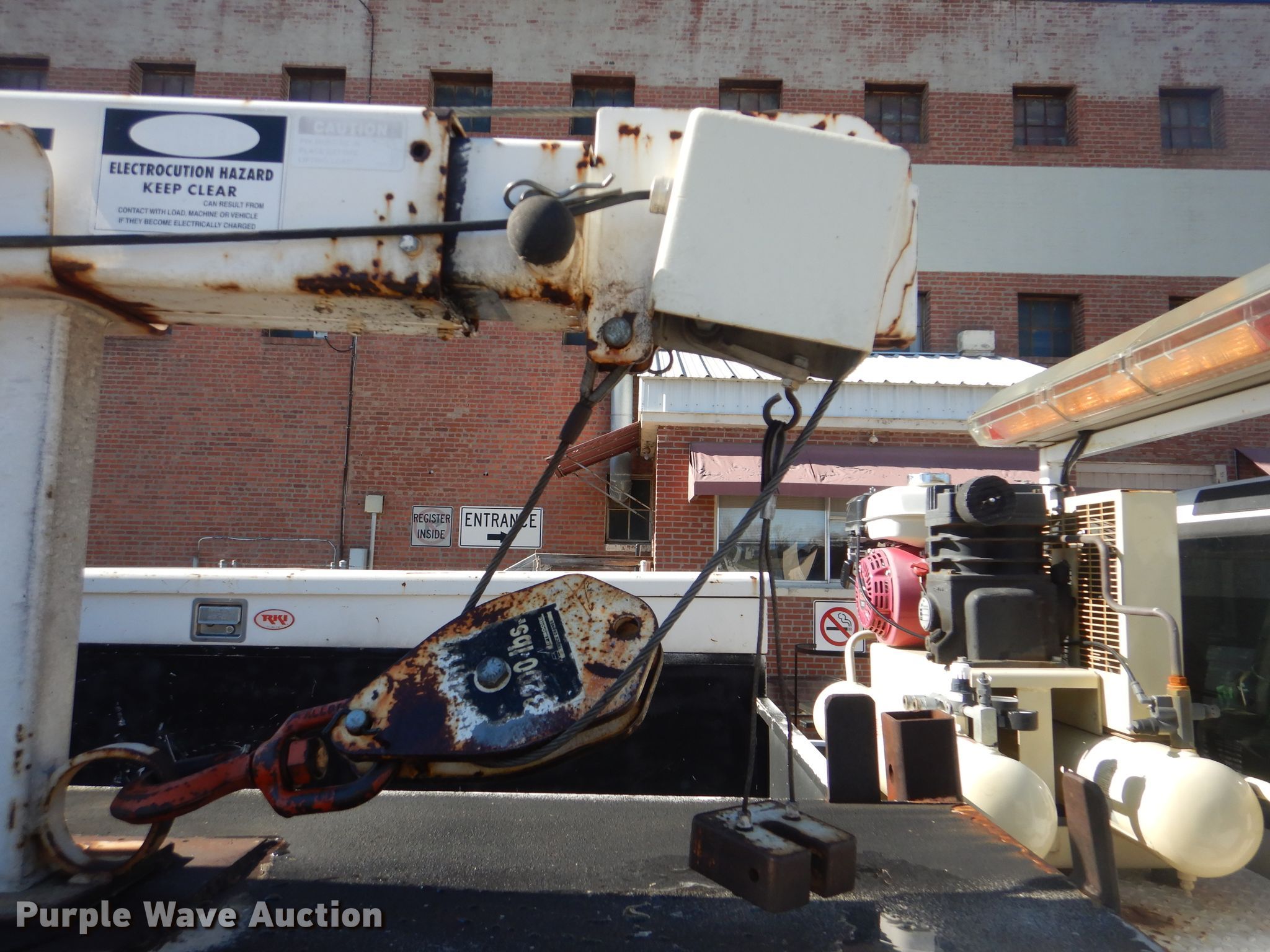 2003 Ford F450 Super Duty service truck. 141,530 miles on odometer, Unit #: 877. Engine Ford, Displacement: 6.0 liter, Cylinders: 8, Fuel type: Diesel. Transmission Automatic. Chassis Axles: Single, Suspension: Spring, Brakes: Hydraulic, GVWR: 60,000 lbs, Wheelbase: 165". Interior AC, Heat, Cruise control, Auxiliary controls, Brake controller. Operational Utility bed Service Bodies, Length: 11', Air compressor Ingersoll Rand SS-8, Honda GSX 160, Eagle Lift end gate lift Capacity: 1,000 lbs., Crane Liftmoore 3200, Boom length: 7', Maximum lift capacity: 3,200 lbs. Tires Size: 225.70R19.5. Notes Hail Damage, Two way radio not included, Unknown operating condition of crane. Oklahoma title. Seller is a government entity who will be assigning and distributing the title. Please contact the seller for distribution questions. 1FDXF46P53ED42510. City of Tulsa. 108 N Trenton Ave. Tulsa, OK 74120