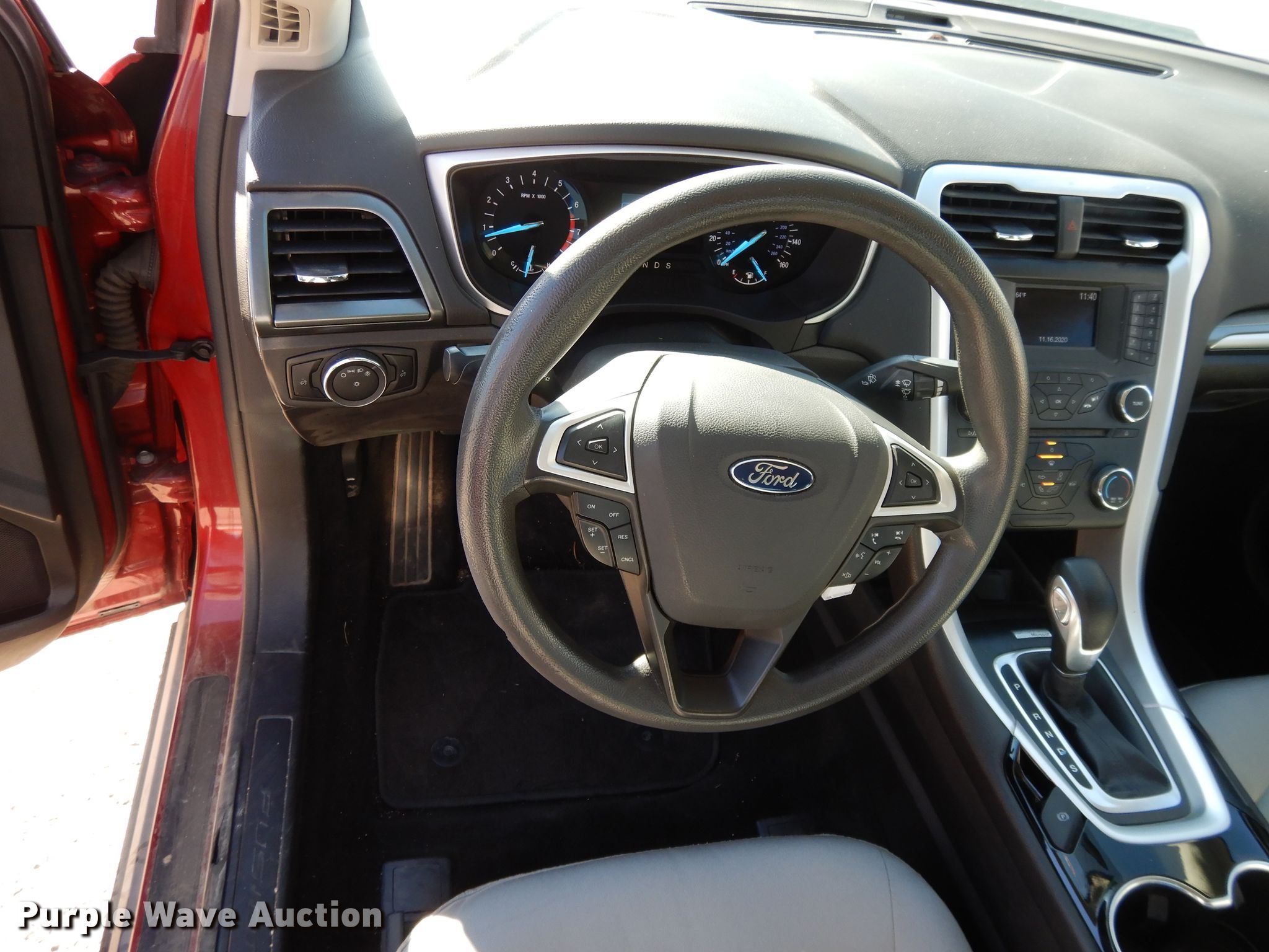 2014 Ford Fusion. 92,503 miles on odometer. Engine Displacement: 2.5L L4 DOHC 16V, Cylinders: 4, Fuel type: Gas. Transmission Automatic. Interior AC, Heat, Power windows, Power locks, Cruise control. Tires Size: 215/60R16. Kansas title. 3FA6P0G74ER336997. Kaw Valley Engineering, Inc.. 2319 N Jackson St. Junction City, KS 66441