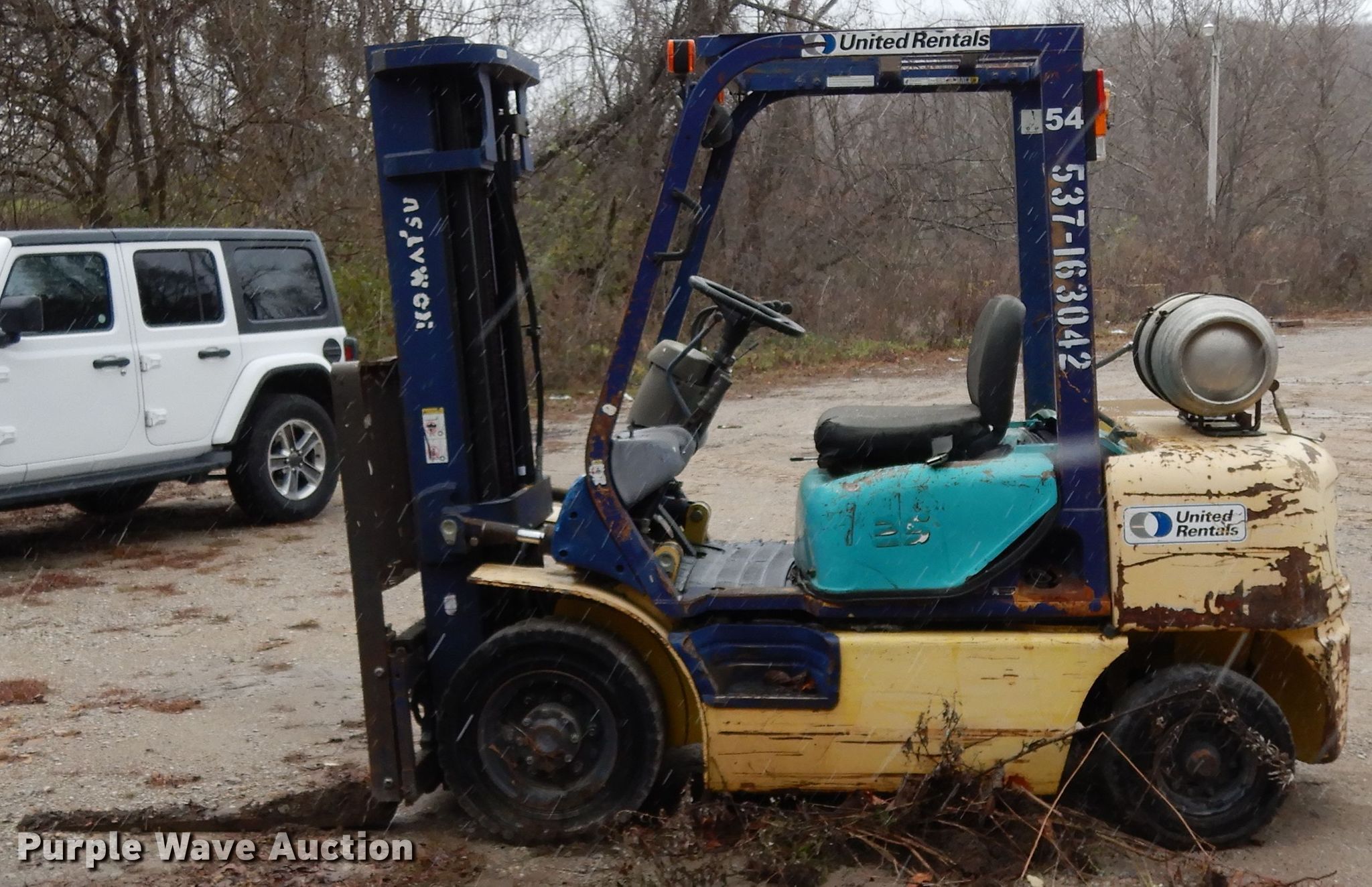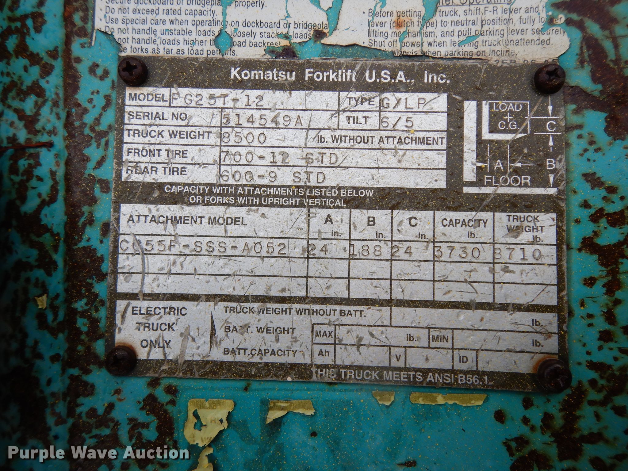 Purple Wave is selling a used Warehouse Forklift in Pennsylvania. This item is a Komatsu FG25T-12 forklift with the following: Serial: 514549A
