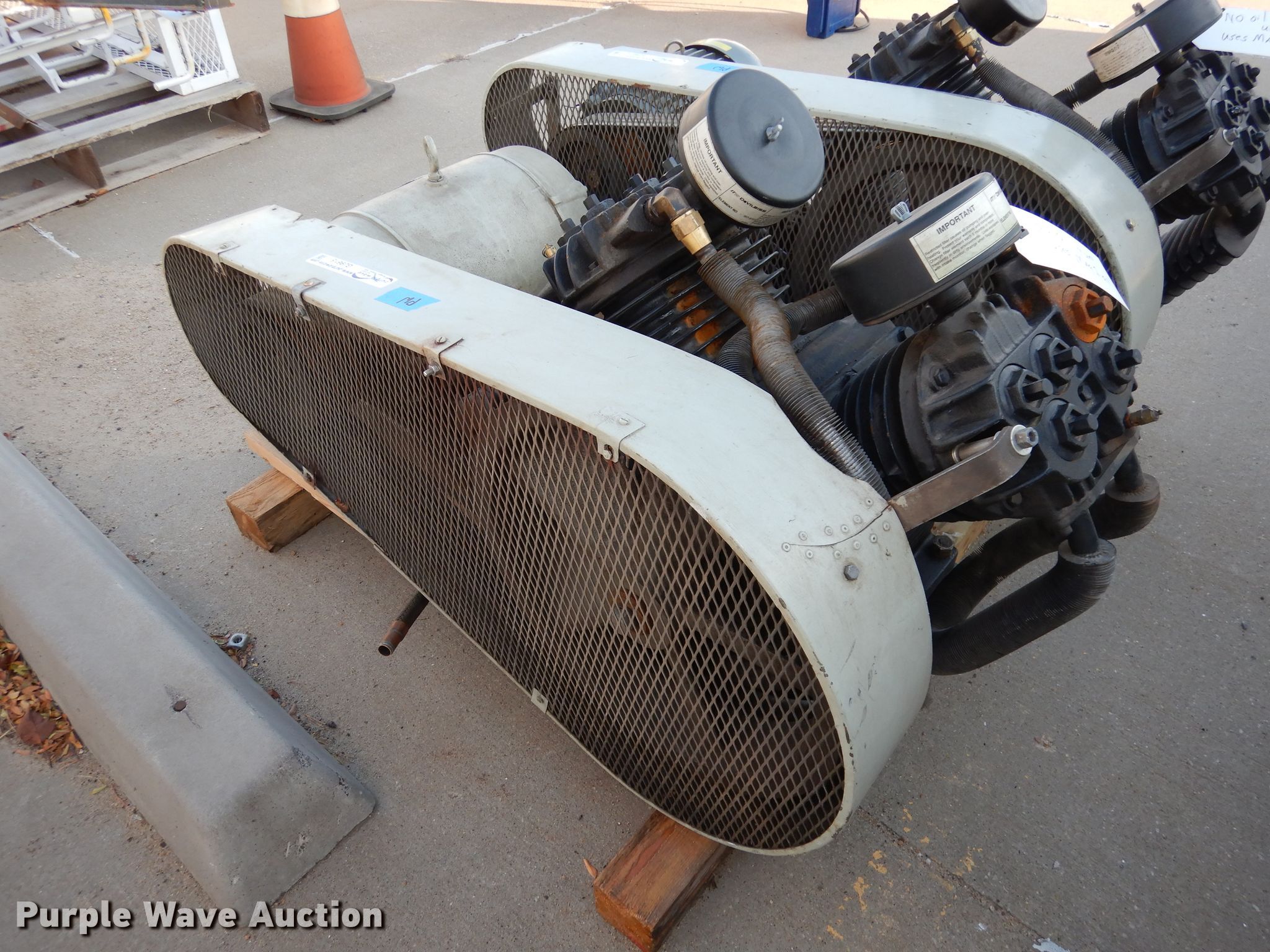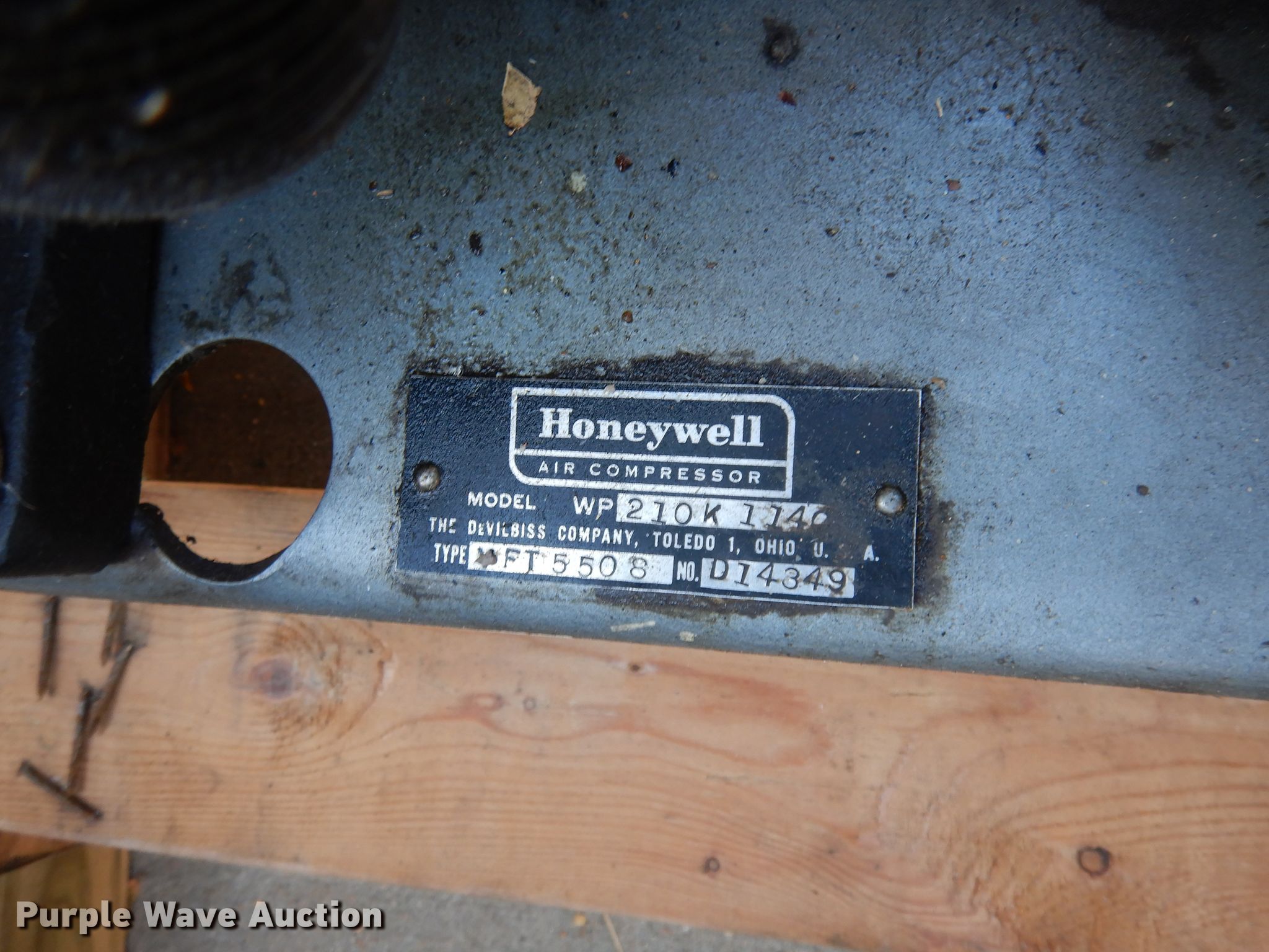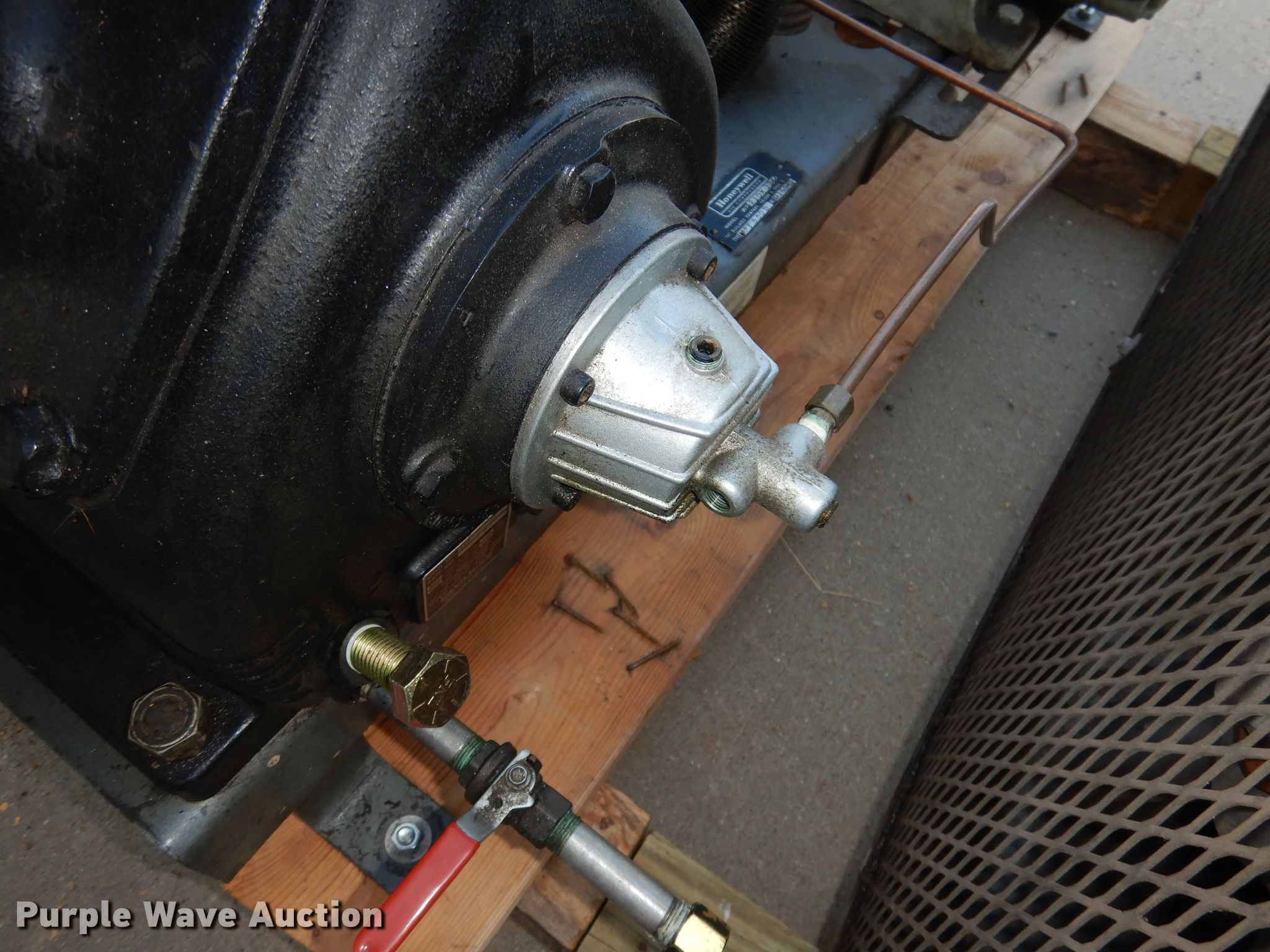 Purple Wave is selling a used Air Compressor in Kansas. This item is a Honeywell WP210K114 compressor with the following: Peerless electric motor, 10 HP, Three phase, Devilbiss 447 compressor, No oil in unit, Serial 1599