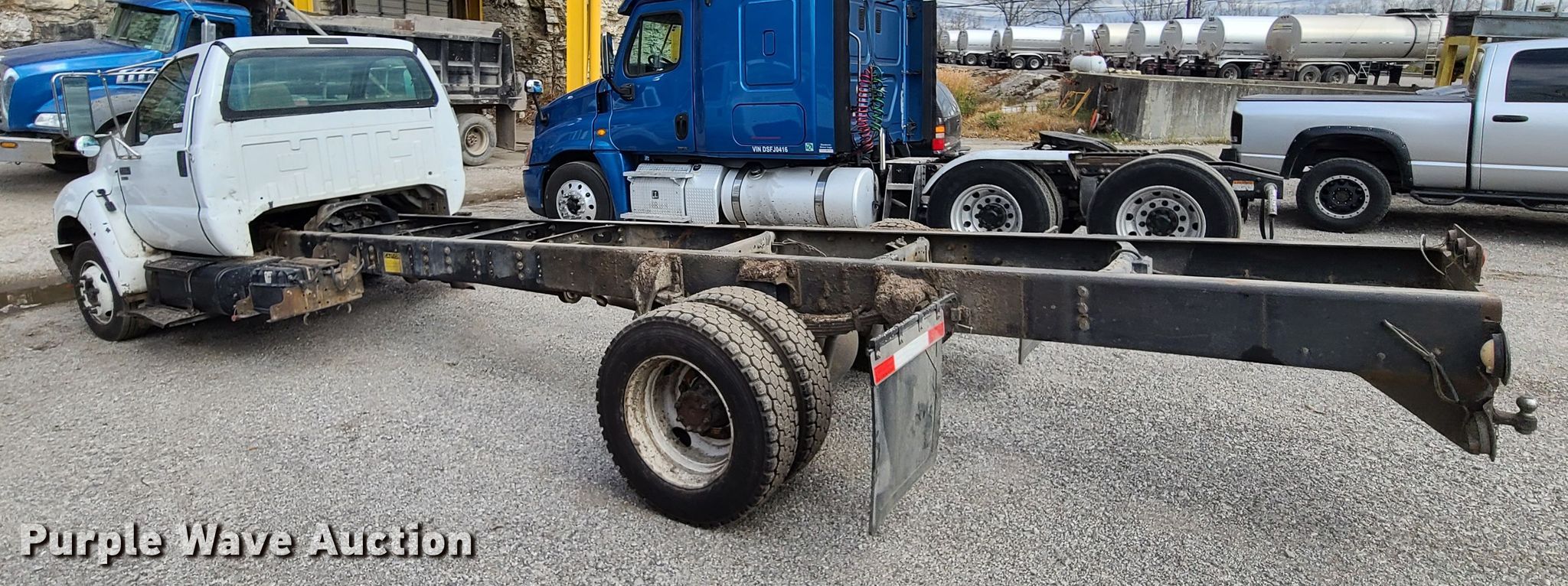 2008 Ford F650 Super Duty truck cab and chassis. 129,847 miles on odometer. Engine Cummins ISB, Displacement: 6.7L, Cylinders: 6, Fuel type: Diesel. Transmission Automatic. Chassis Axles: Single, Suspension: Spring, Brakes: Hydraulic, Truck chassis: 20' 6". Interior AC, Heat, Cruise control. Tires Size: 245/70R19.5. Missouri title. 3FRNF65B78V646157. Vance Bros Inc.. 5201 Brighton Ave. Kansas City, MO 64130